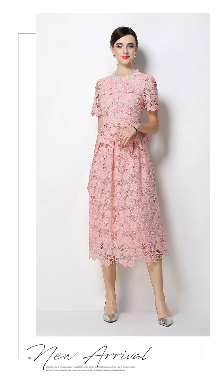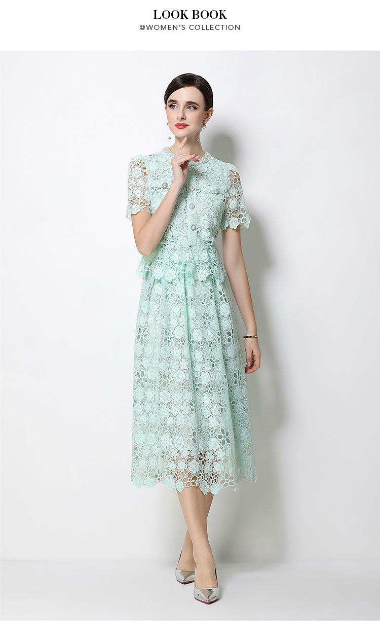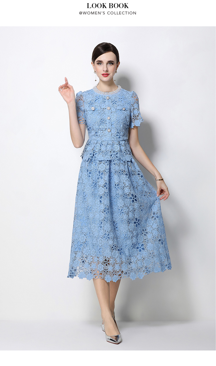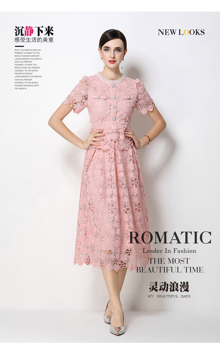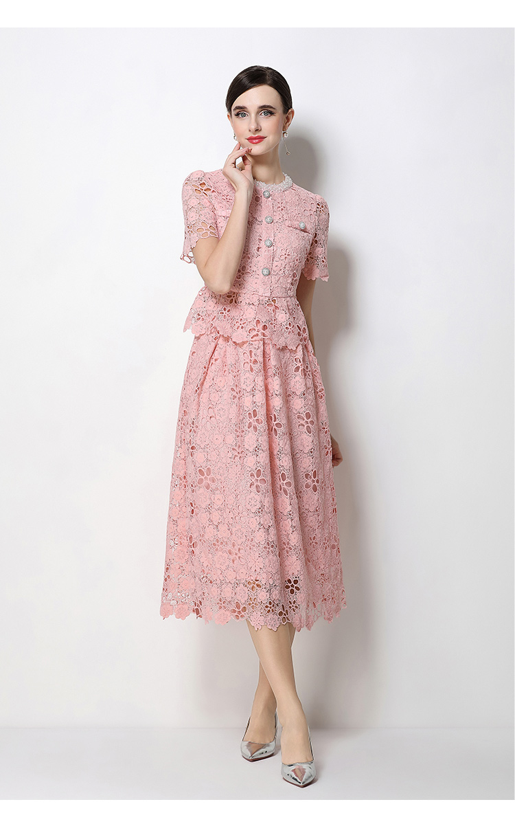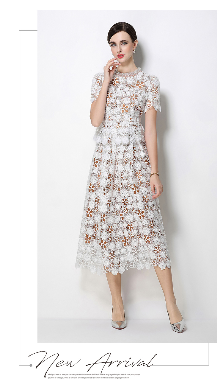 RY1770# 实拍原创轻奢高级感时尚显瘦镂空水溶蕾丝定位套装裙