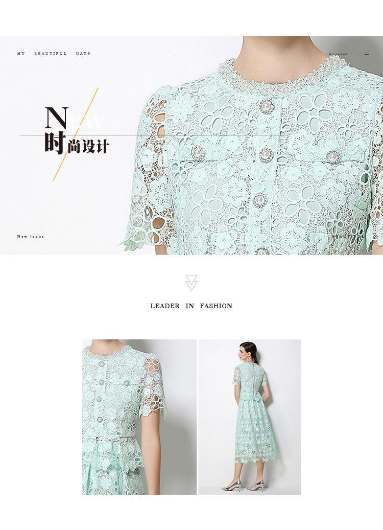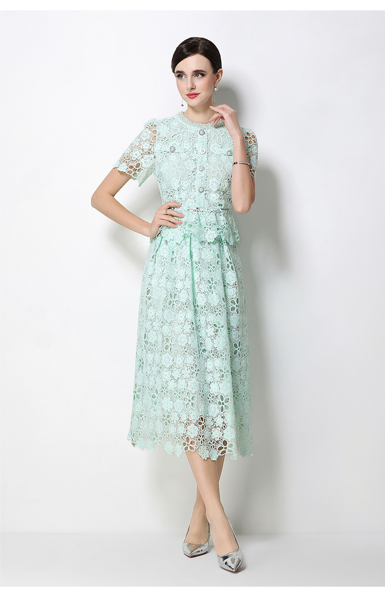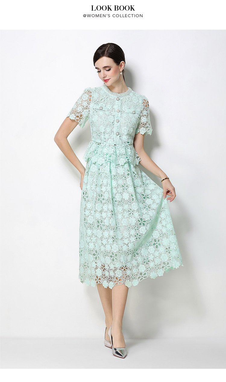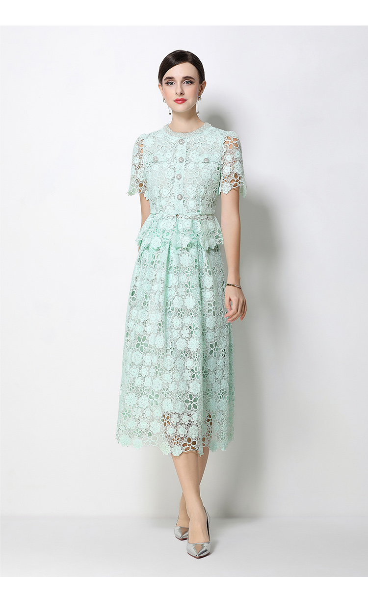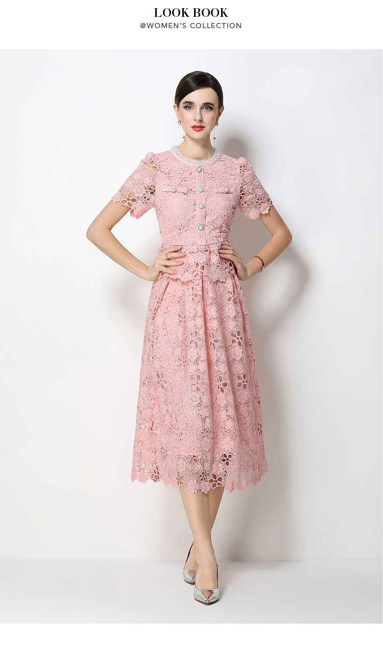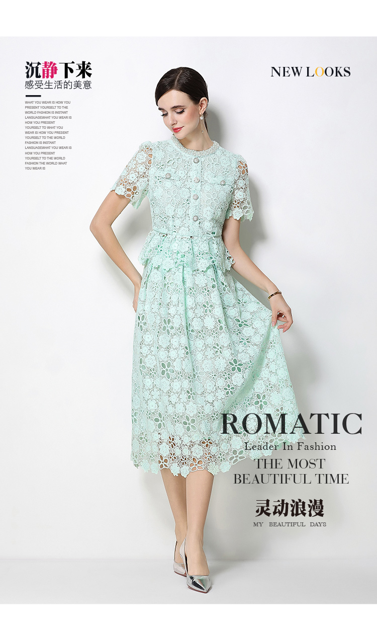 RY1770# 实拍原创轻奢高级感时尚显瘦镂空水溶蕾丝定位套装裙