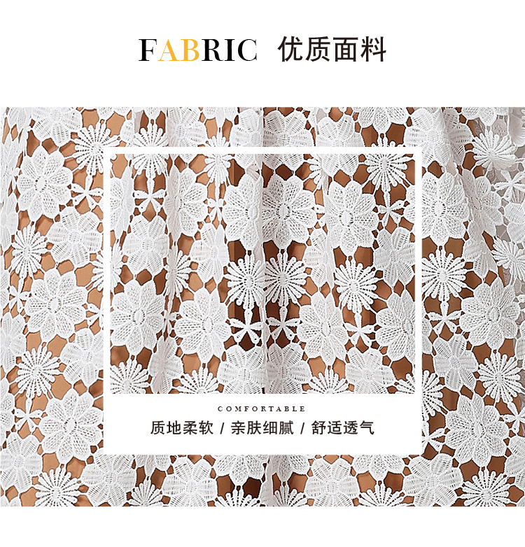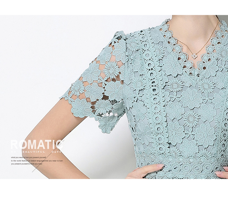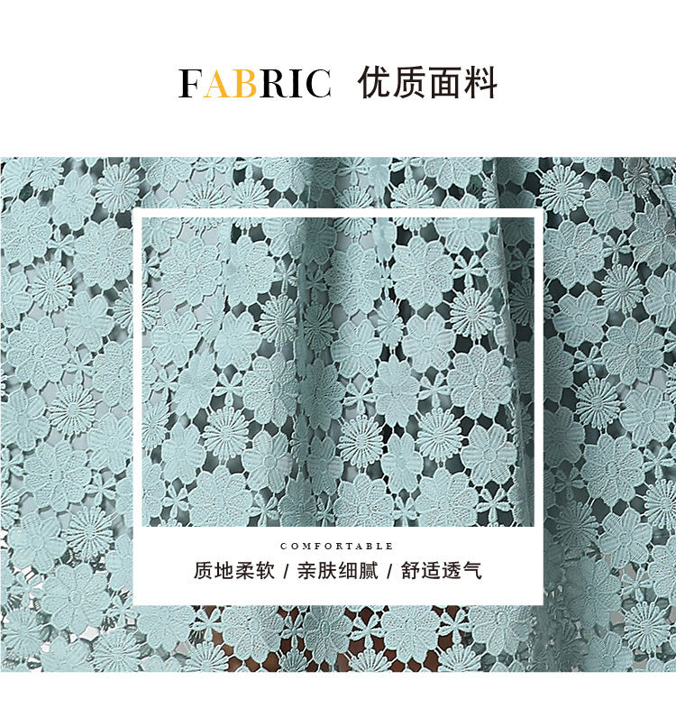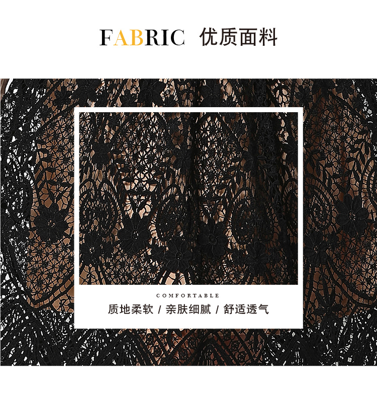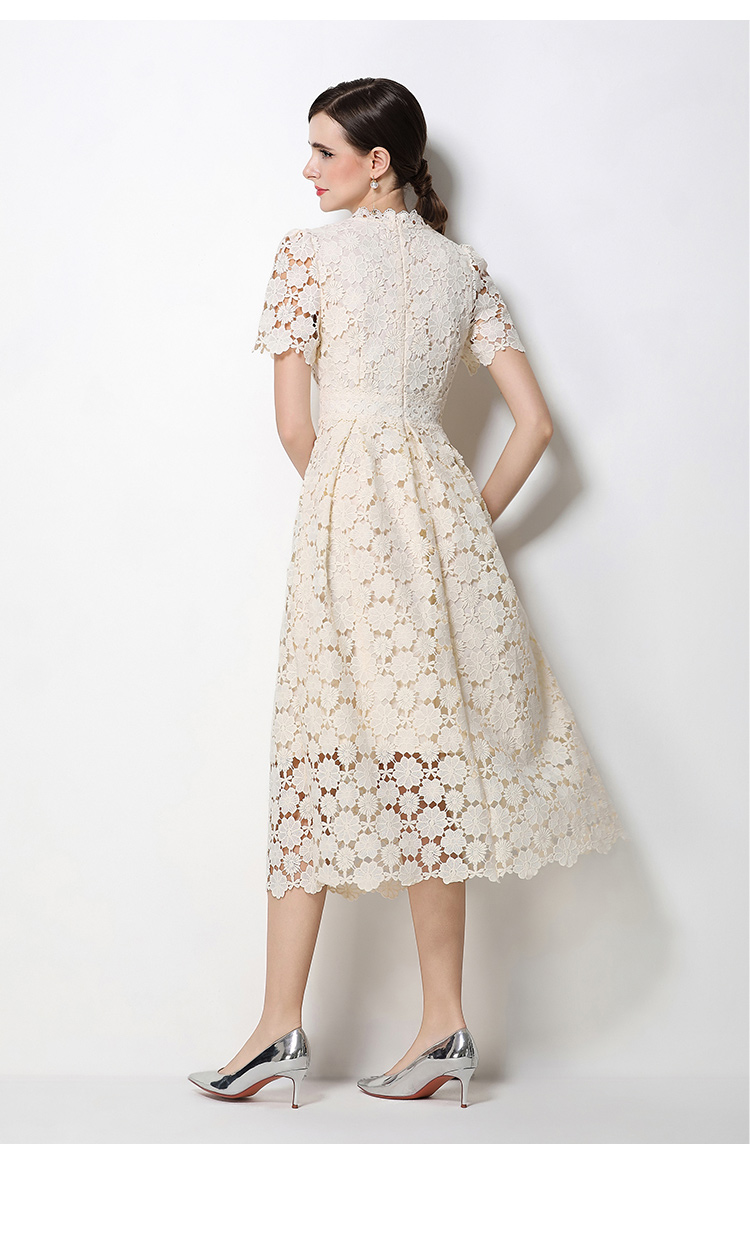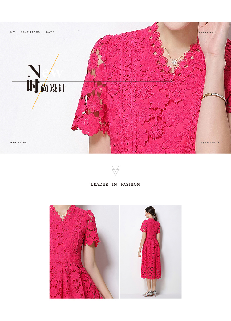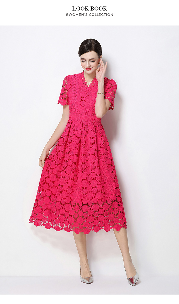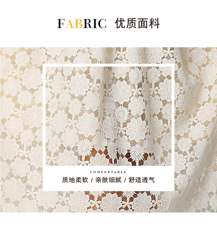 RY1772# 实拍原创V领时尚显瘦镂空水溶蕾丝定位中长款连衣裙