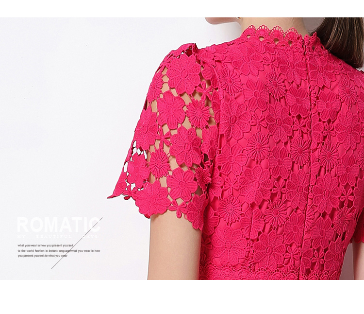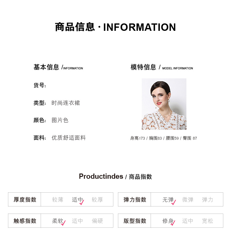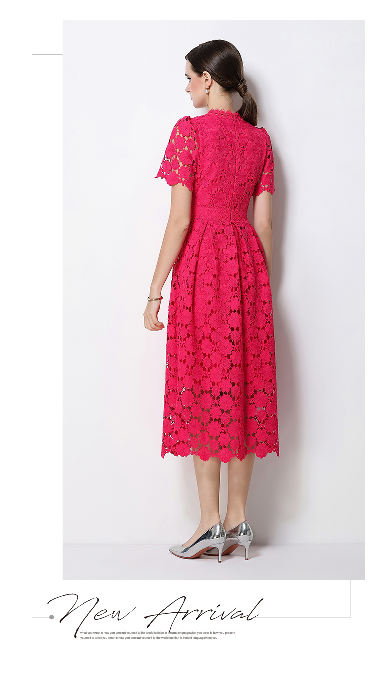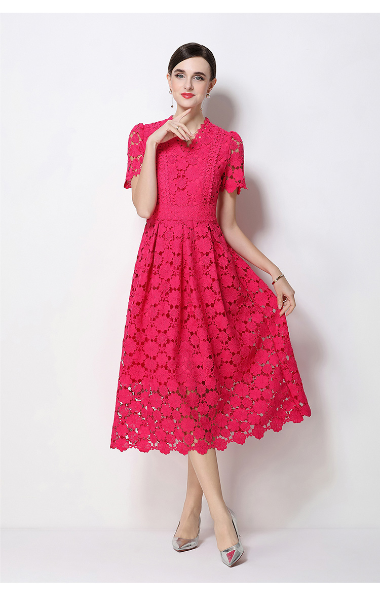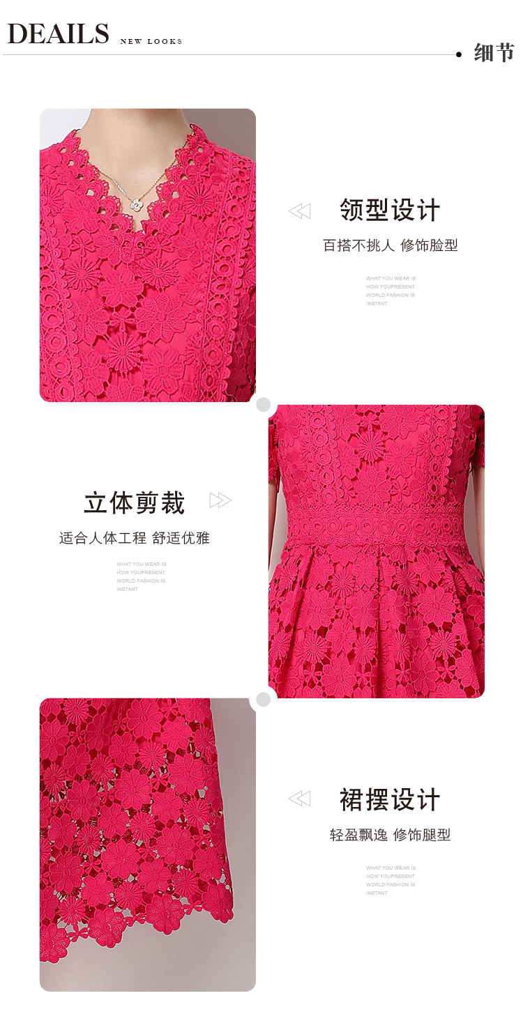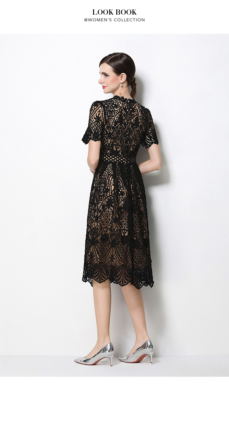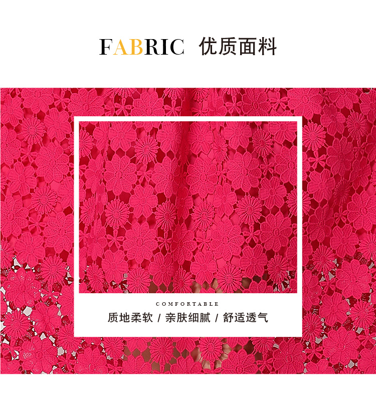 RY1772# 实拍原创V领时尚显瘦镂空水溶蕾丝定位中长款连衣裙