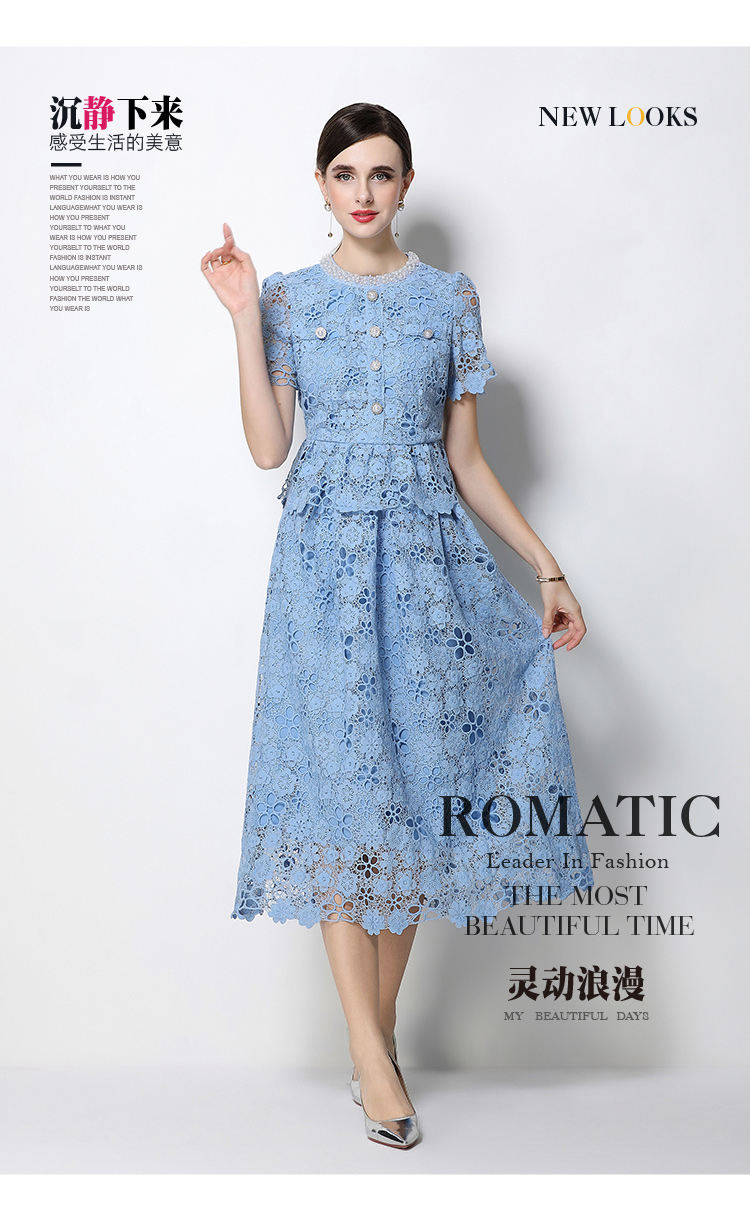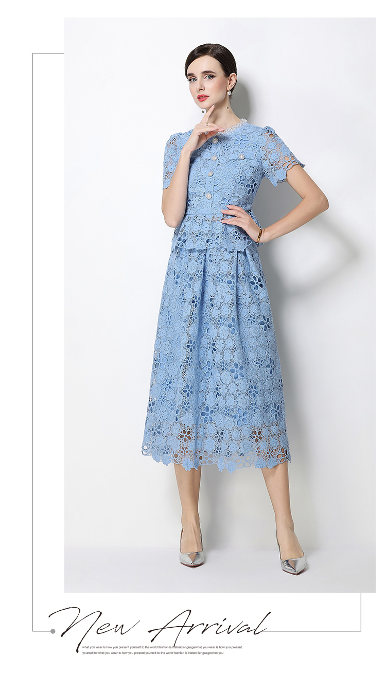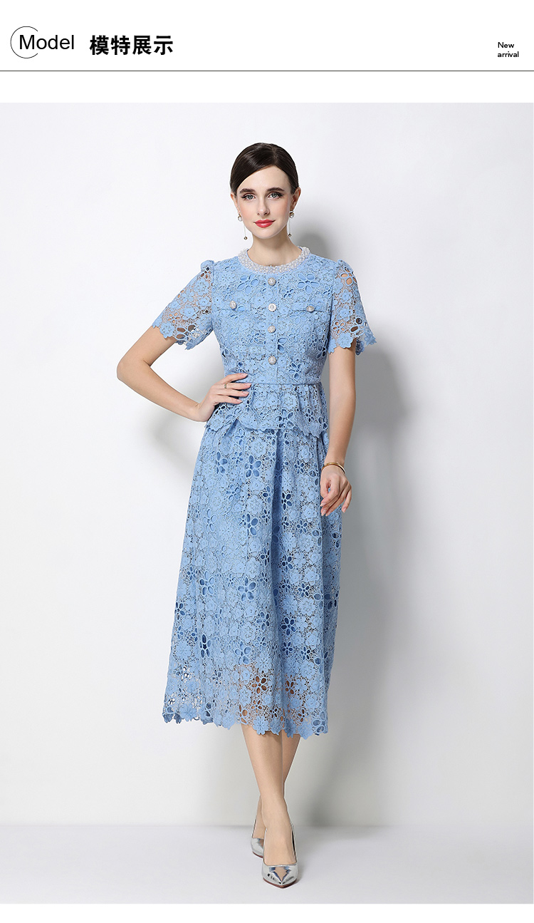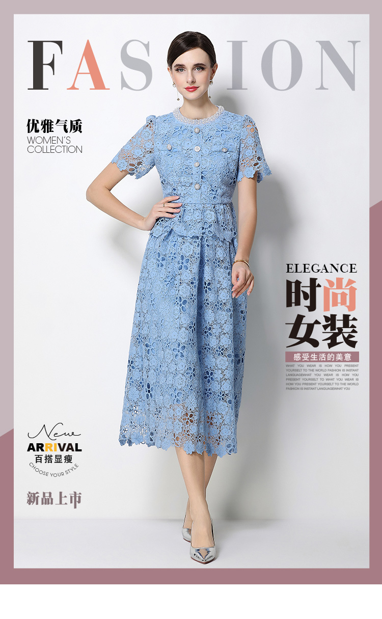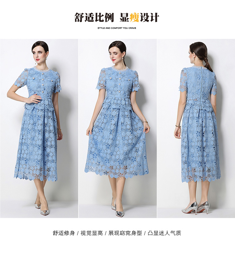 RY1776# 实拍原创轻奢高级感时尚显瘦镂空水溶蕾丝定位套装裙