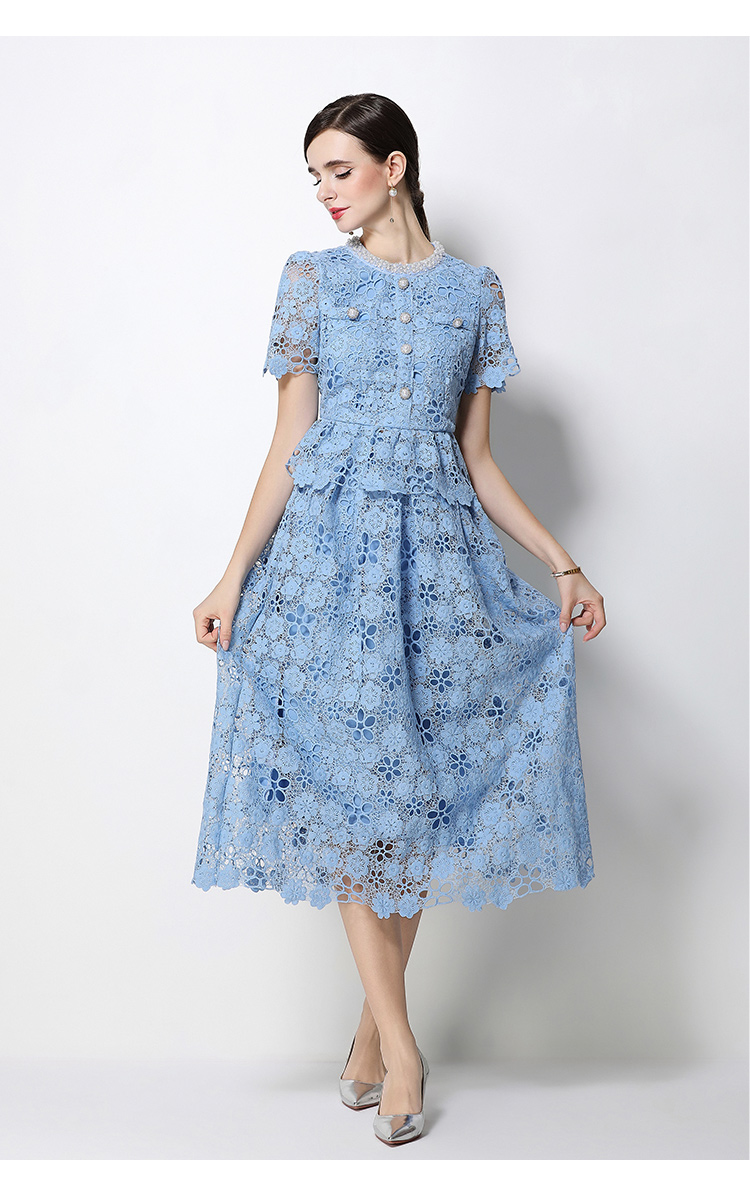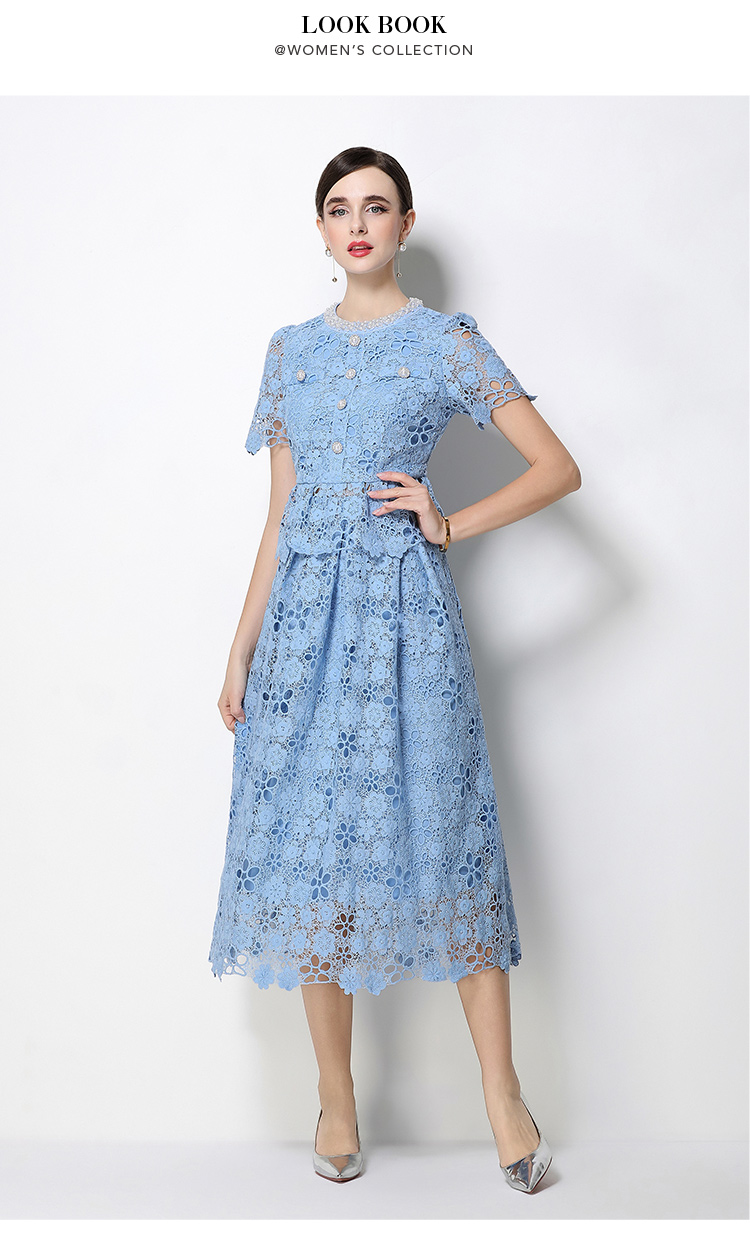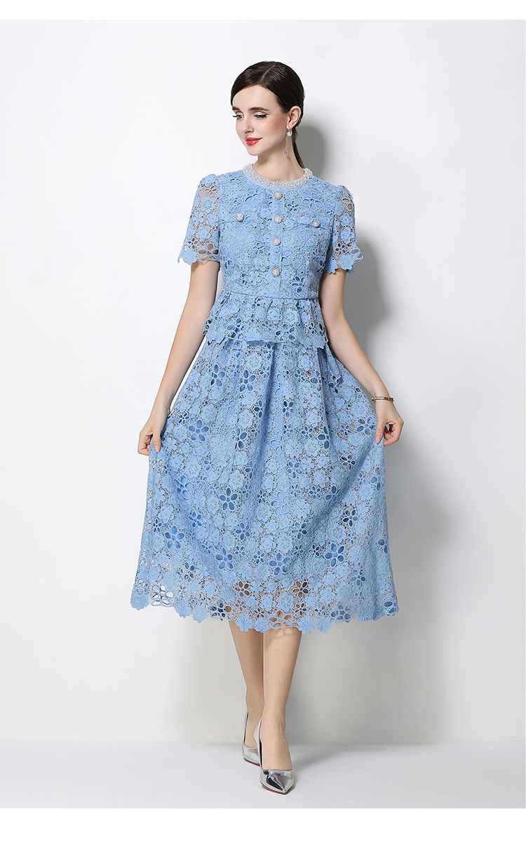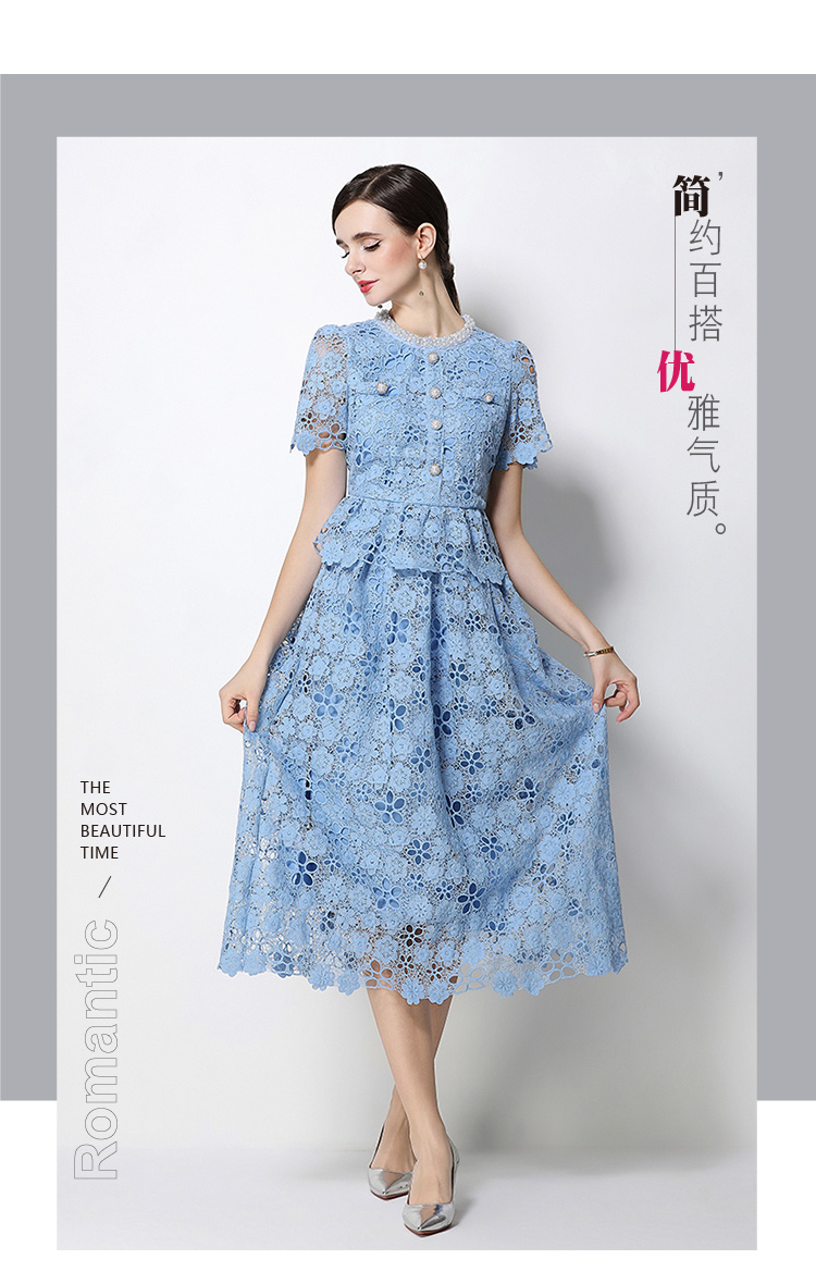 RY1776# 实拍原创轻奢高级感时尚显瘦镂空水溶蕾丝定位套装裙