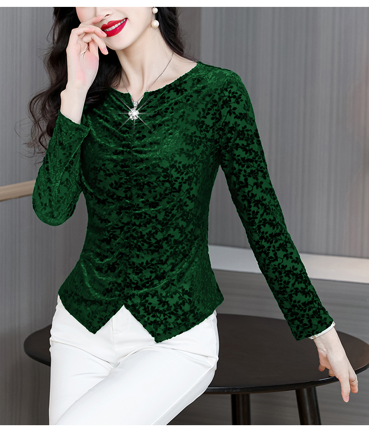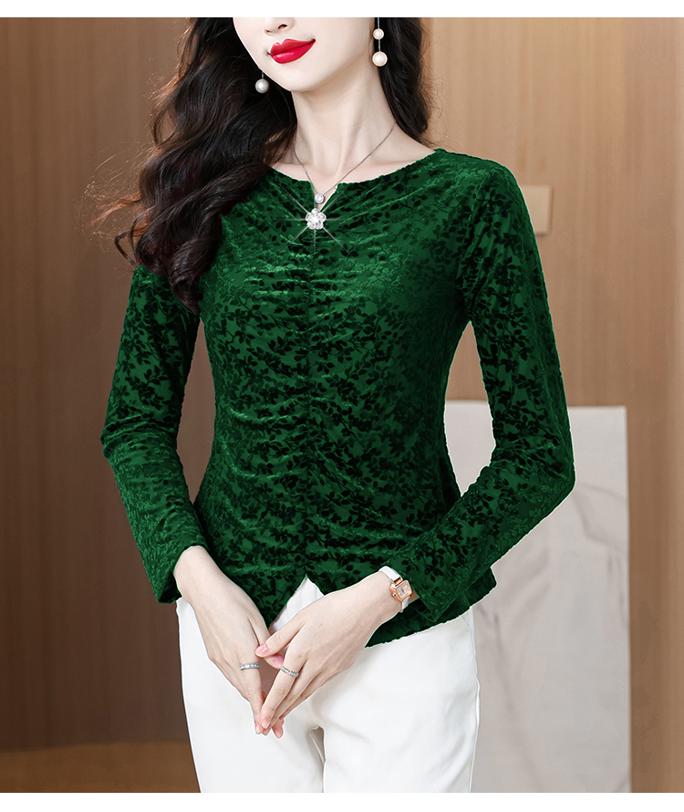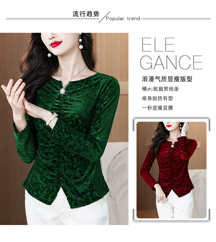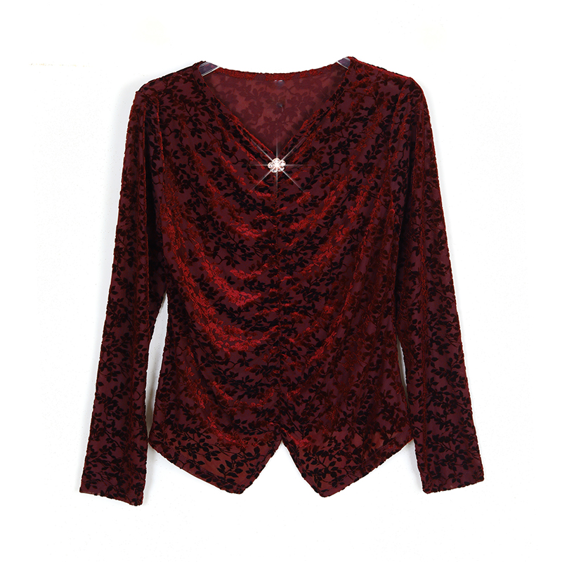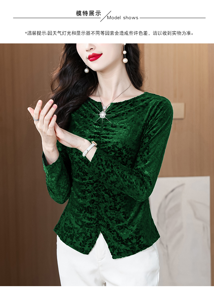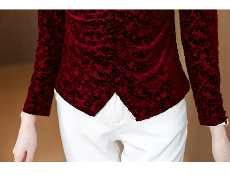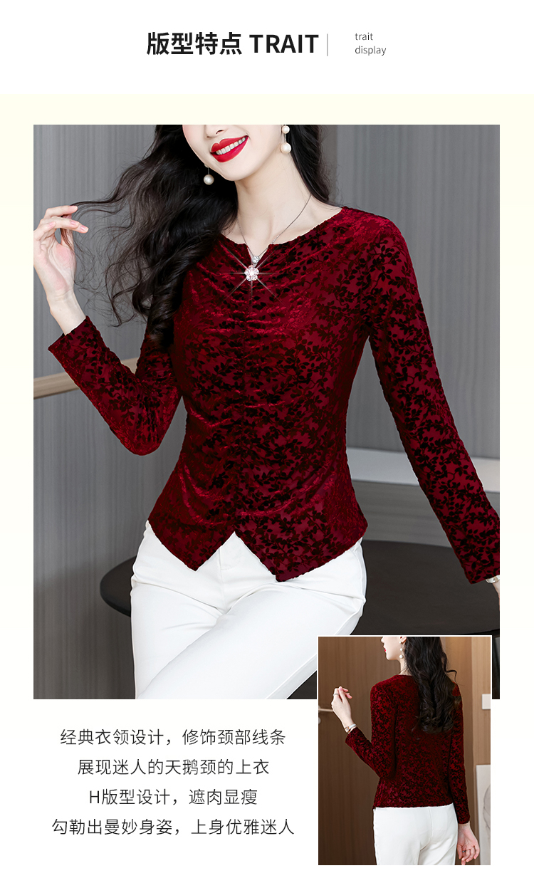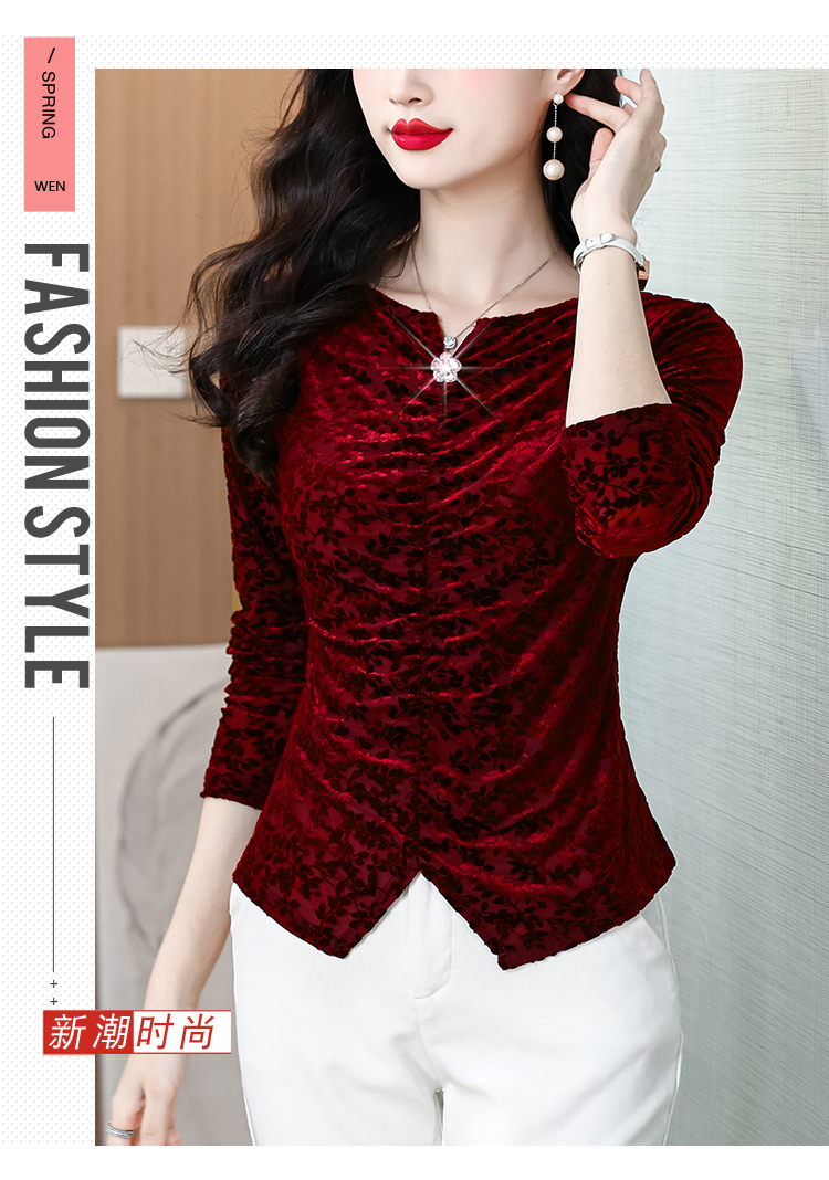 RY1782# 2026年春秋小众女装遮肚子时尚V领提花休闲风长袖衬衫上衣