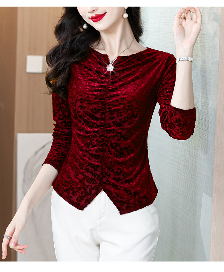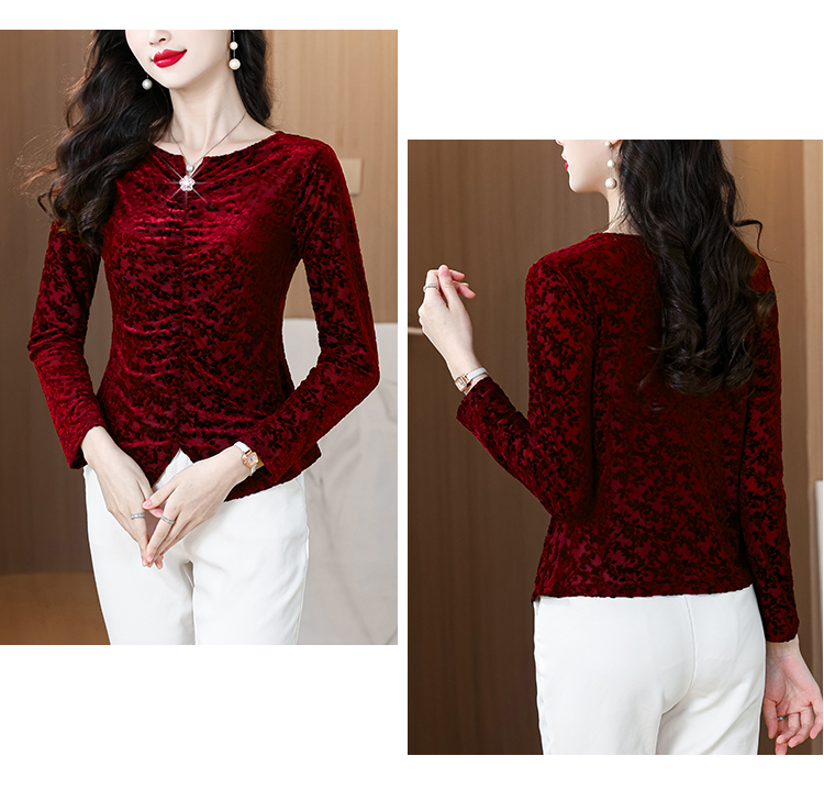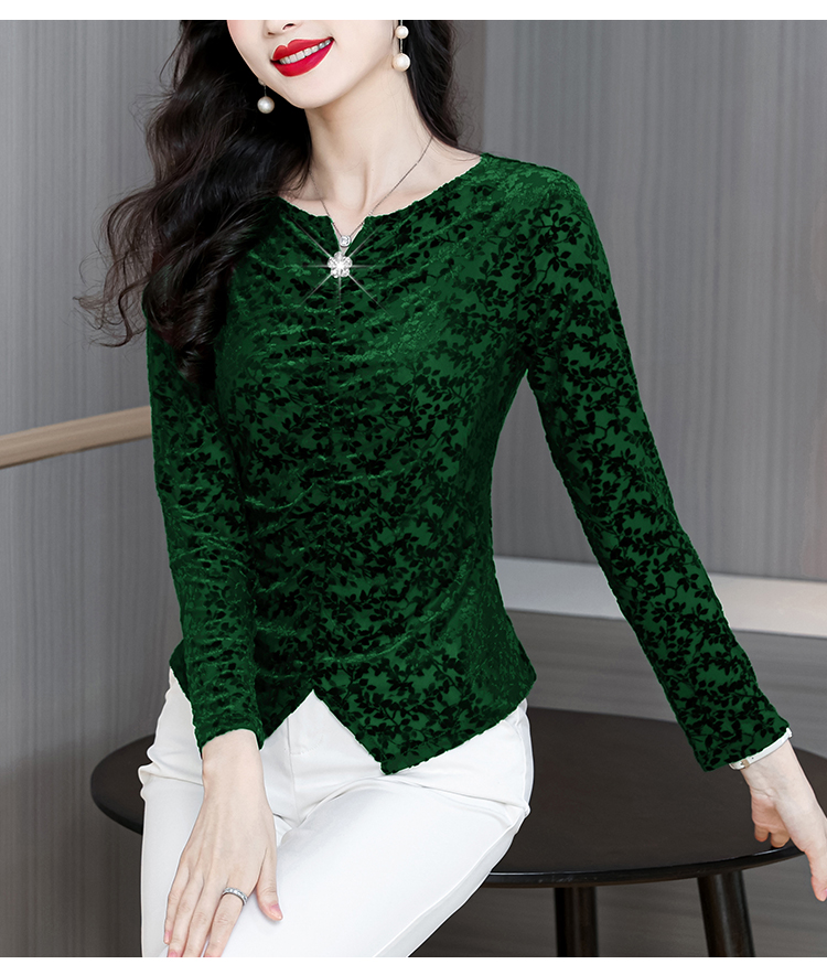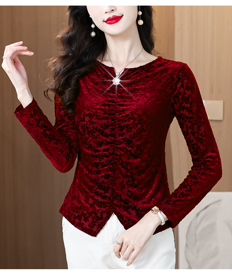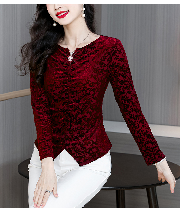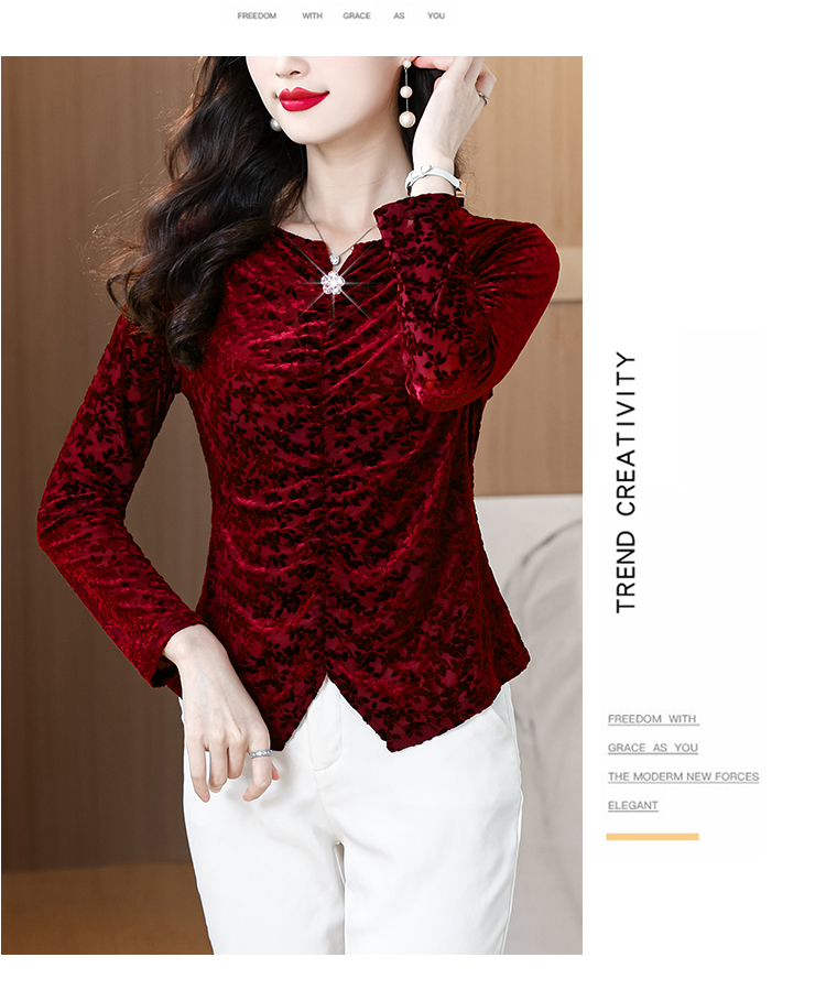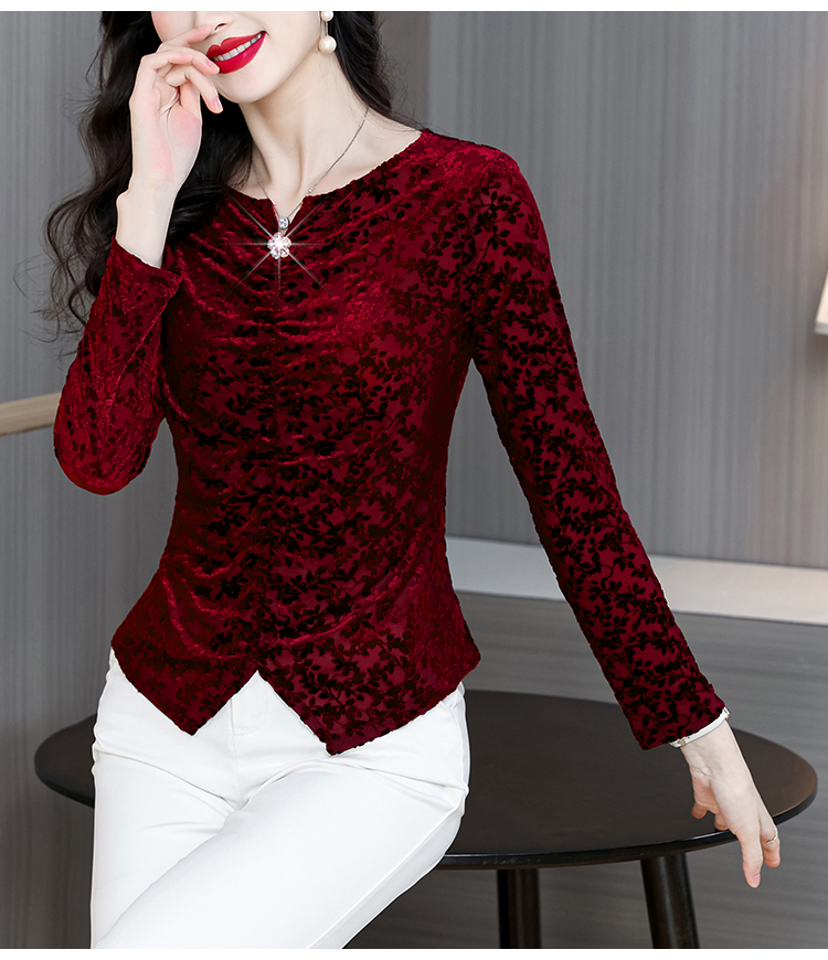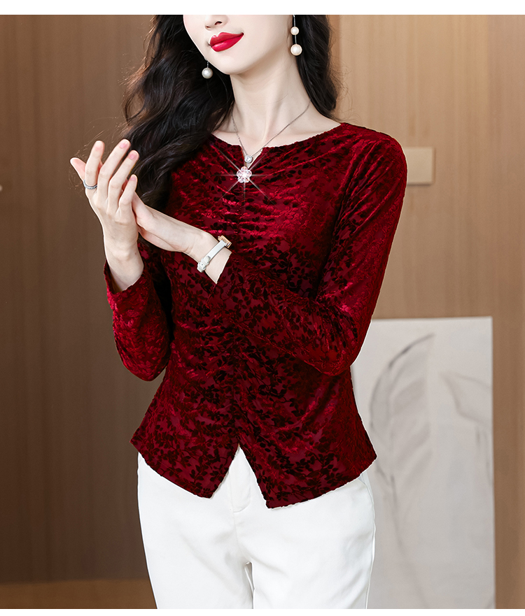RY1782# 2026年春秋小众女装遮肚子时尚V领提花休闲风长袖衬衫上衣