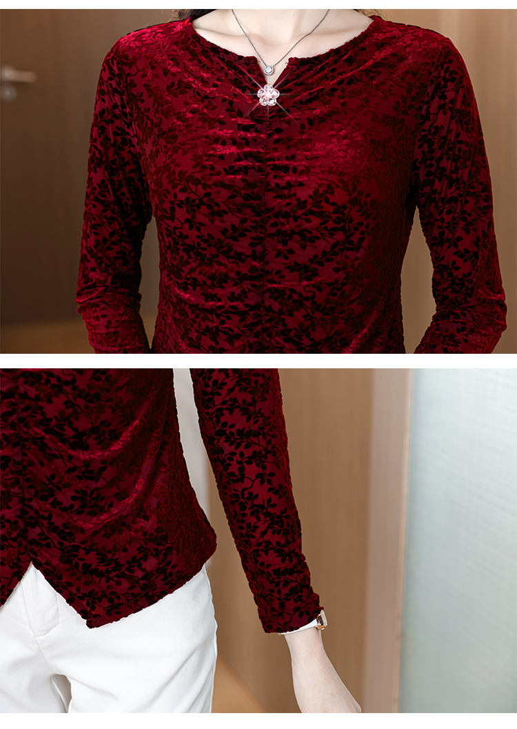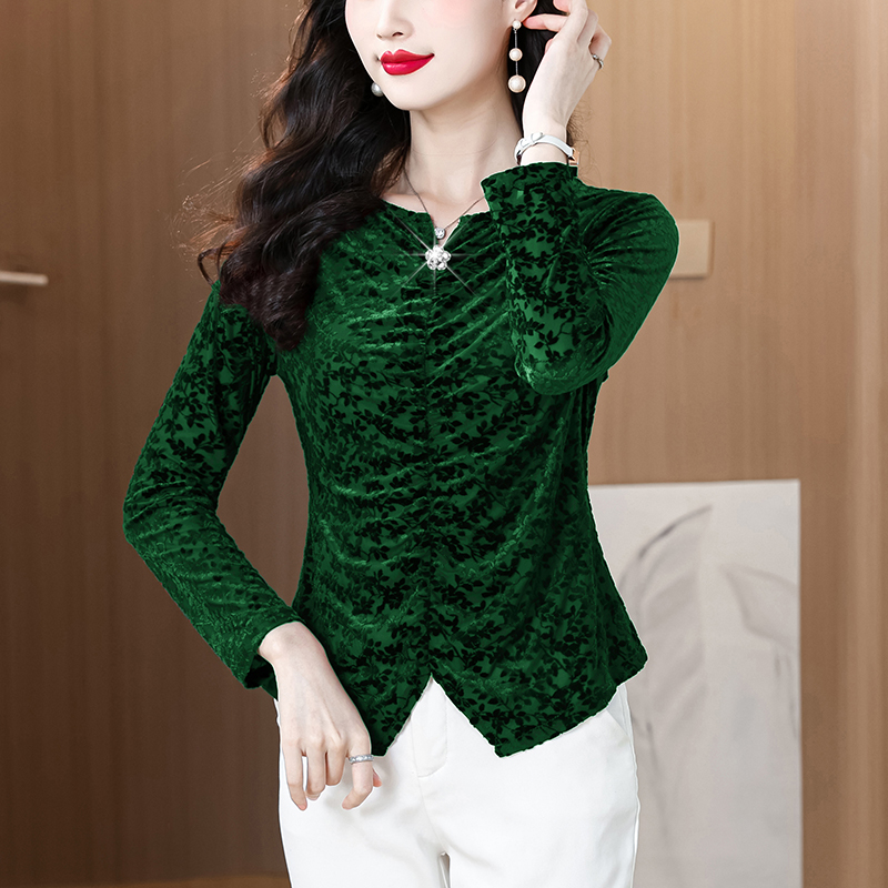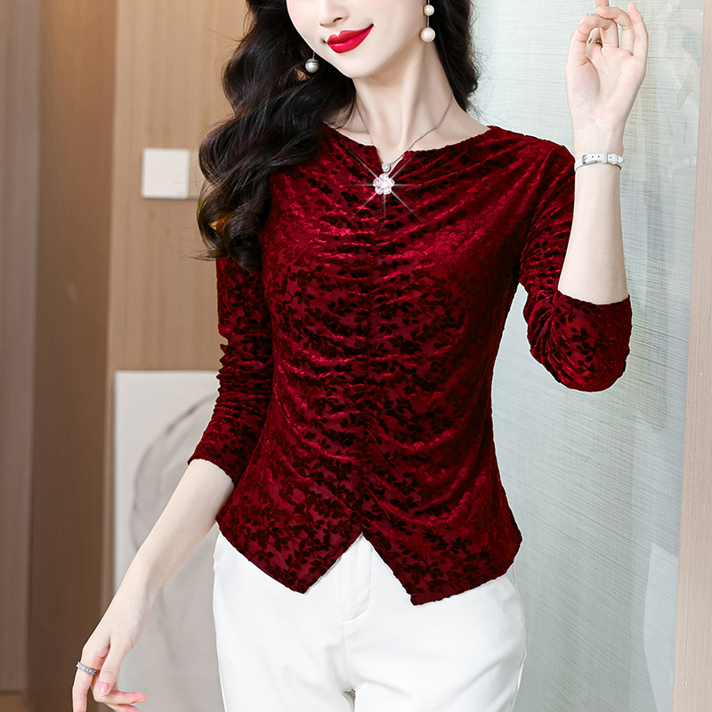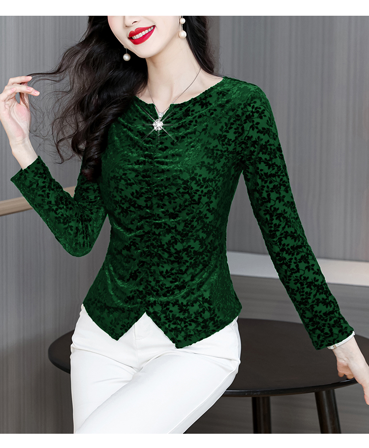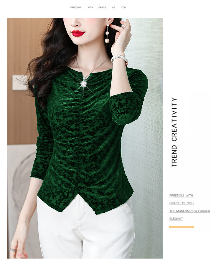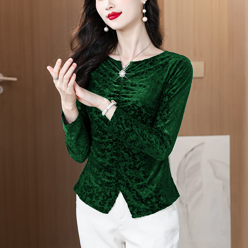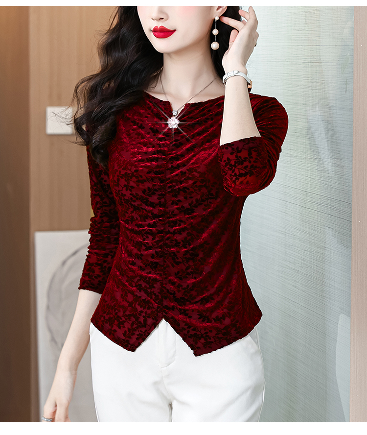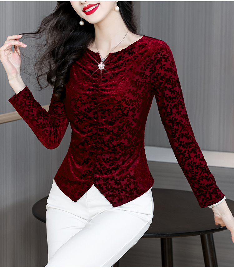 RY1782# 2026年春秋小众女装遮肚子时尚V领提花休闲风长袖衬衫上衣