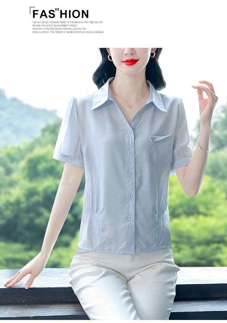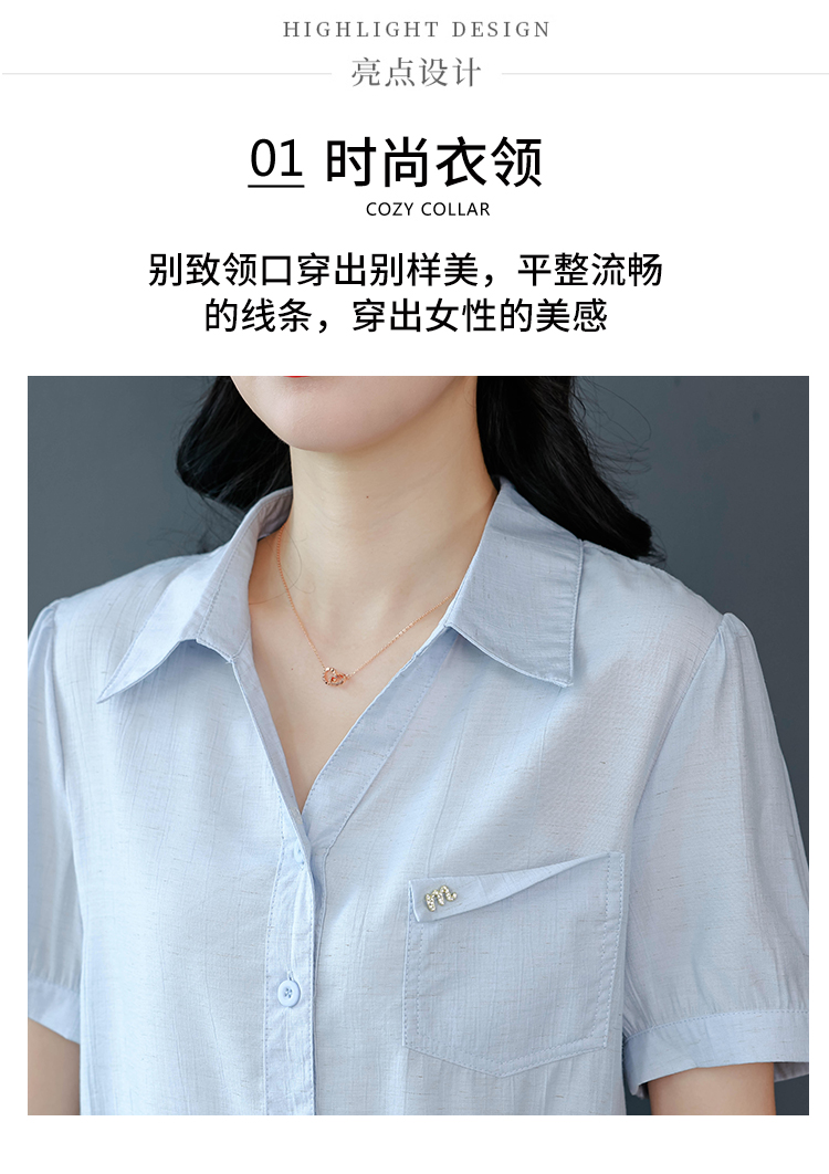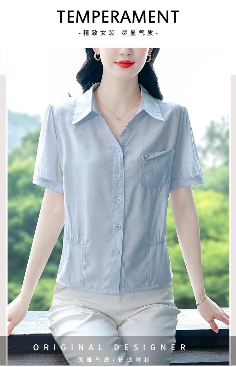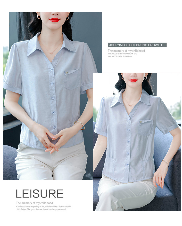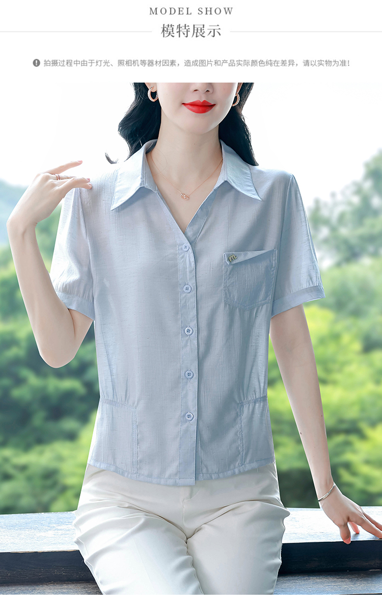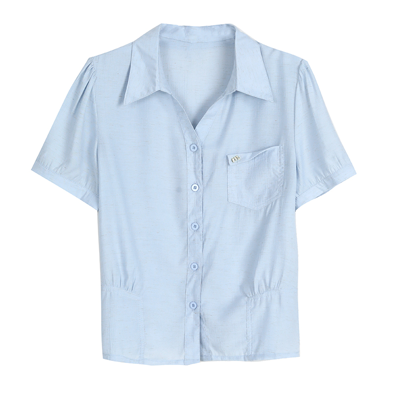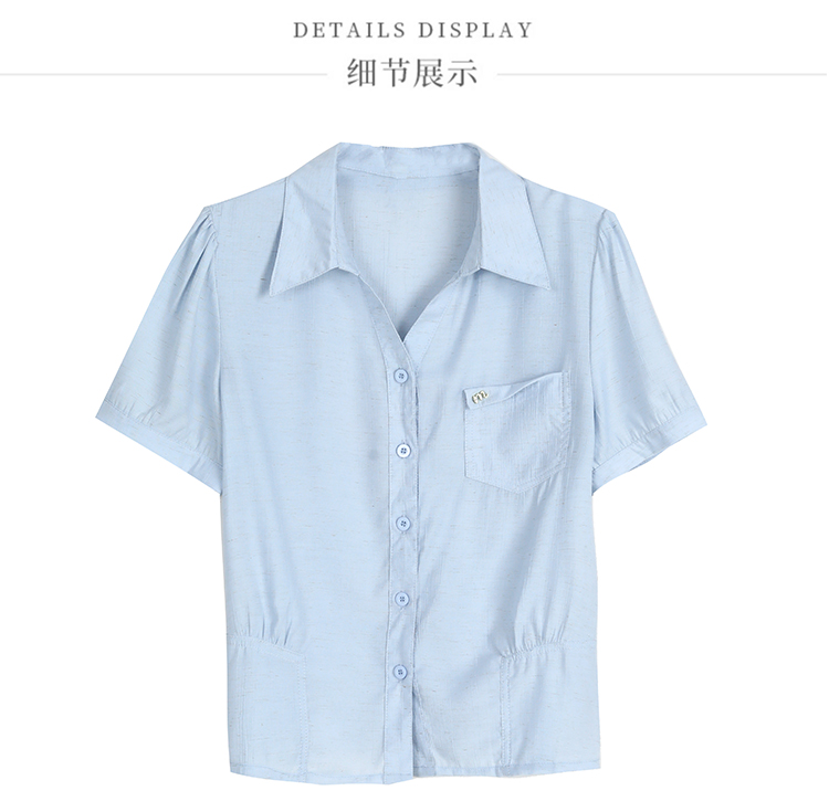 RY1807# 2026夏季新款洋气减龄纯色V领短袖衬衫女收腰显瘦气质百搭上衣