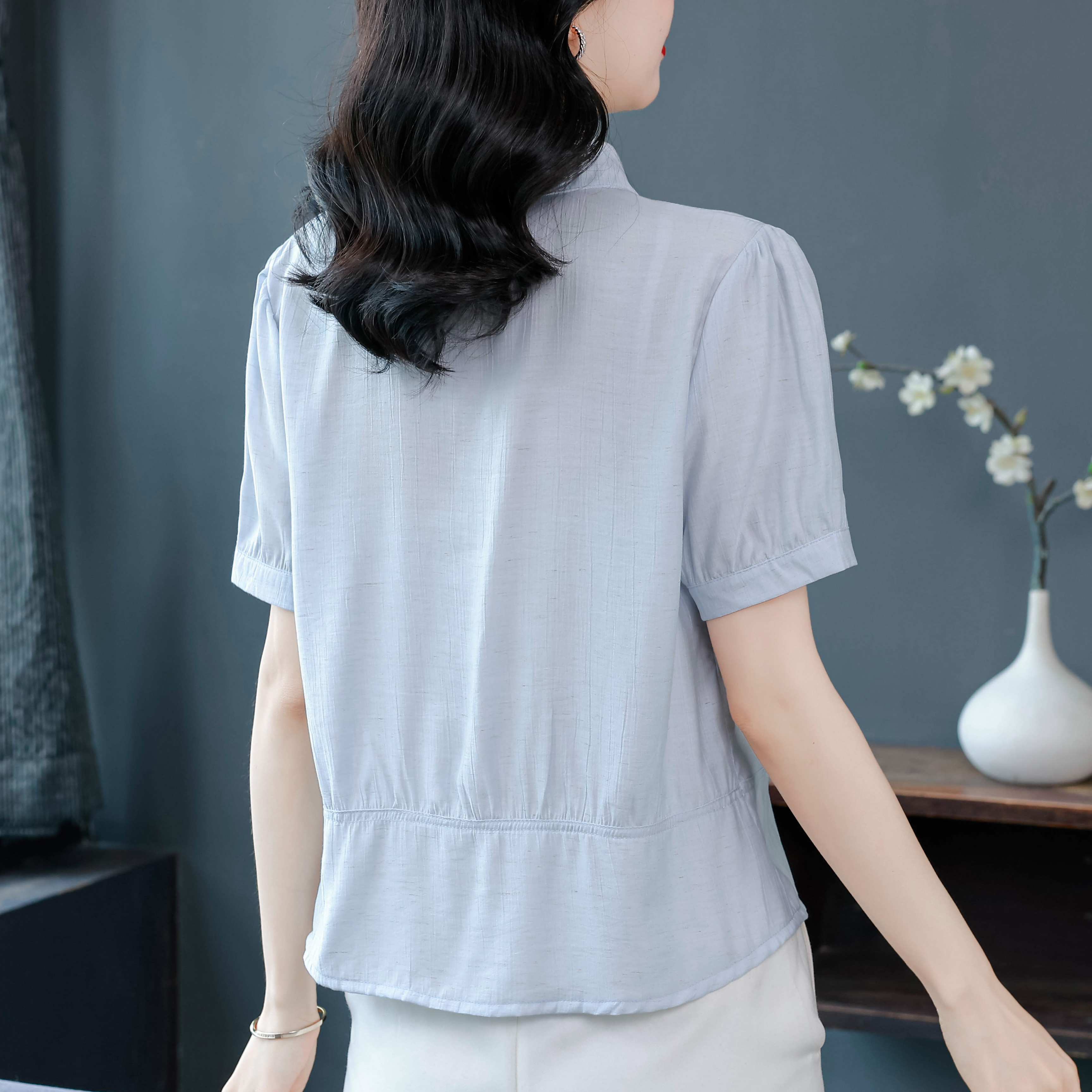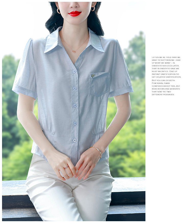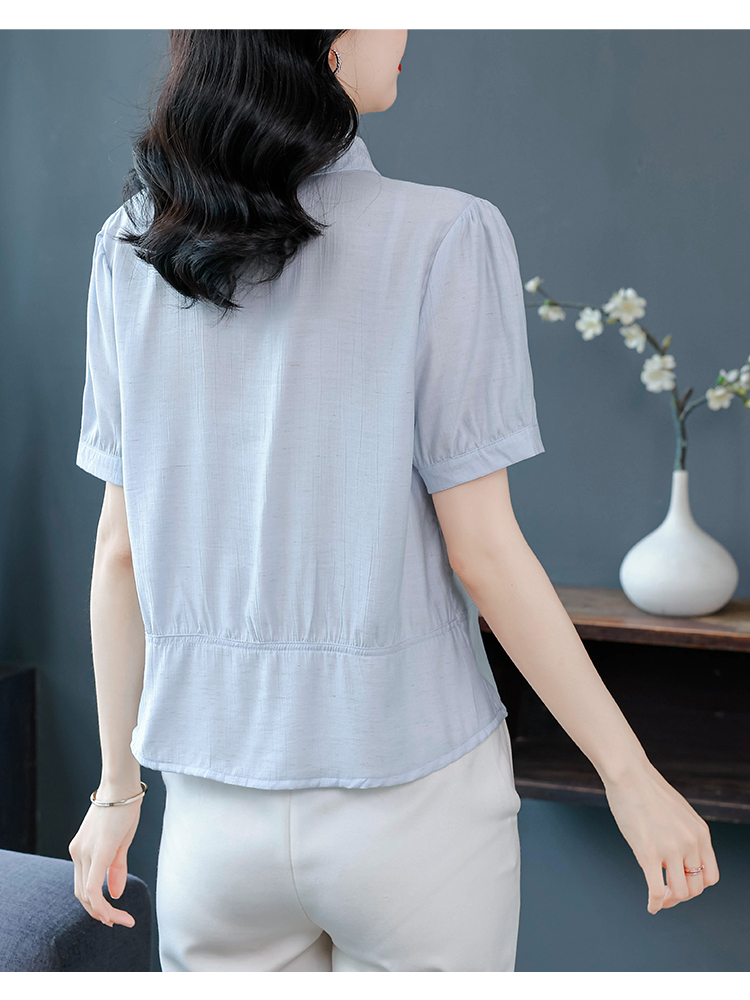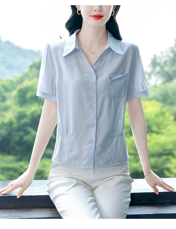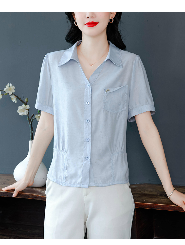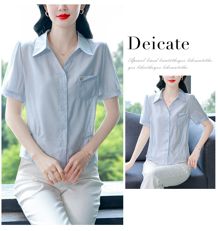 RY1807# 2026夏季新款洋气减龄纯色V领短袖衬衫女收腰显瘦气质百搭上衣