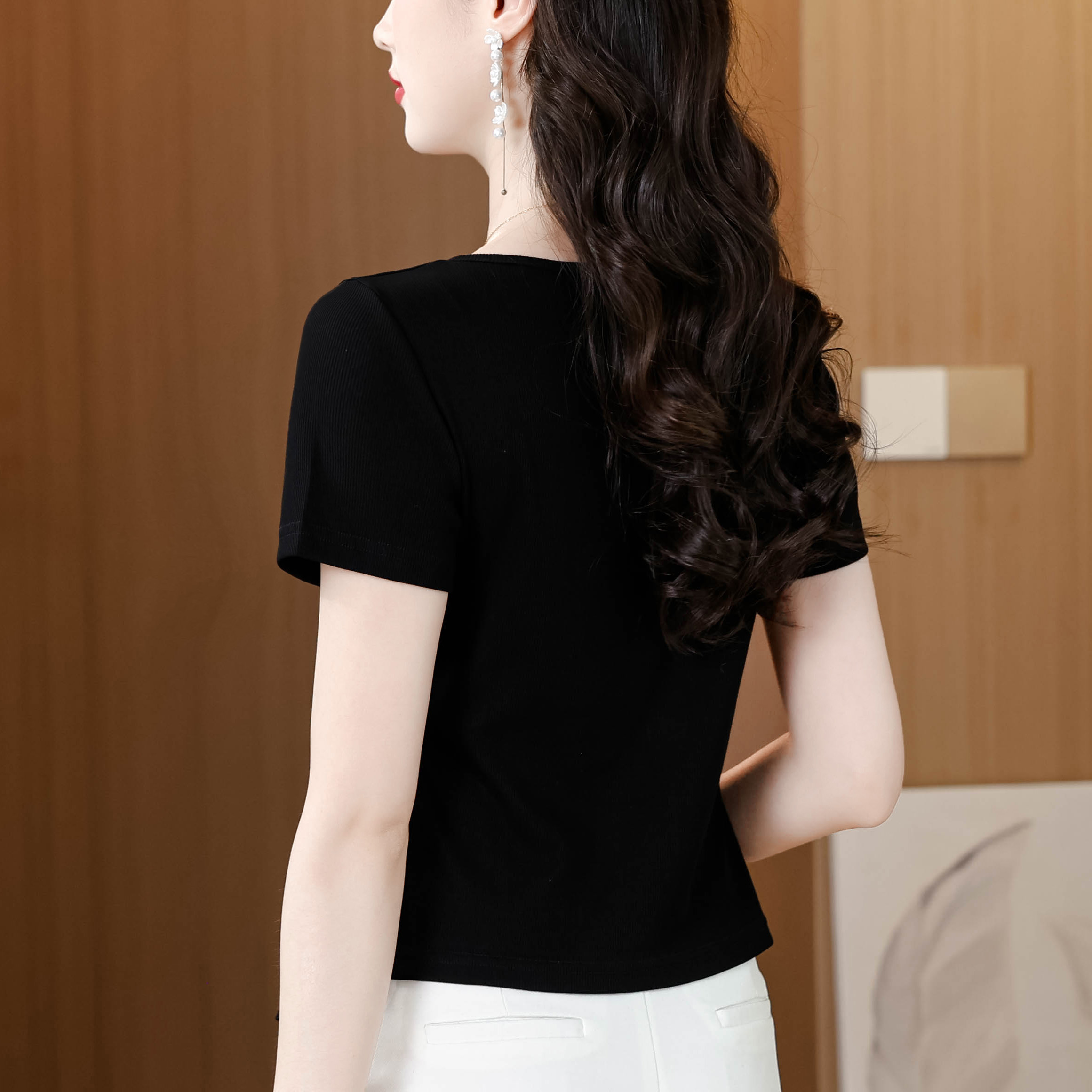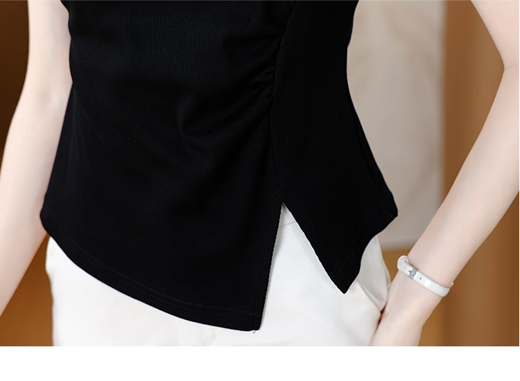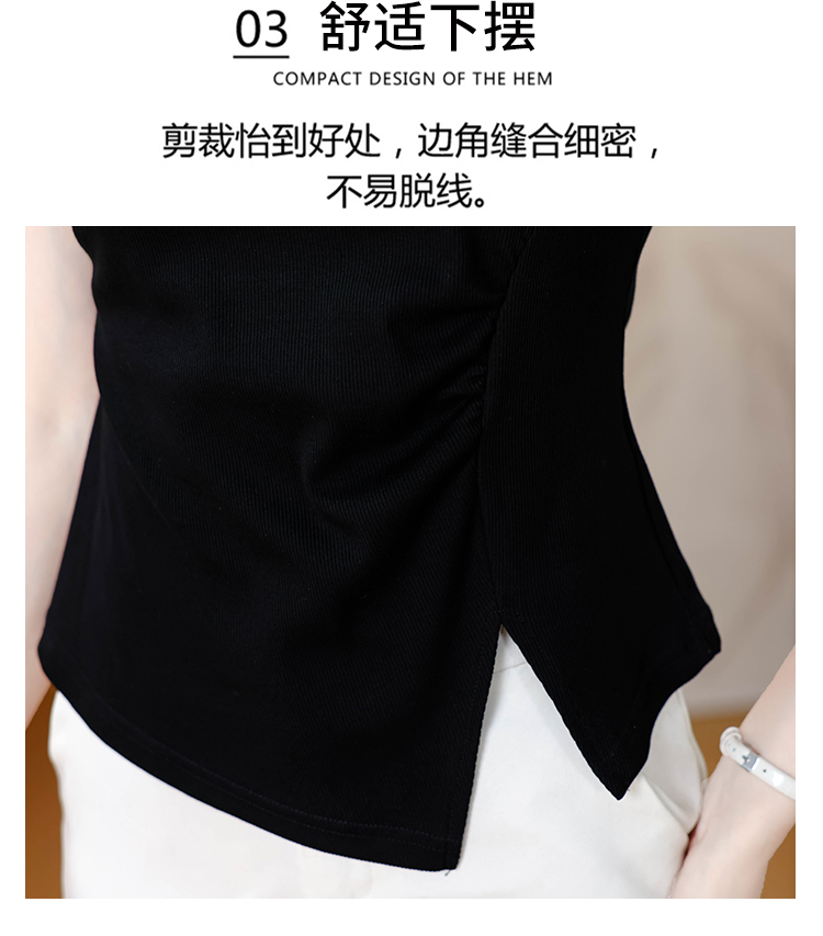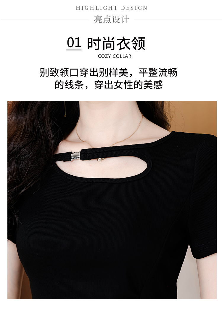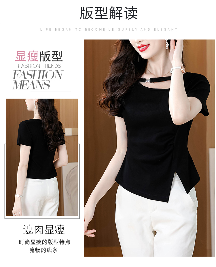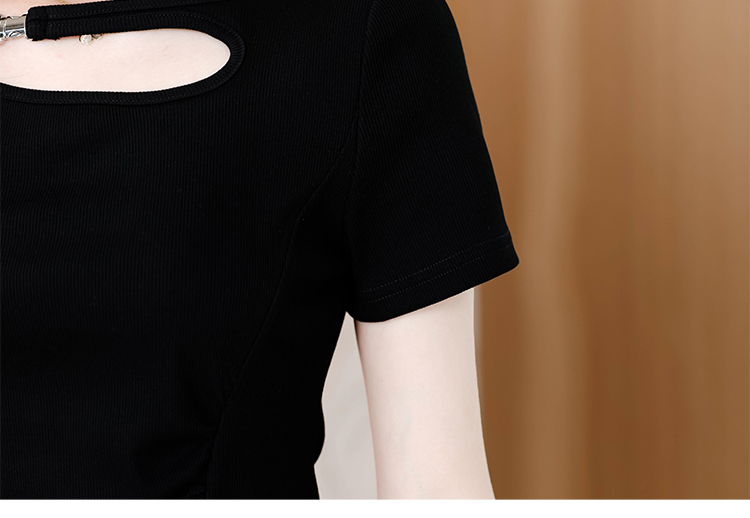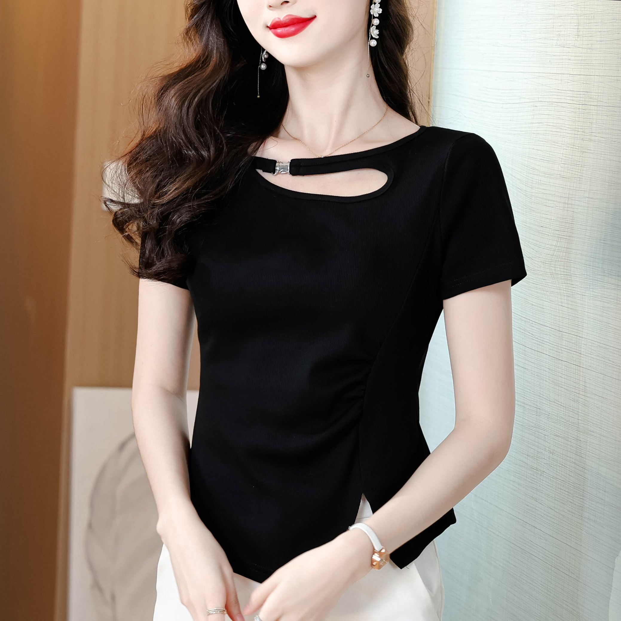 RY1808# 2026夏季新款圆领镂空短袖T恤女不规则开叉收腰显瘦百搭洋气上衣