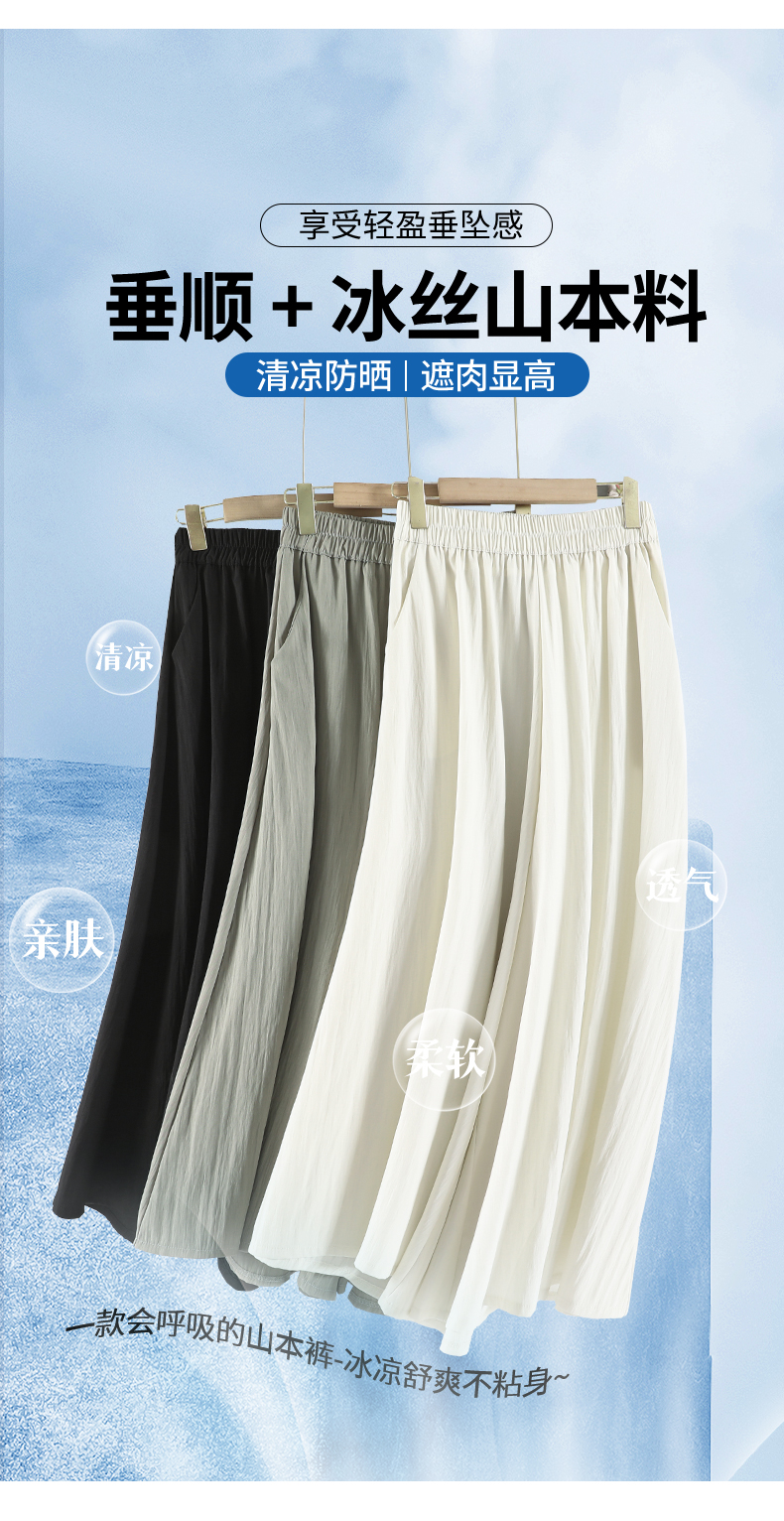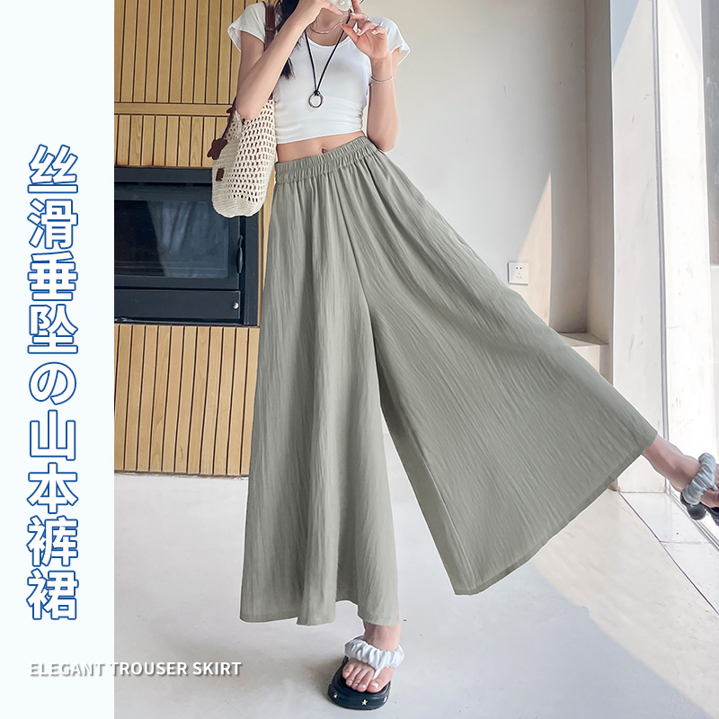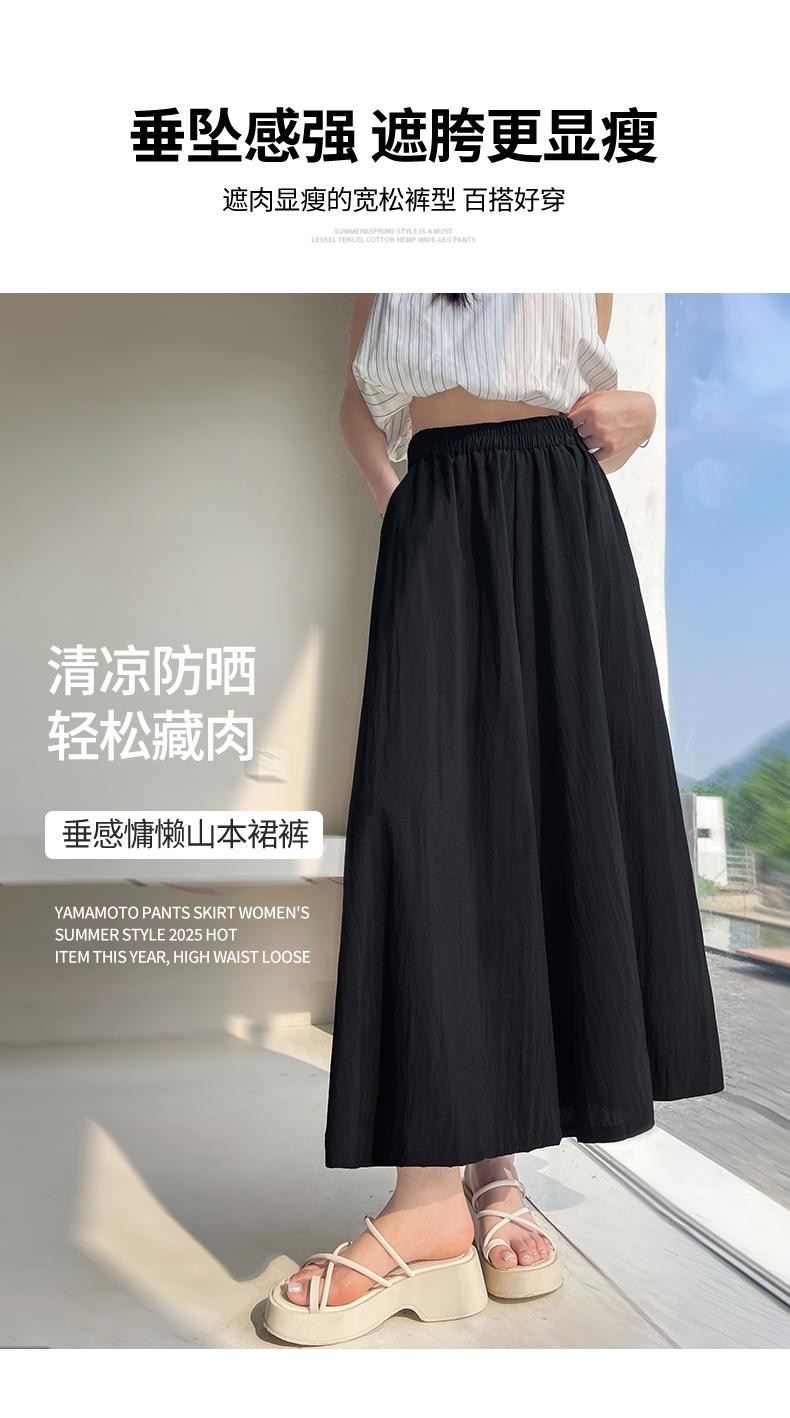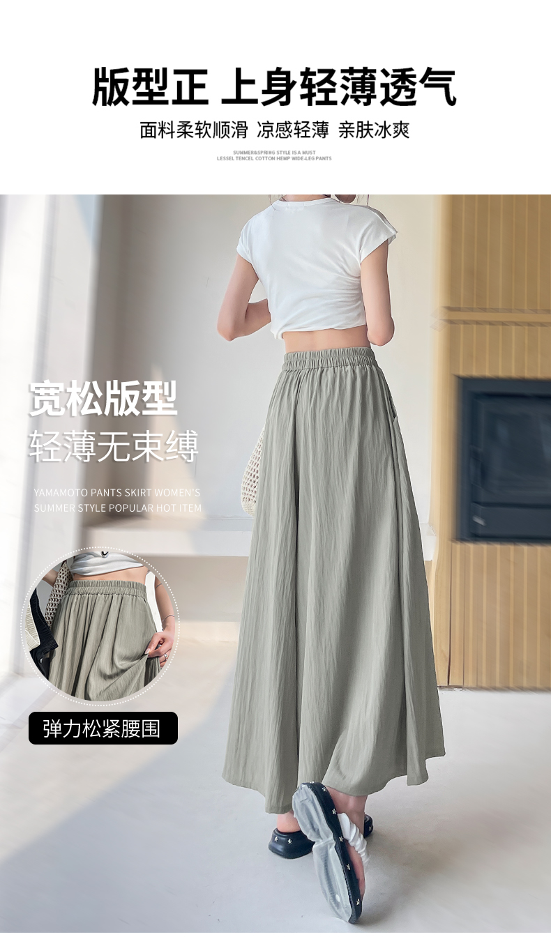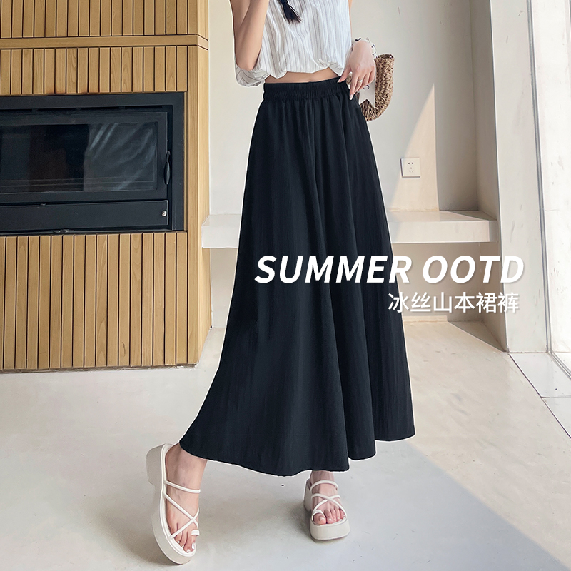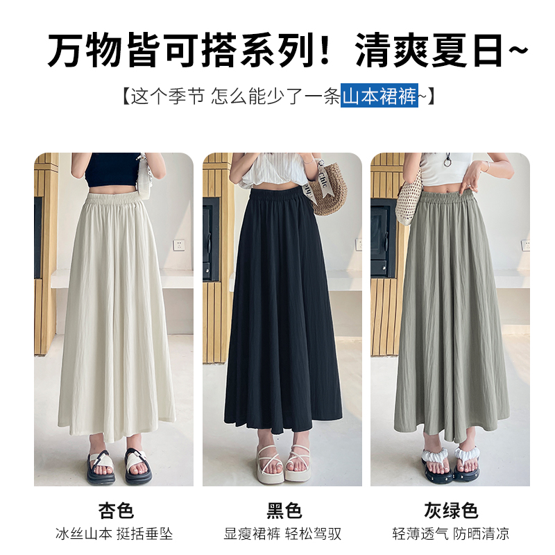 RY1818# 冰丝防晒山本裙裤女夏季新款高腰垂感宽松休闲裤大阔腿亚麻凉凉裤