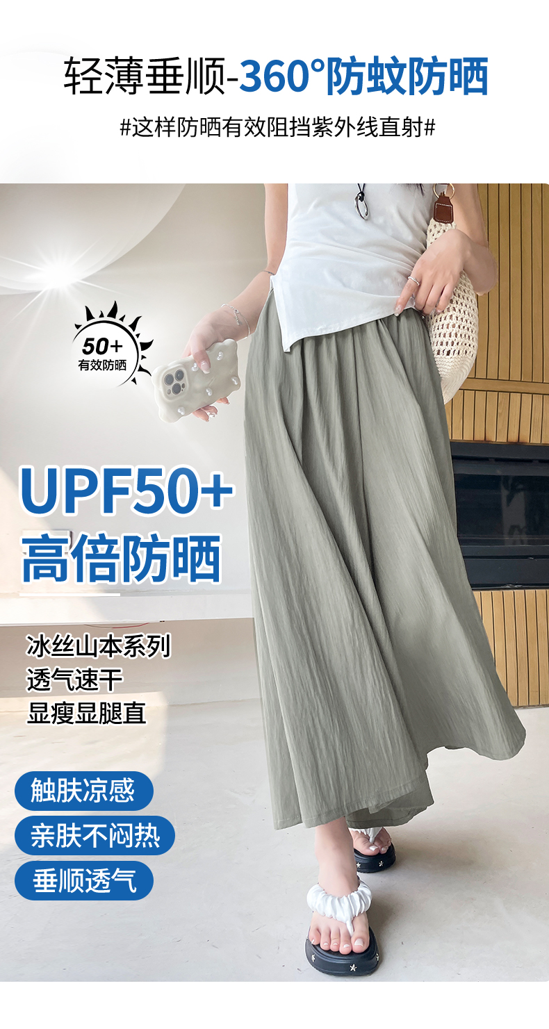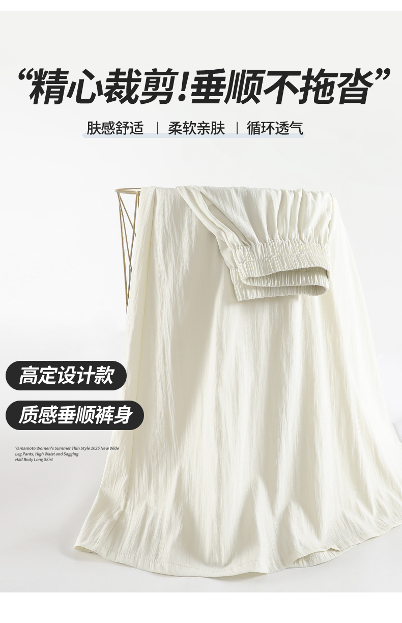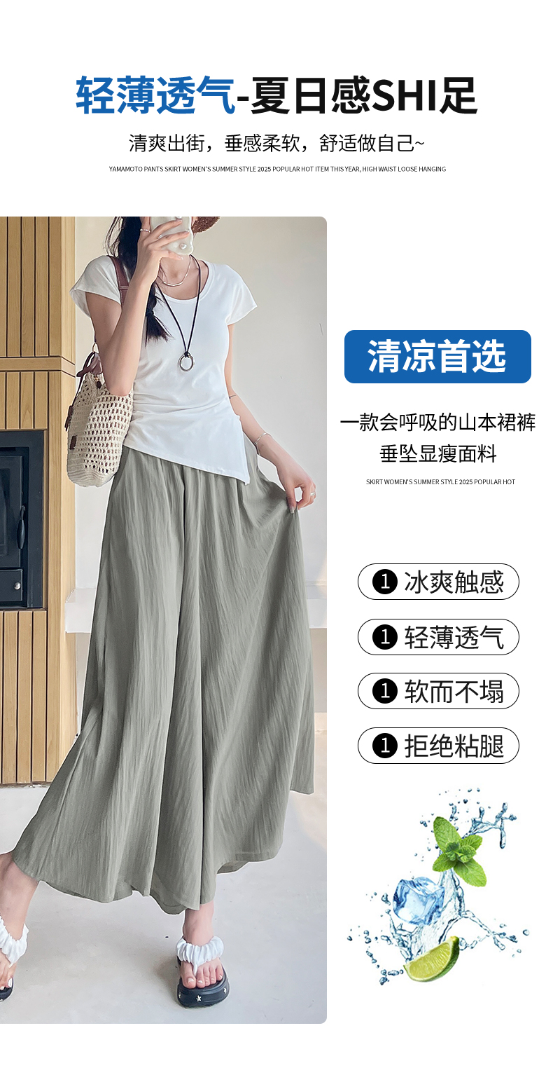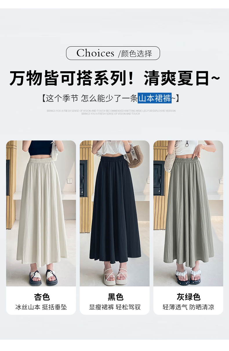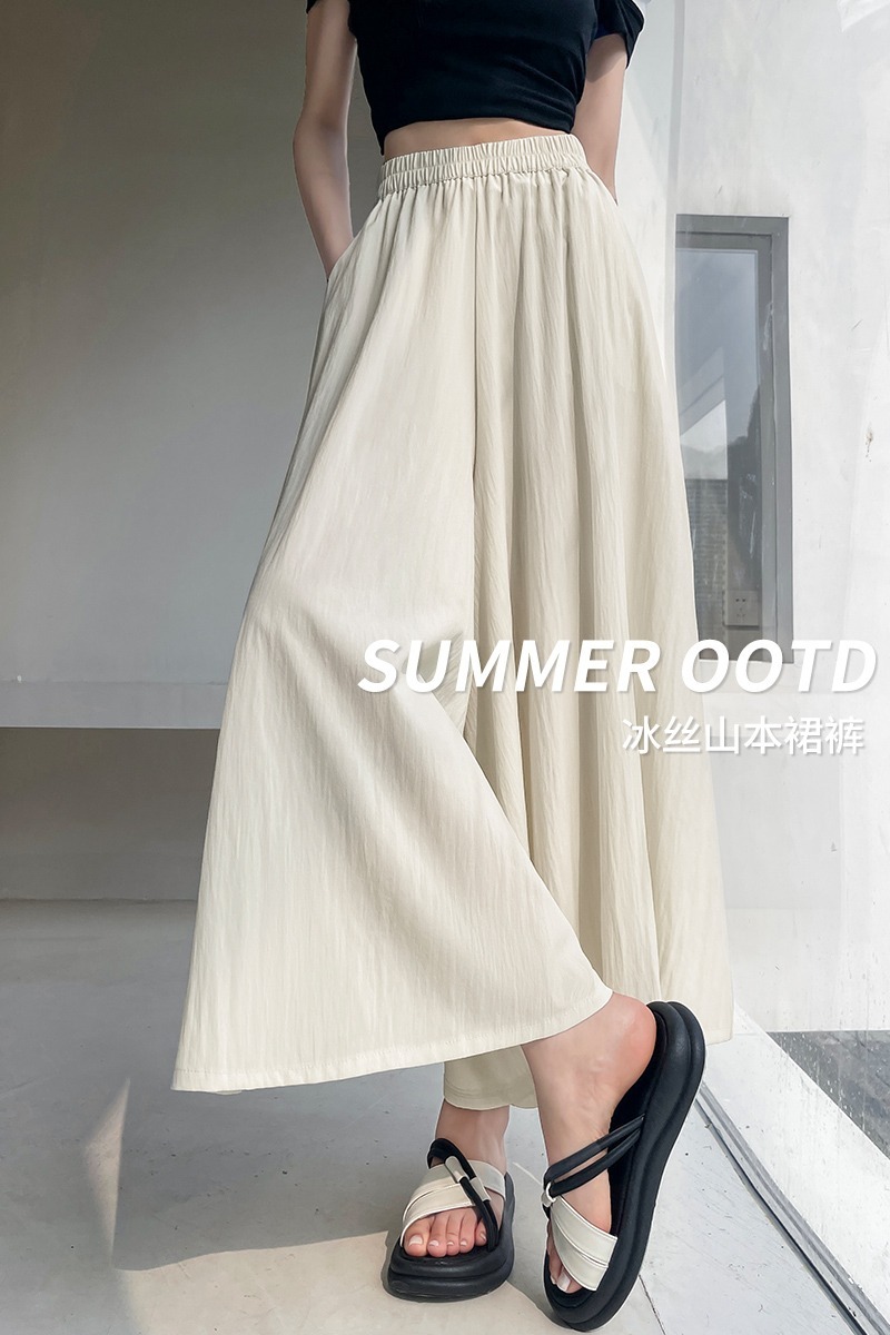 RY1818# 冰丝防晒山本裙裤女夏季新款高腰垂感宽松休闲裤大阔腿亚麻凉凉裤