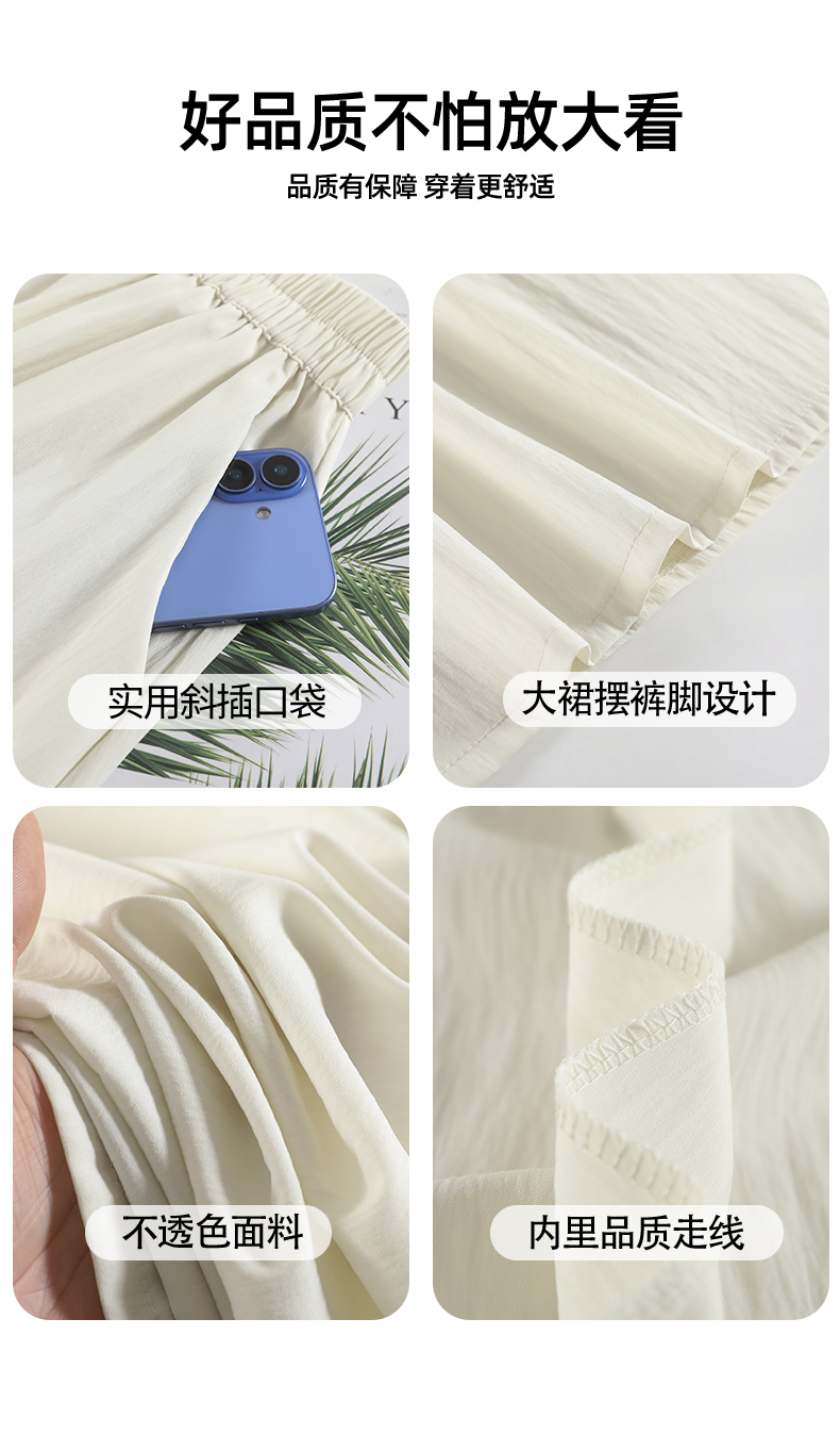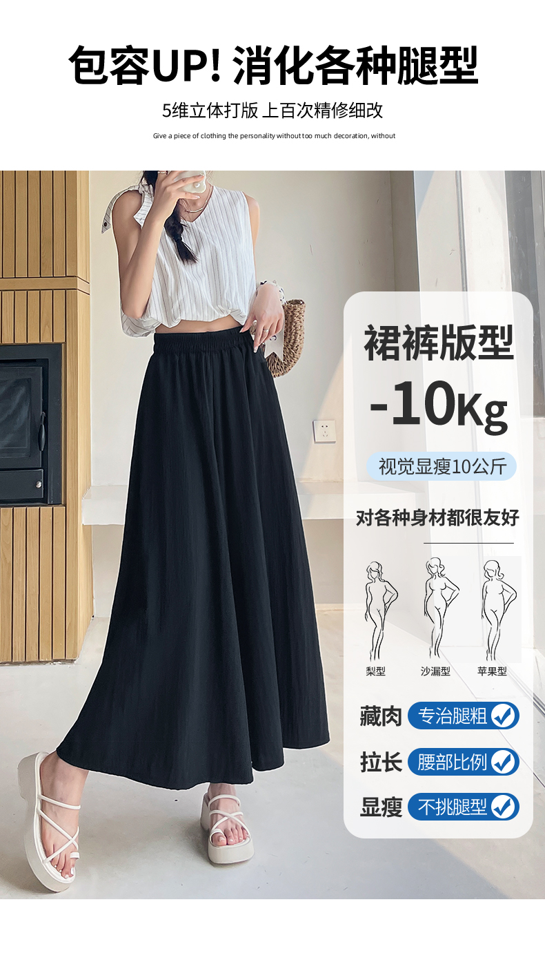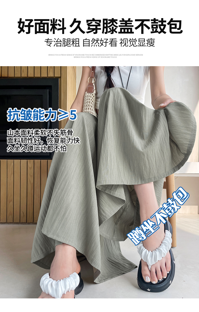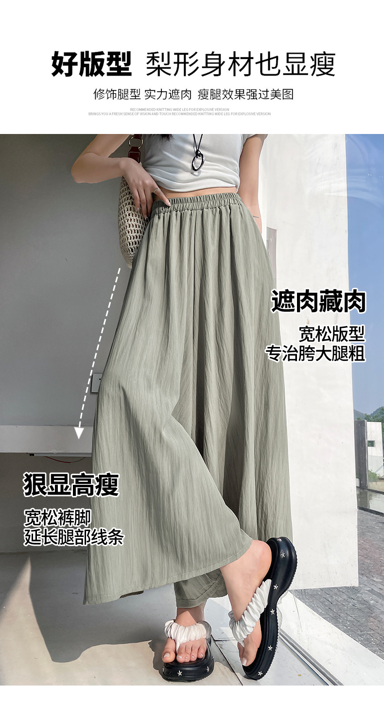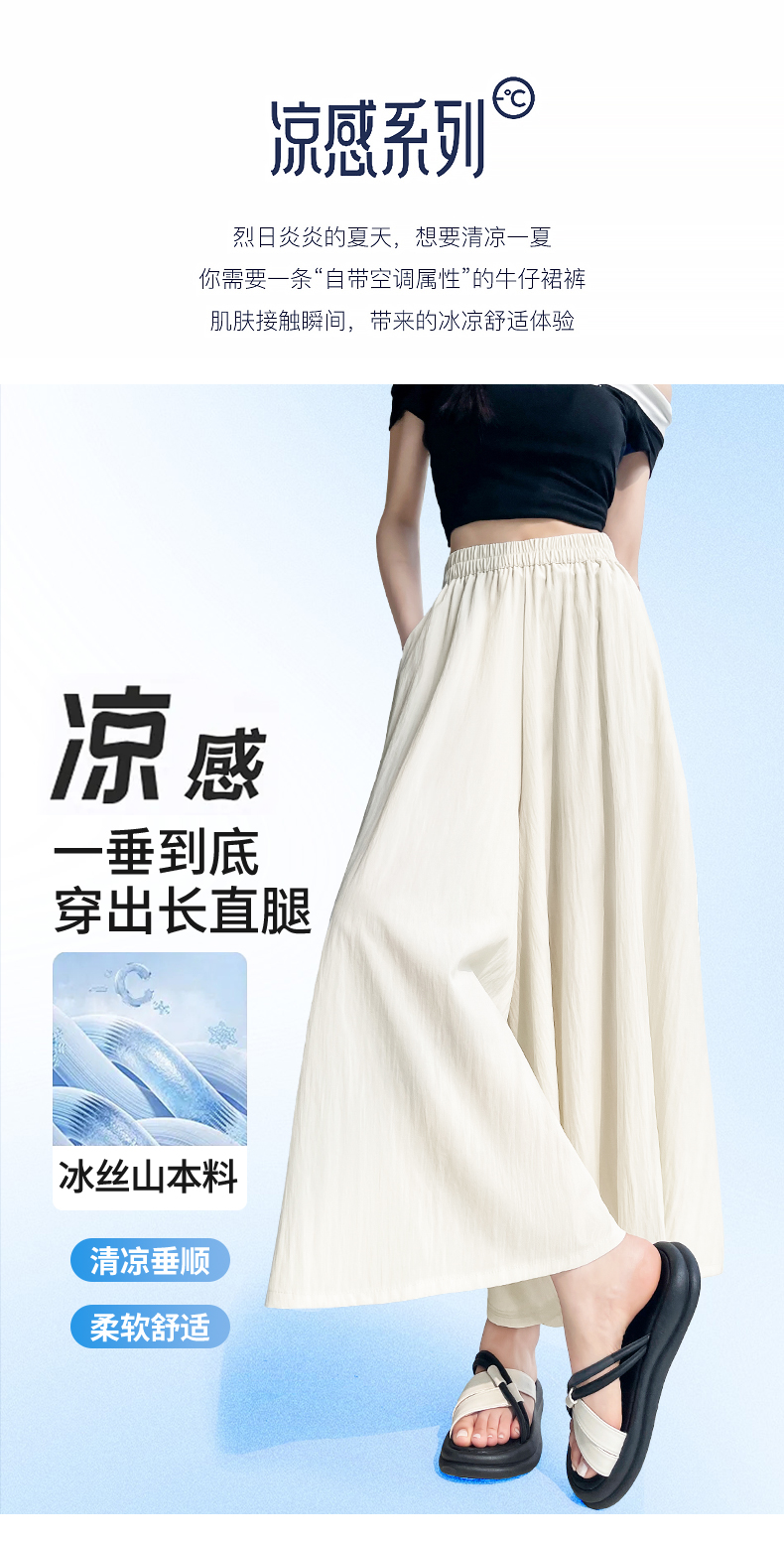 RY1818# 冰丝防晒山本裙裤女夏季新款高腰垂感宽松休闲裤大阔腿亚麻凉凉裤