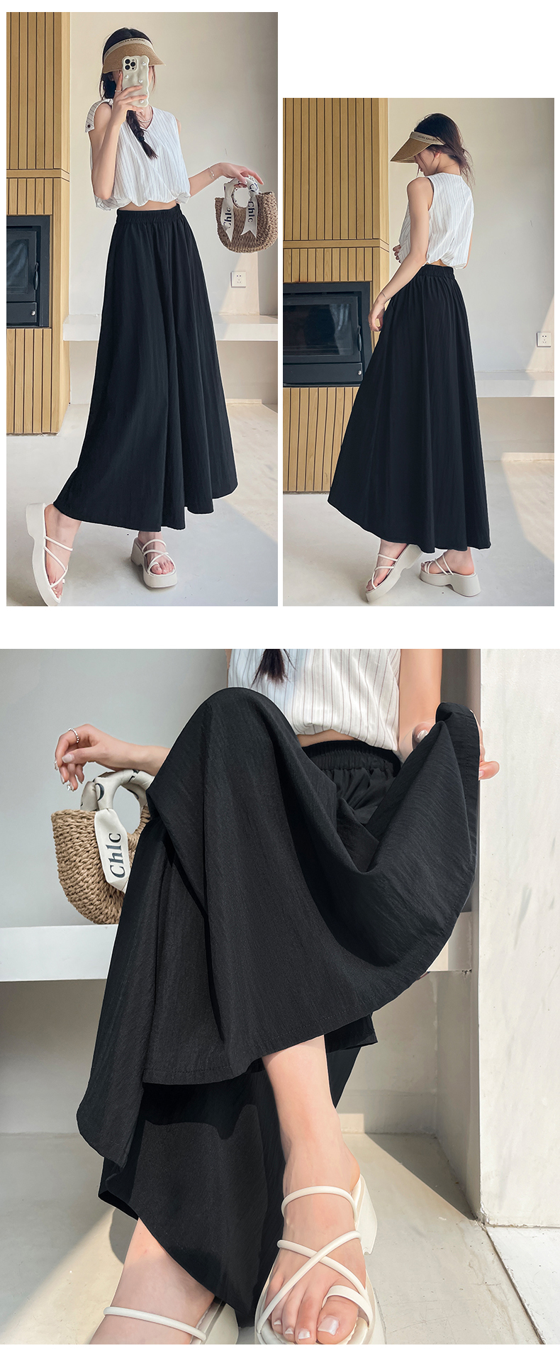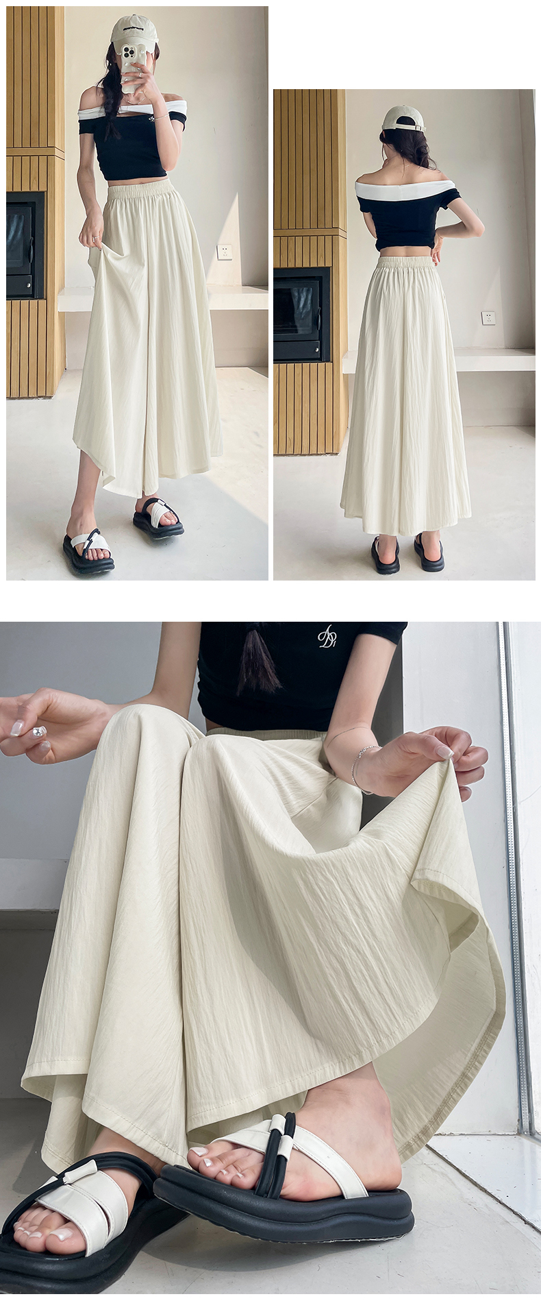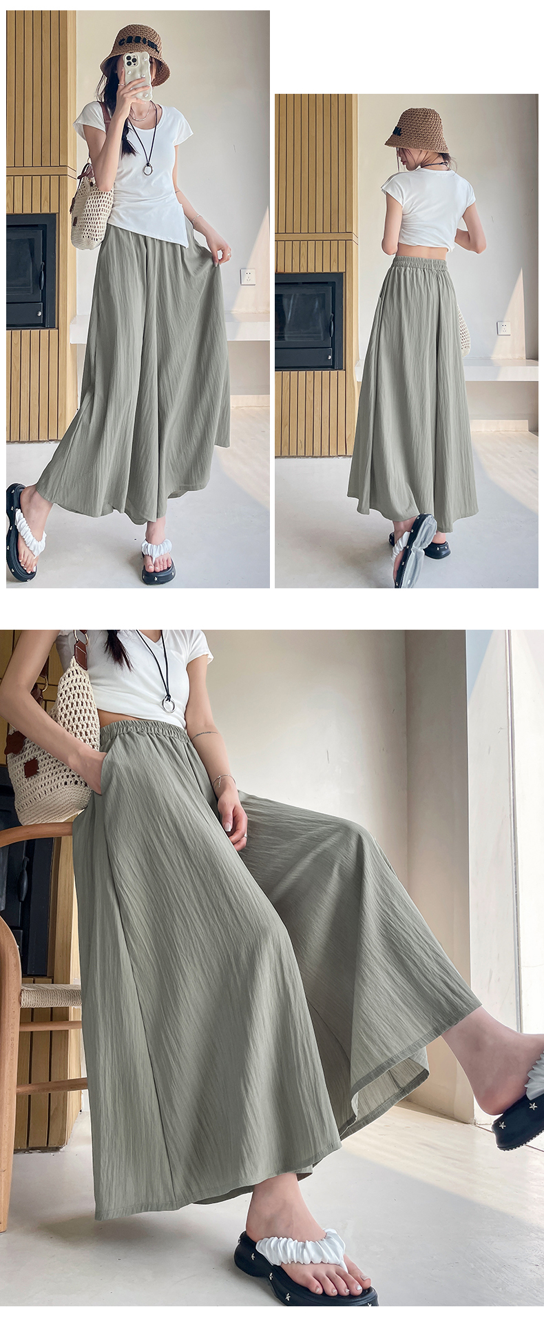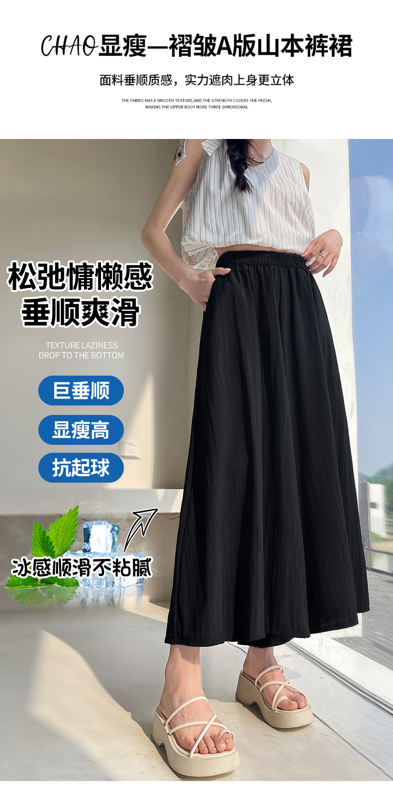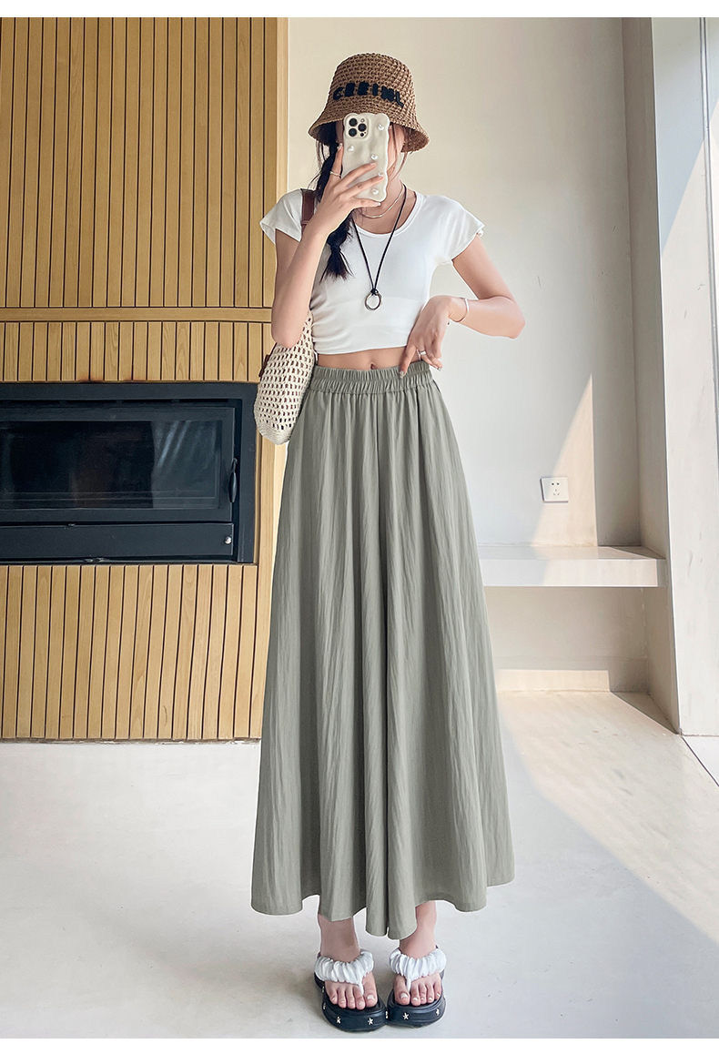RY1818# 冰丝防晒山本裙裤女夏季新款高腰垂感宽松休闲裤大阔腿亚麻凉凉裤