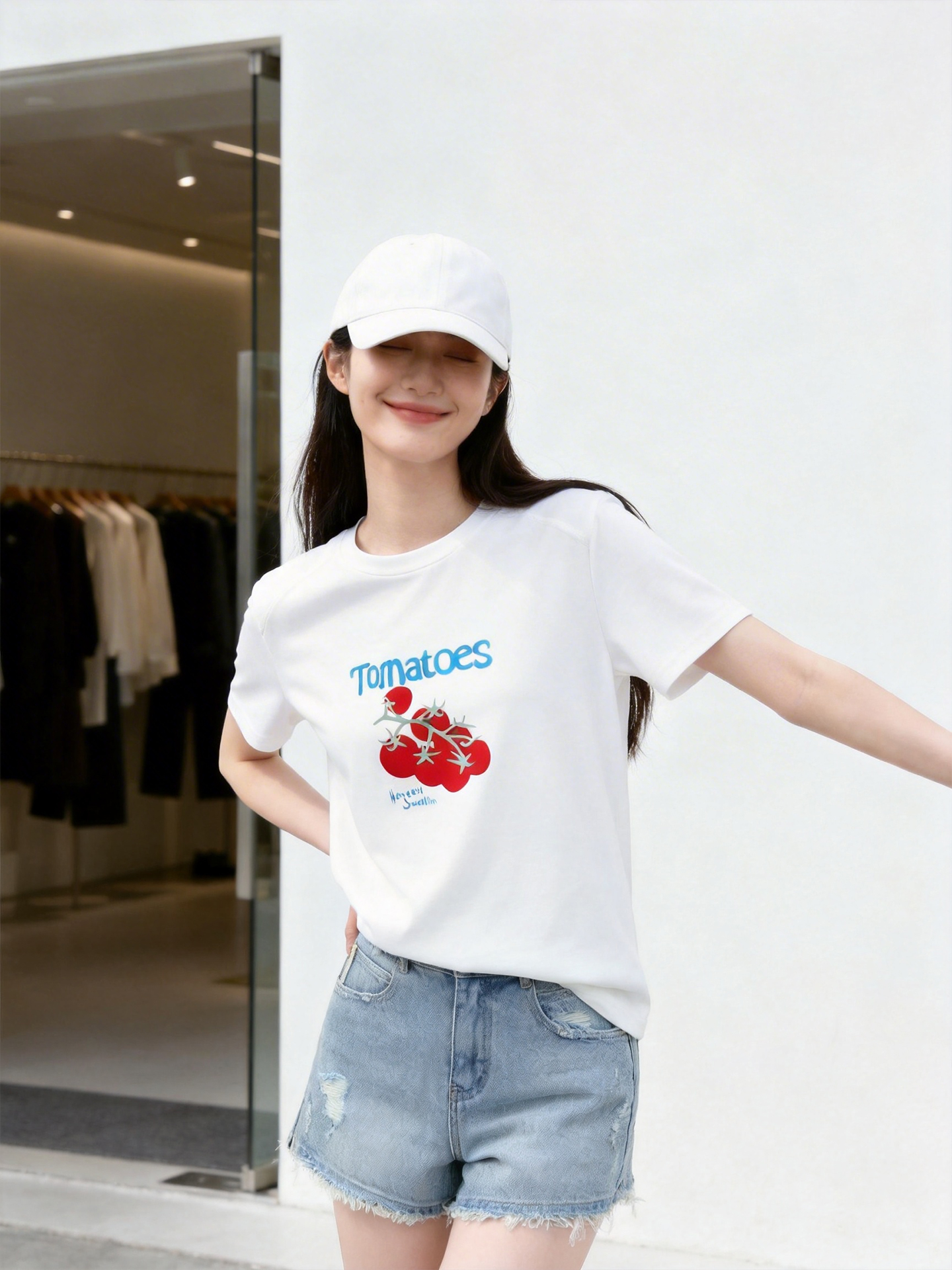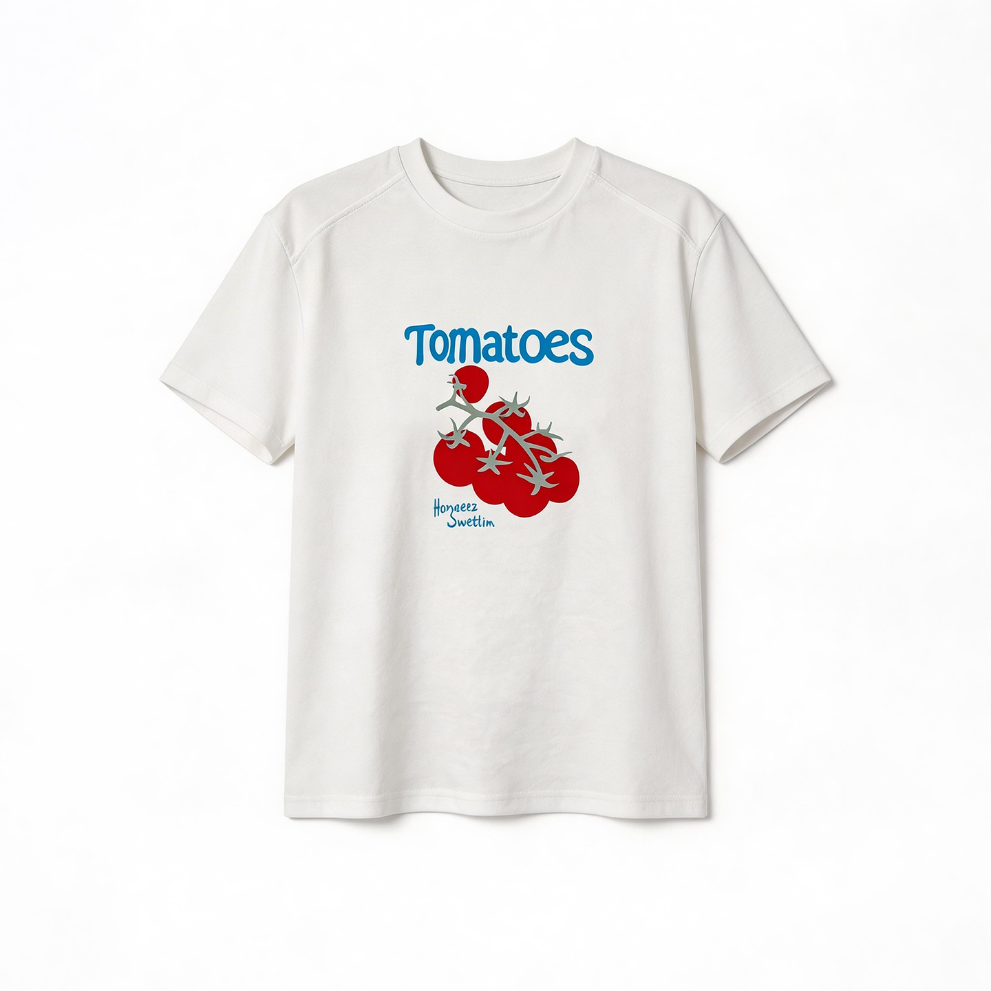 立体小番茄植绒白T恤