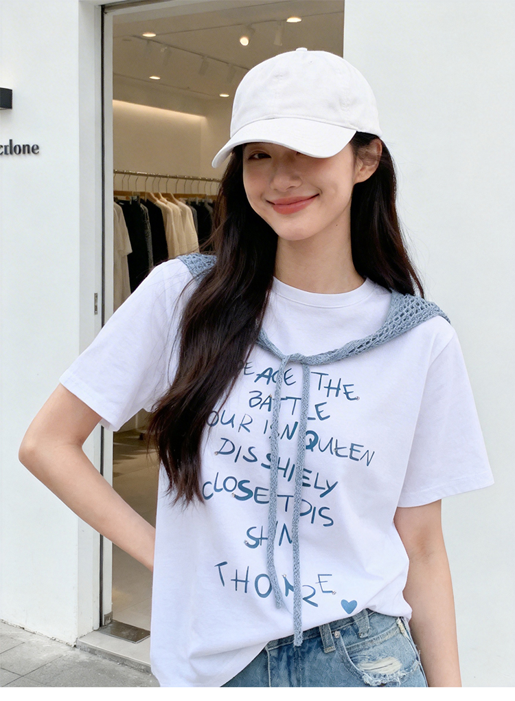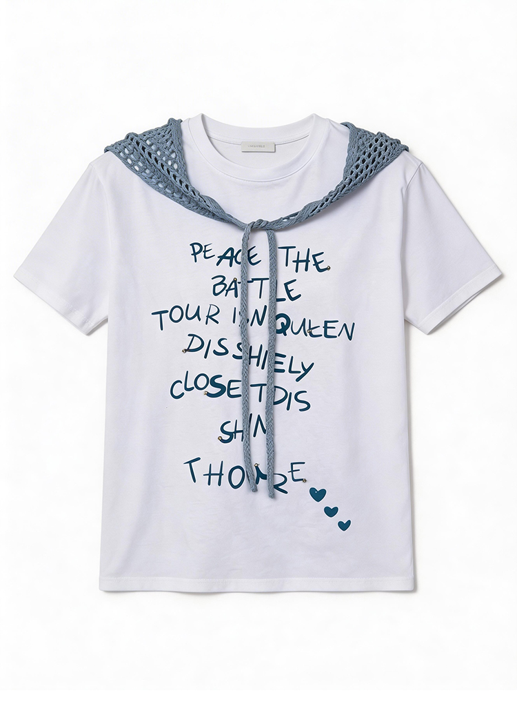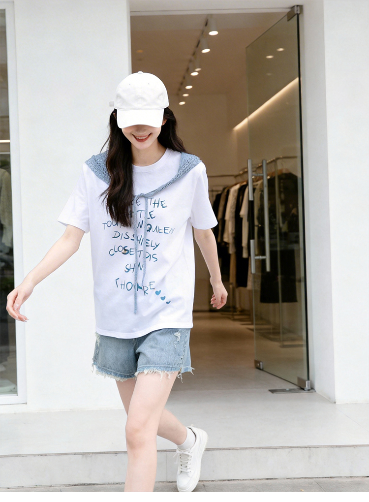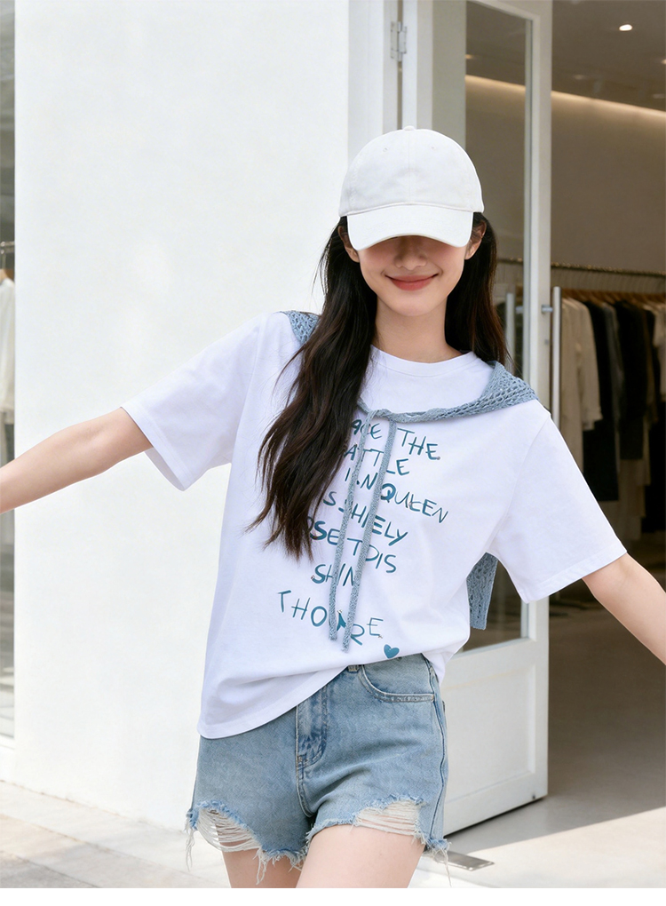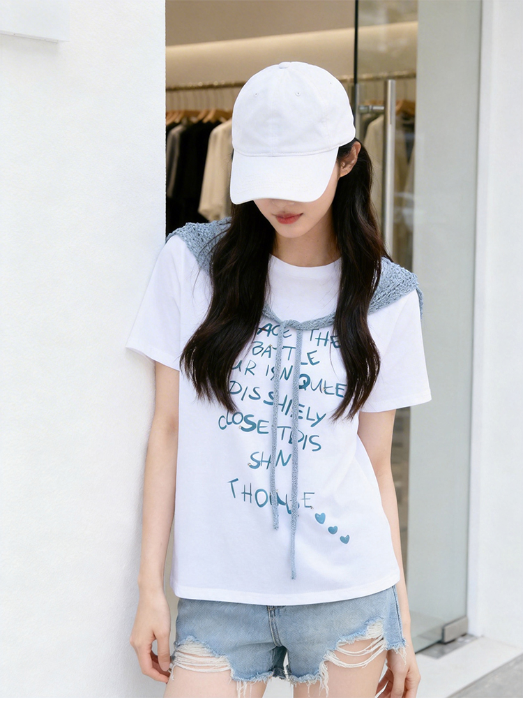 RY1825# 2026年夏季新款多巴胺穿搭短袖T恤可拆卸针织披肩设计感小众T恤女
