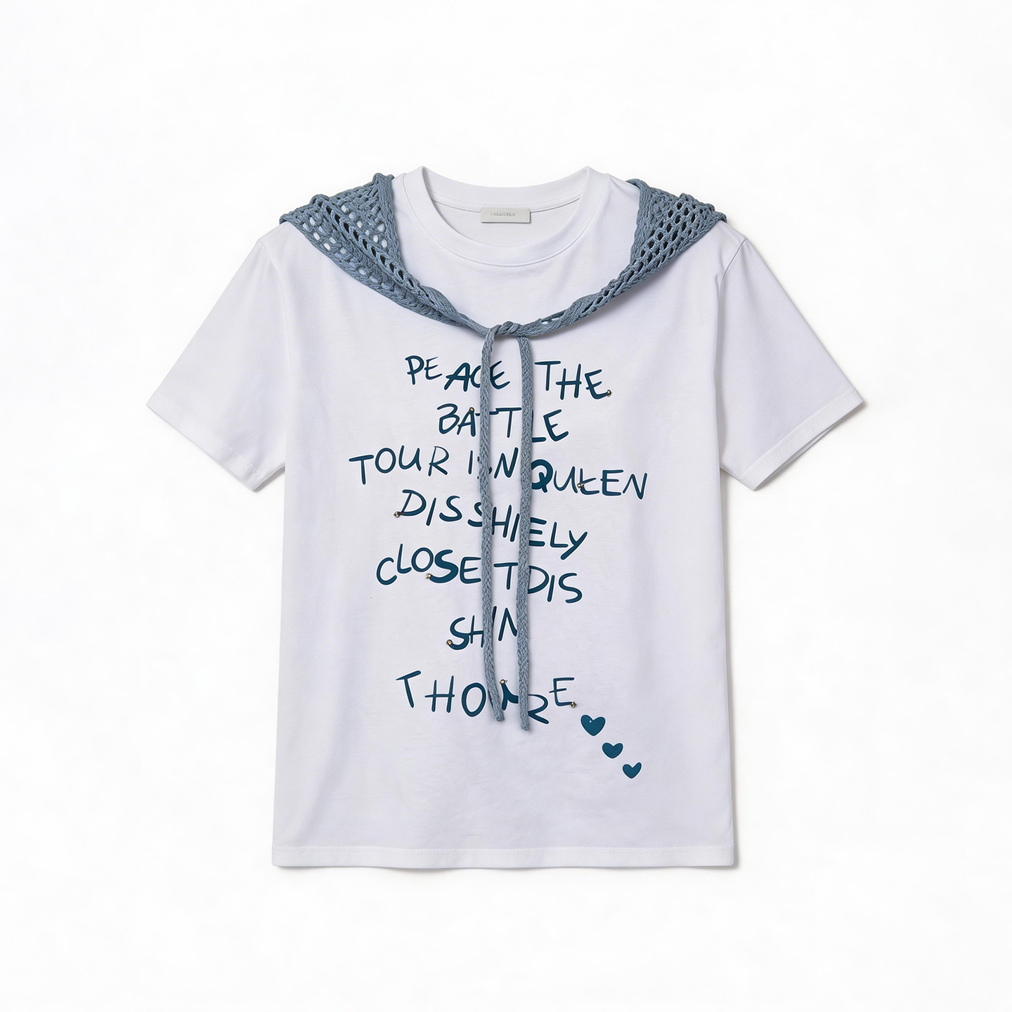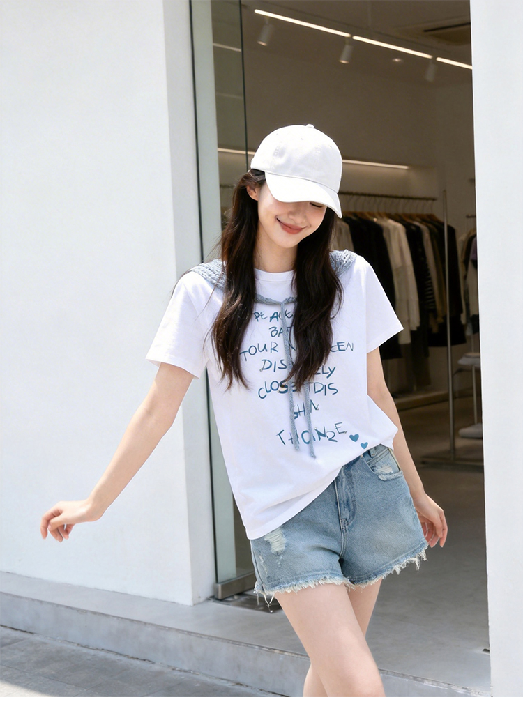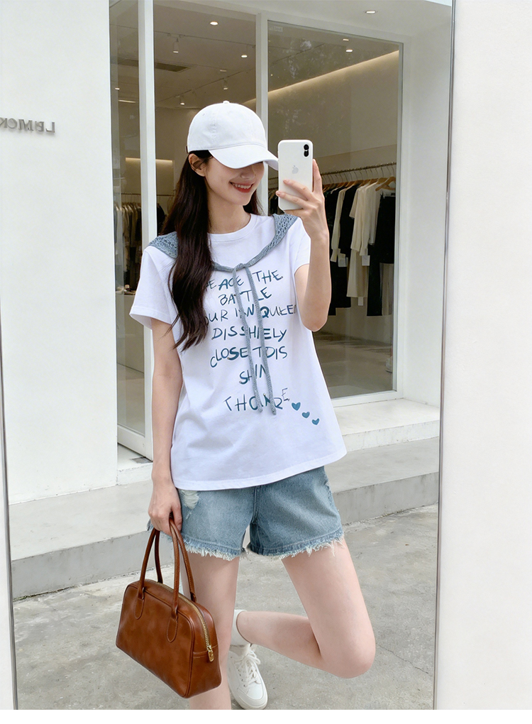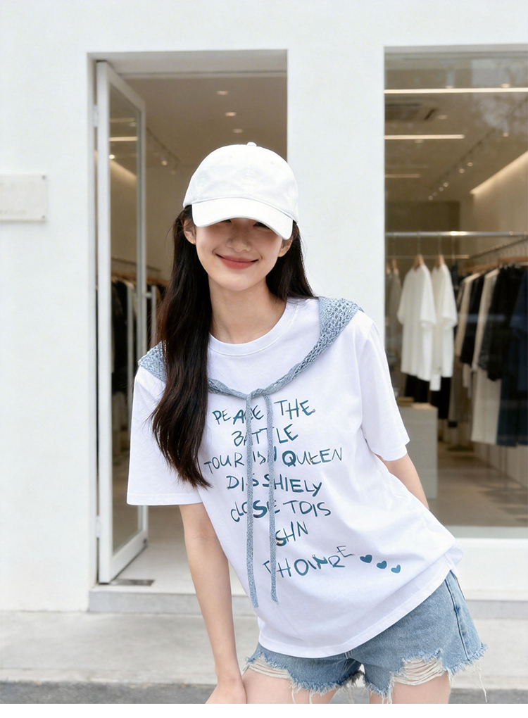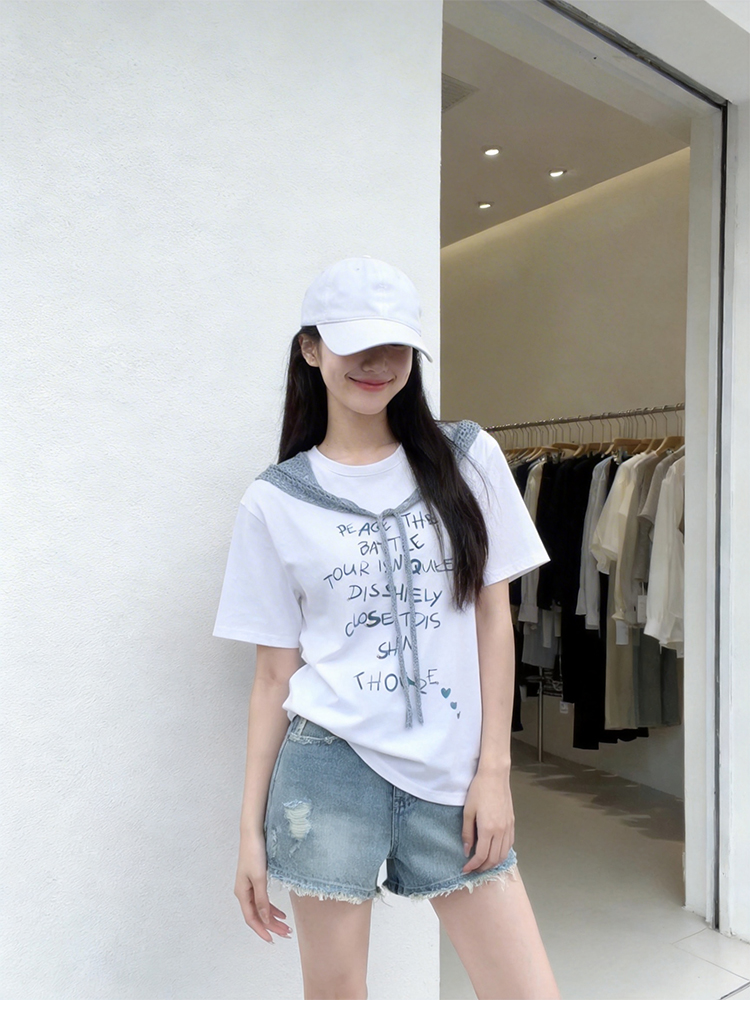RY1825# 2026年夏季新款多巴胺穿搭短袖T恤可拆卸针织披肩设计感小众T恤女