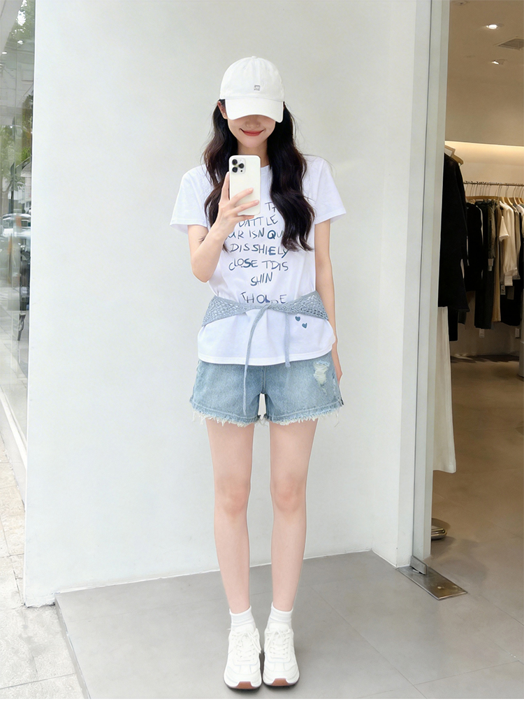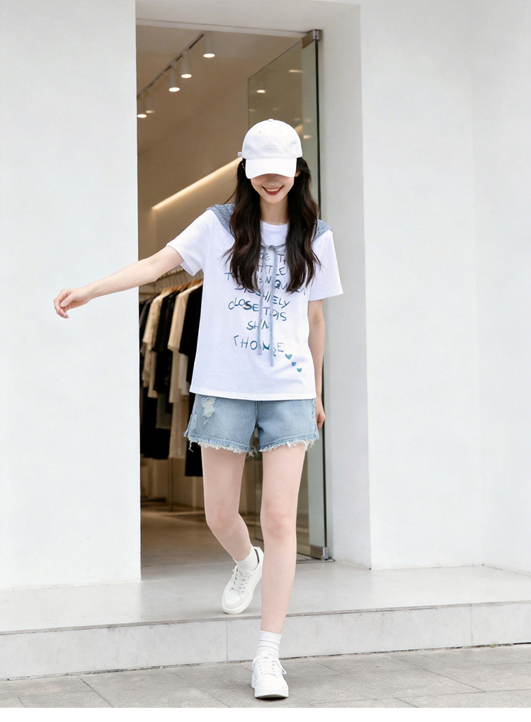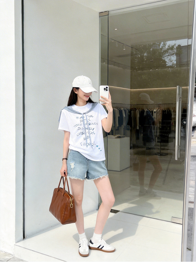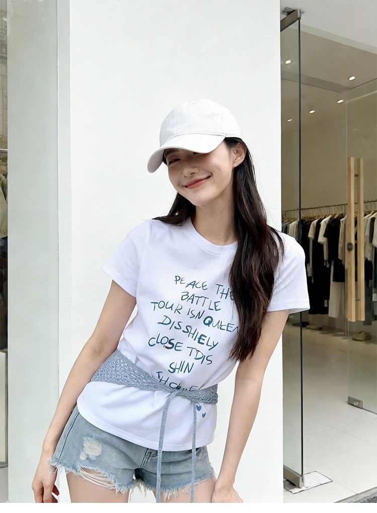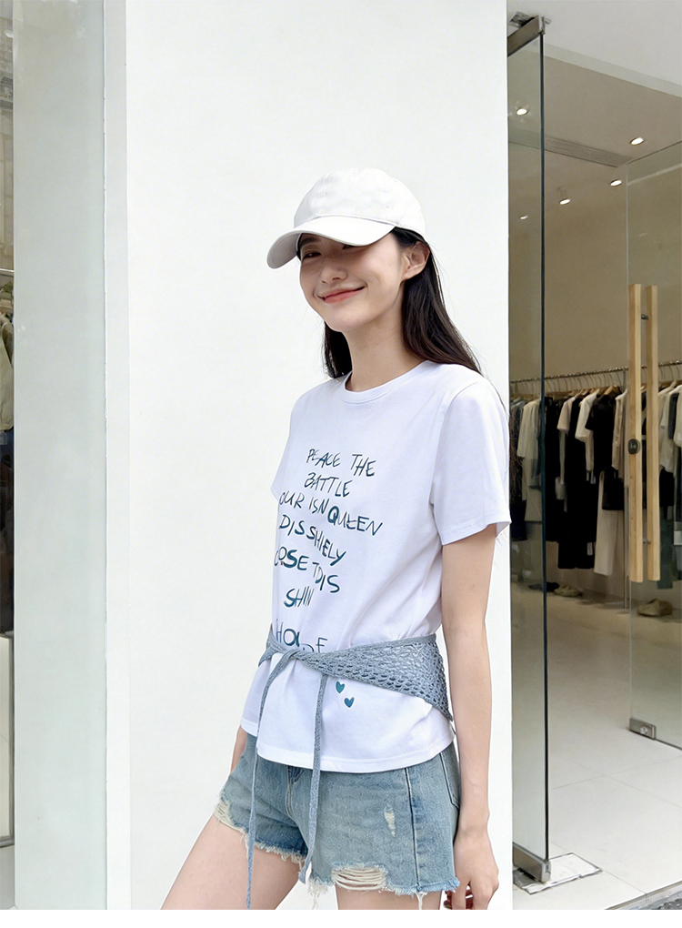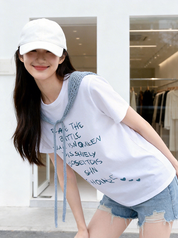 RY1824# 2026年植绒番茄印花白色T恤女夏 多巴胺撞色软糯亲肤宽松...