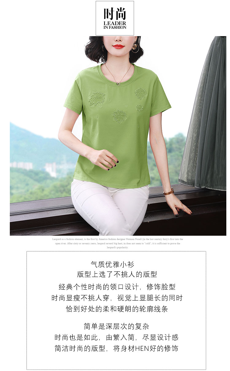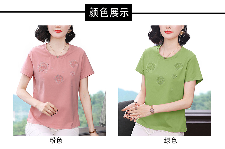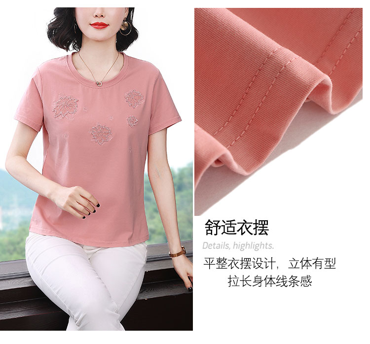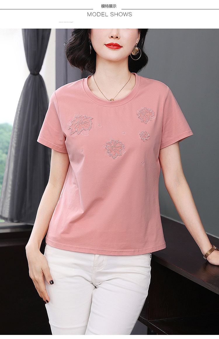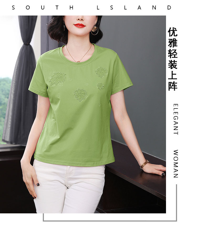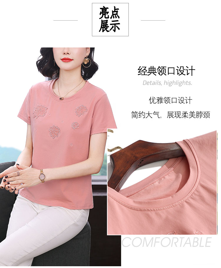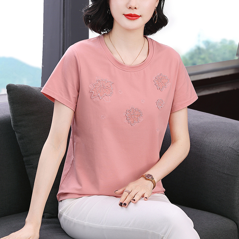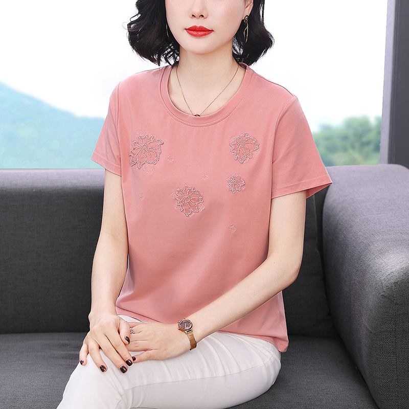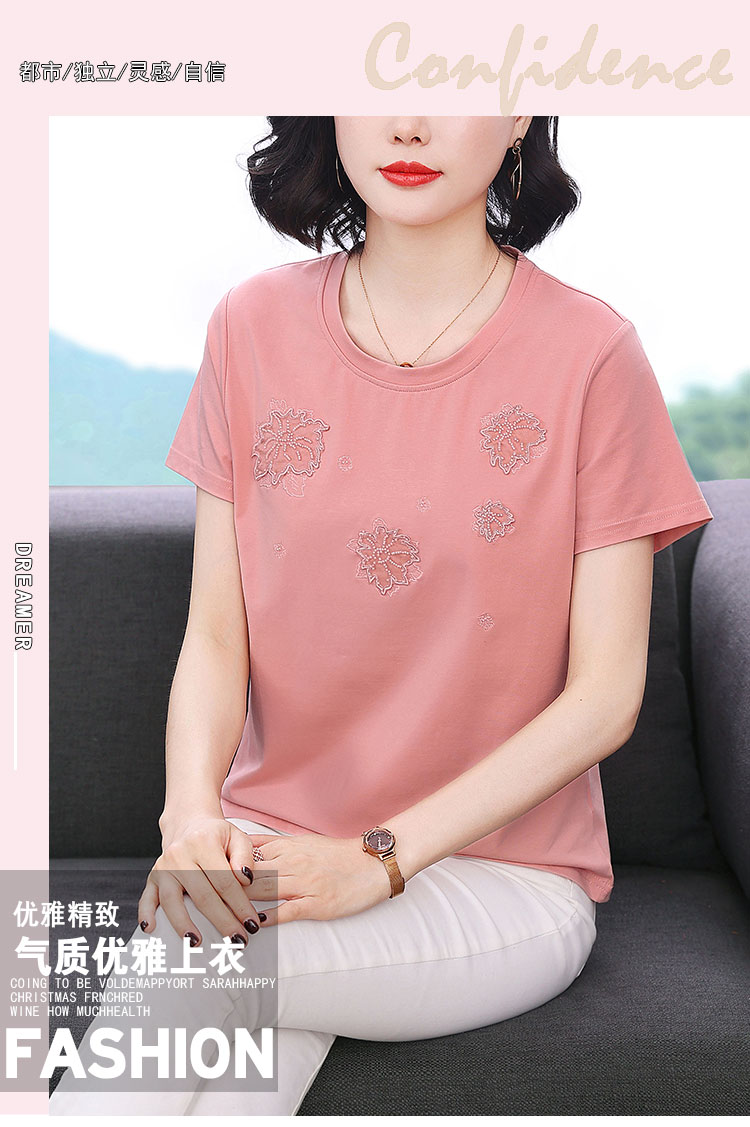 RY1833# 纯棉刺绣夏款t恤女2026新款中年妈妈大码女装短袖上衣气质体恤