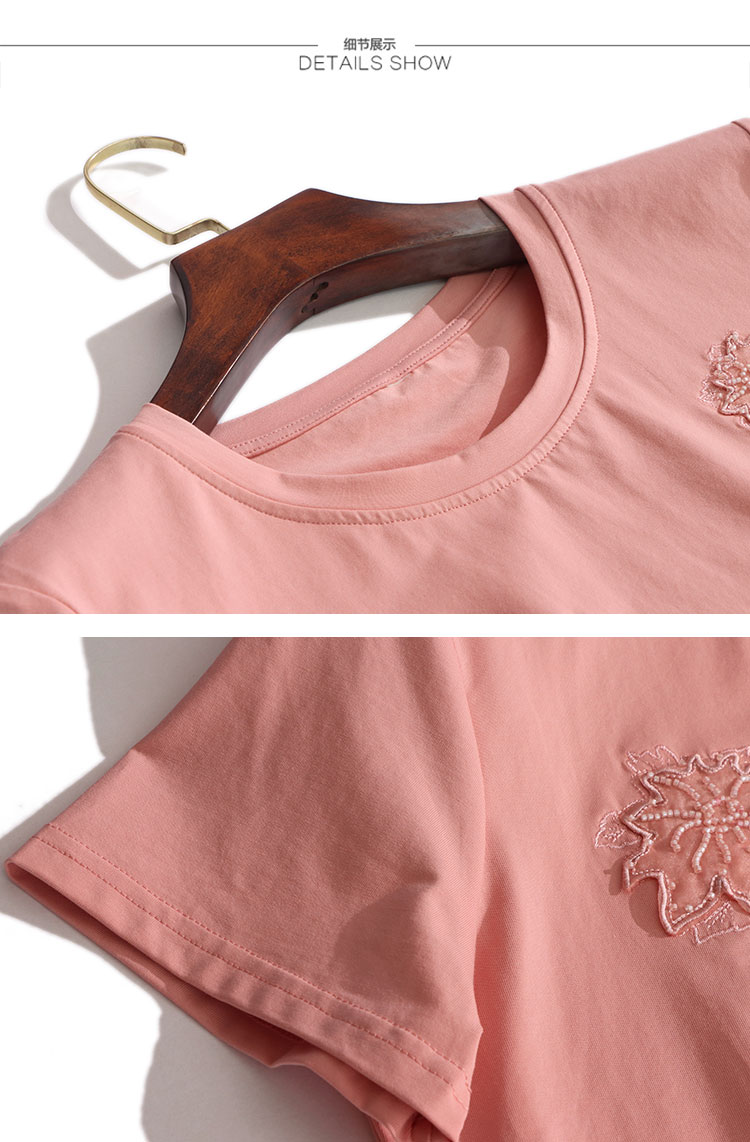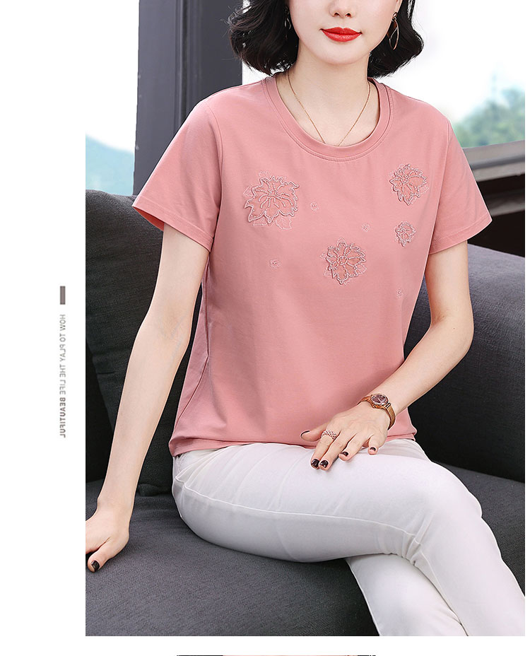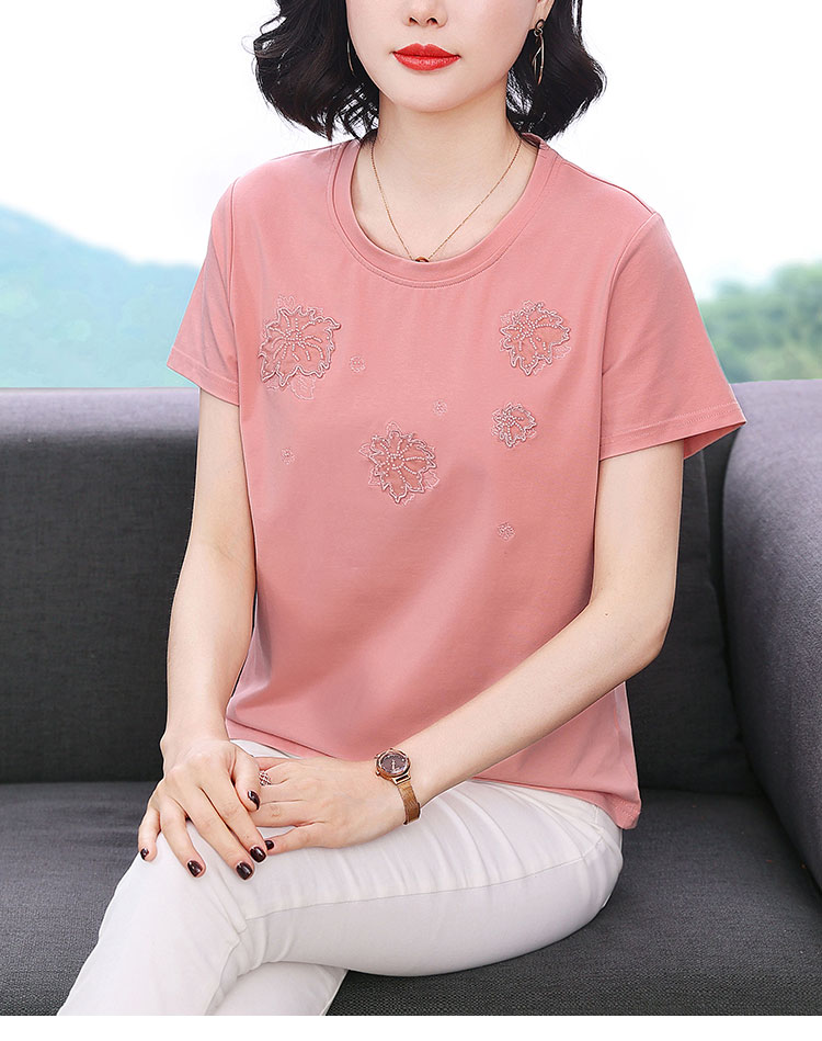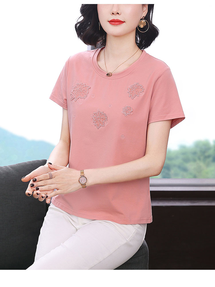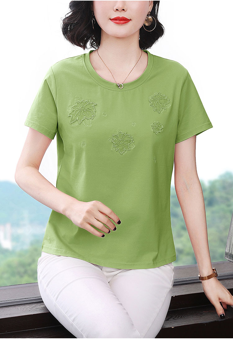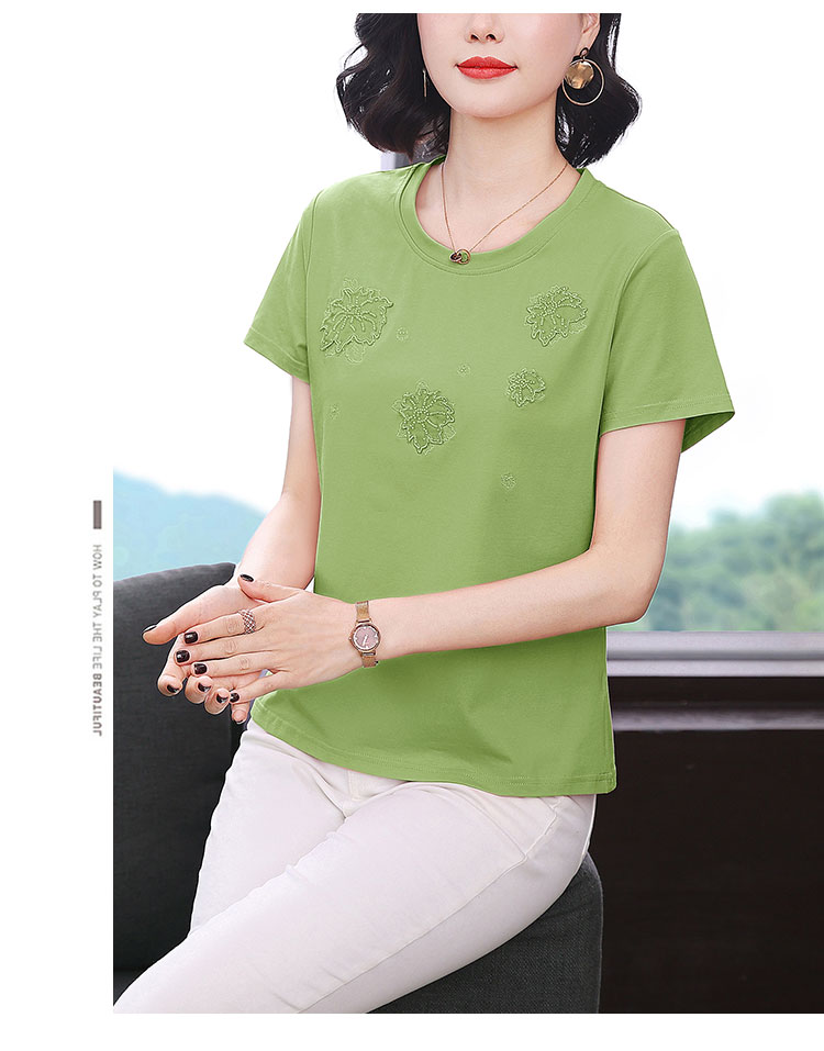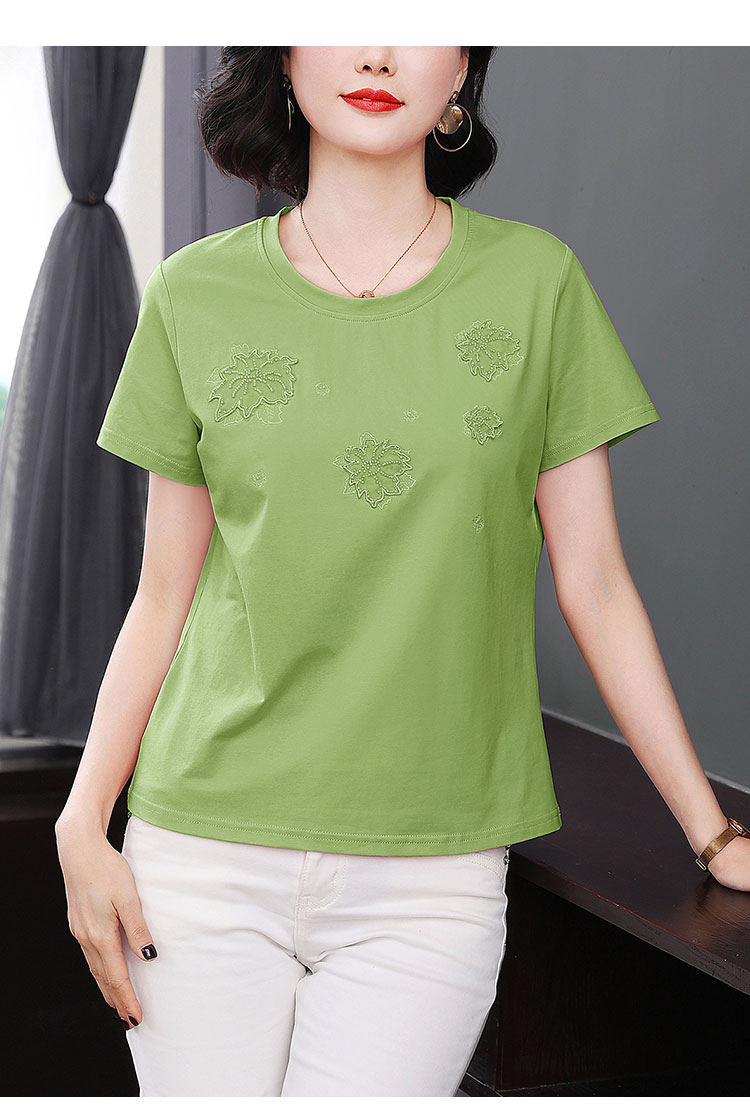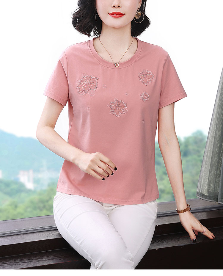 RY1833# 纯棉刺绣夏款t恤女2026新款中年妈妈大码女装短袖上衣气质体恤