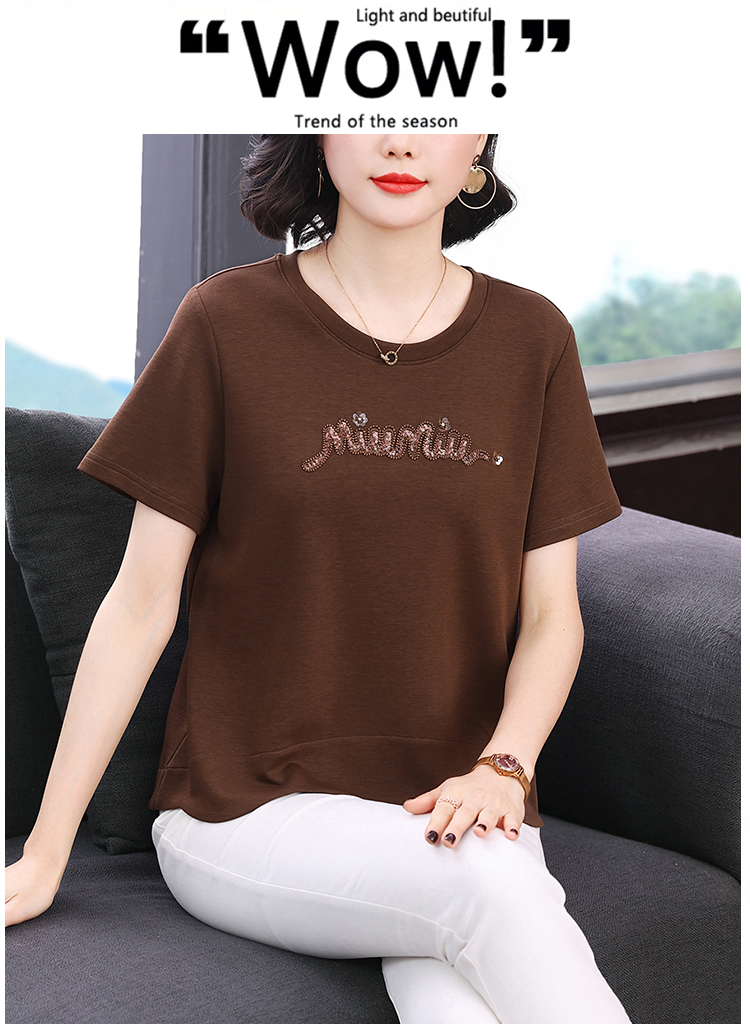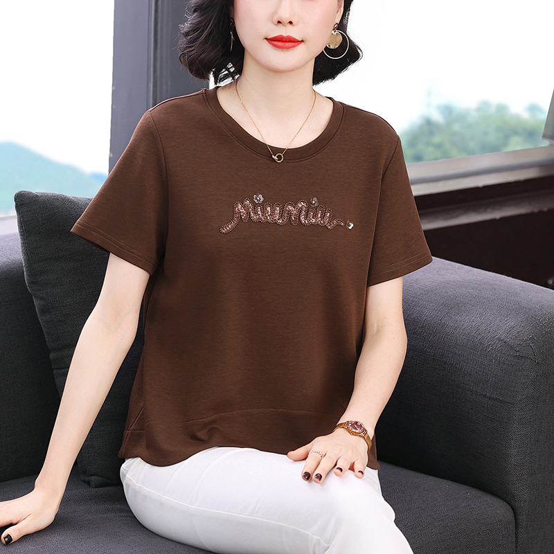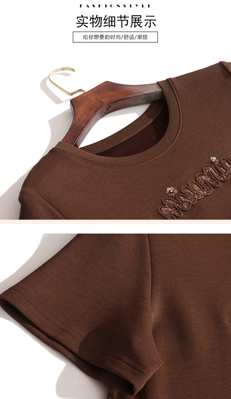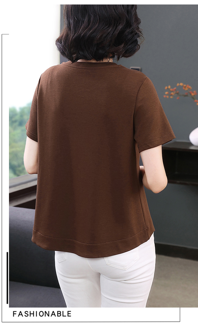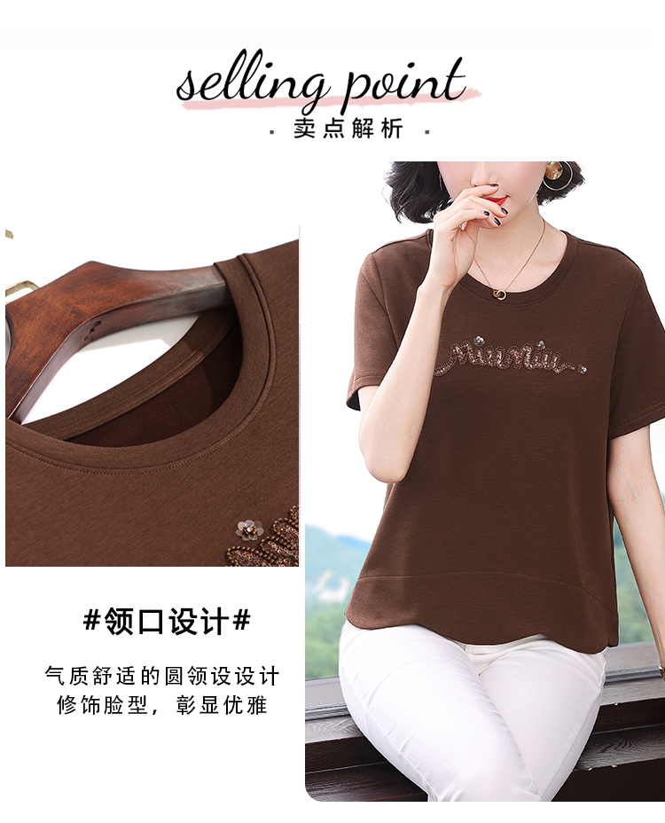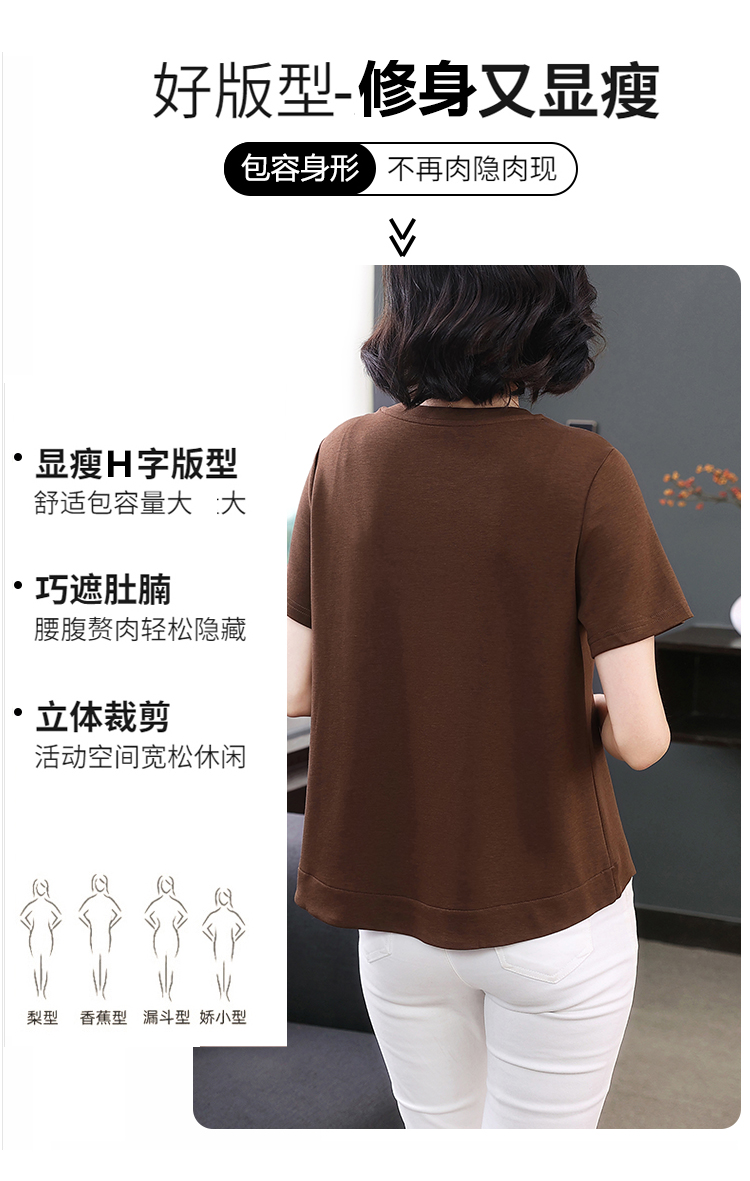 RY1834# 时尚重工刺绣短袖T恤女夏2026新款妈妈装宽松遮肚休闲半袖上衣
