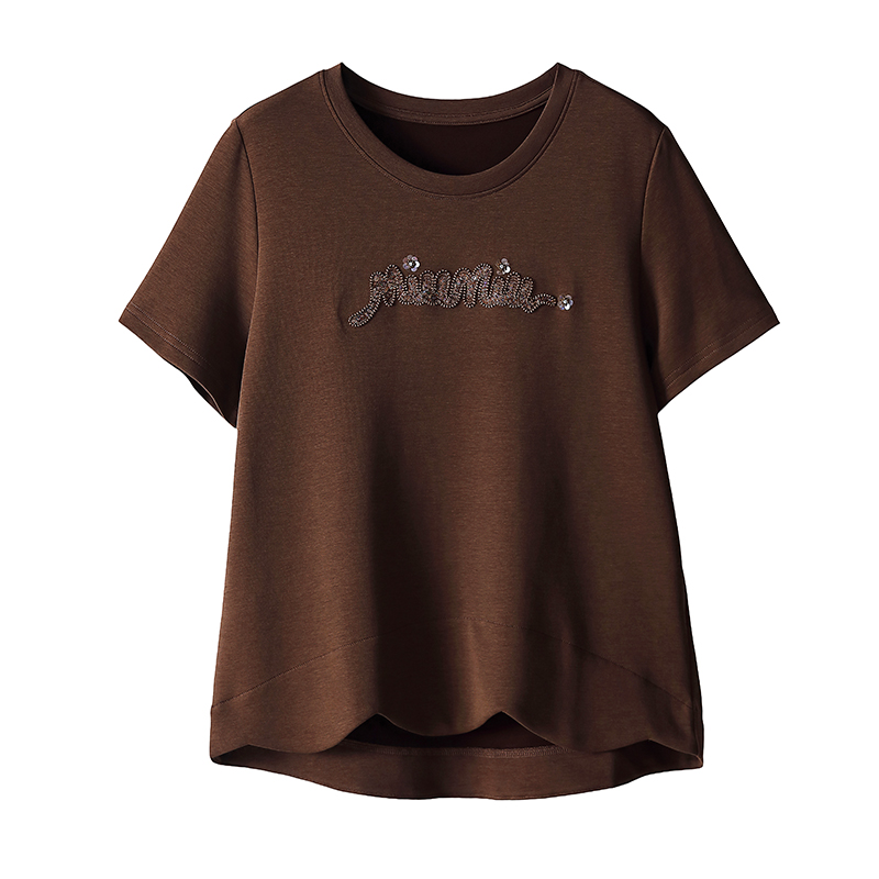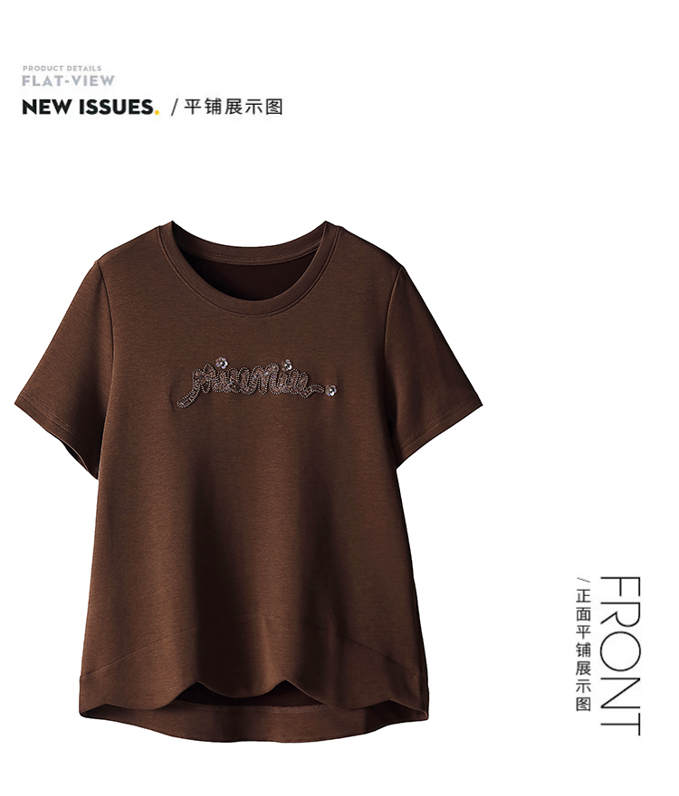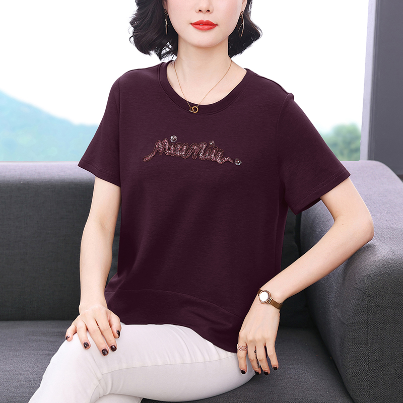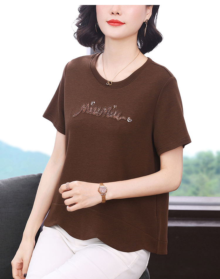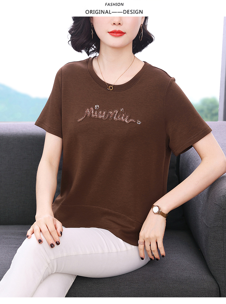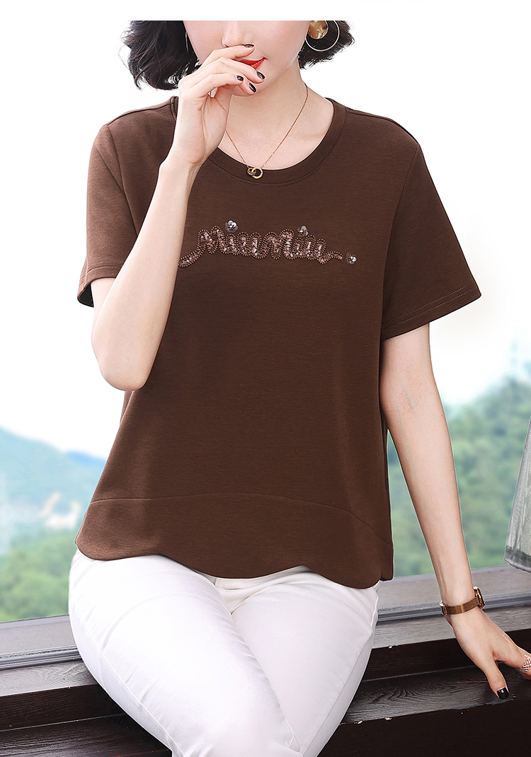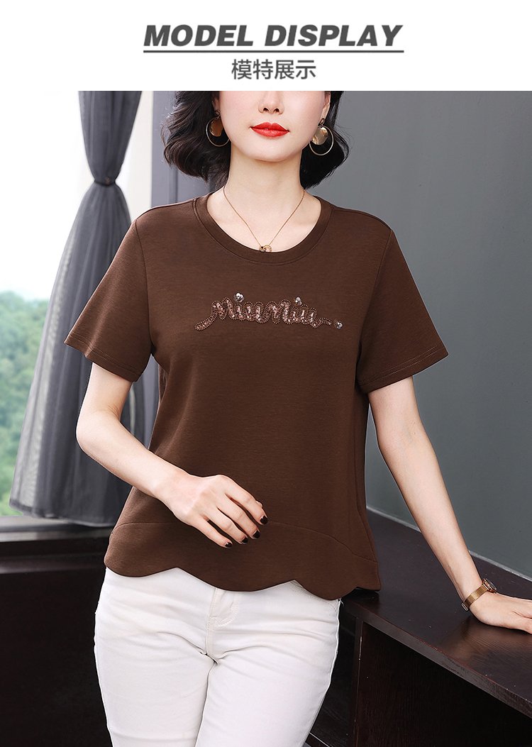 RY1834# 时尚重工刺绣短袖T恤女夏2026新款妈妈装宽松遮肚休闲半袖上衣