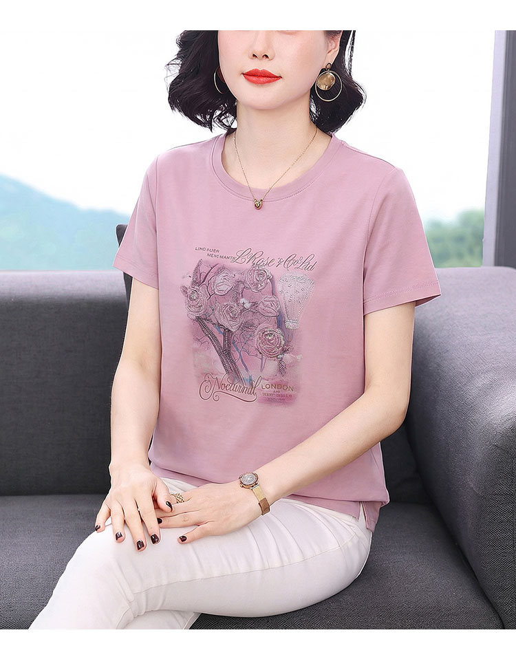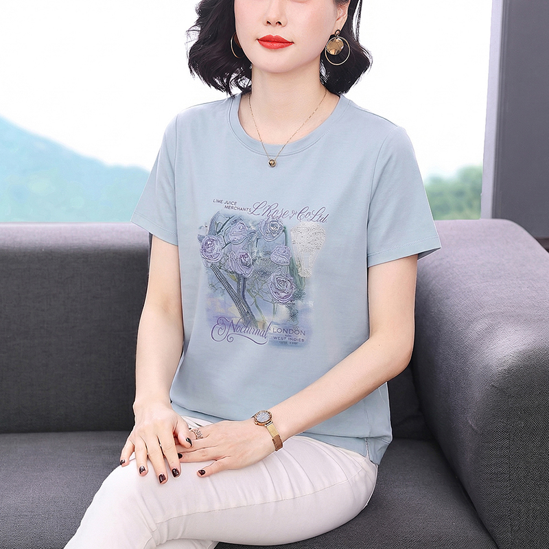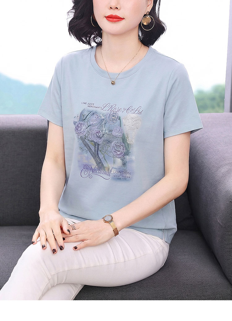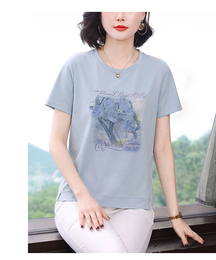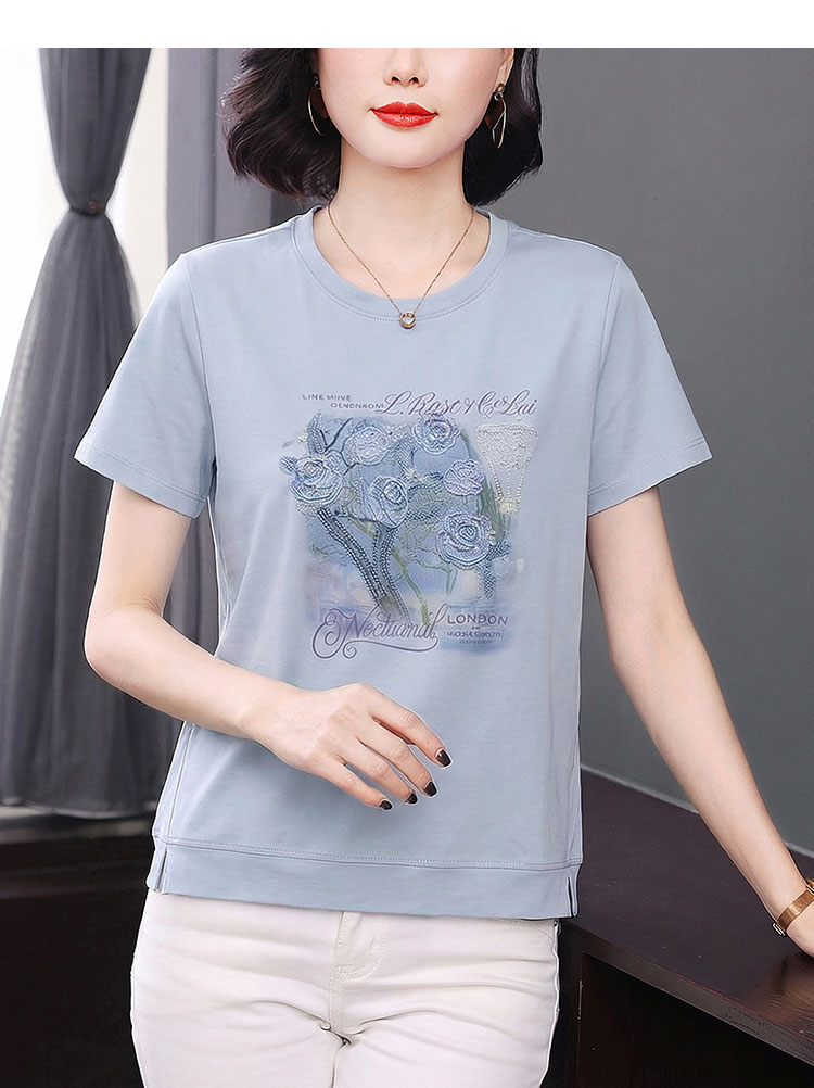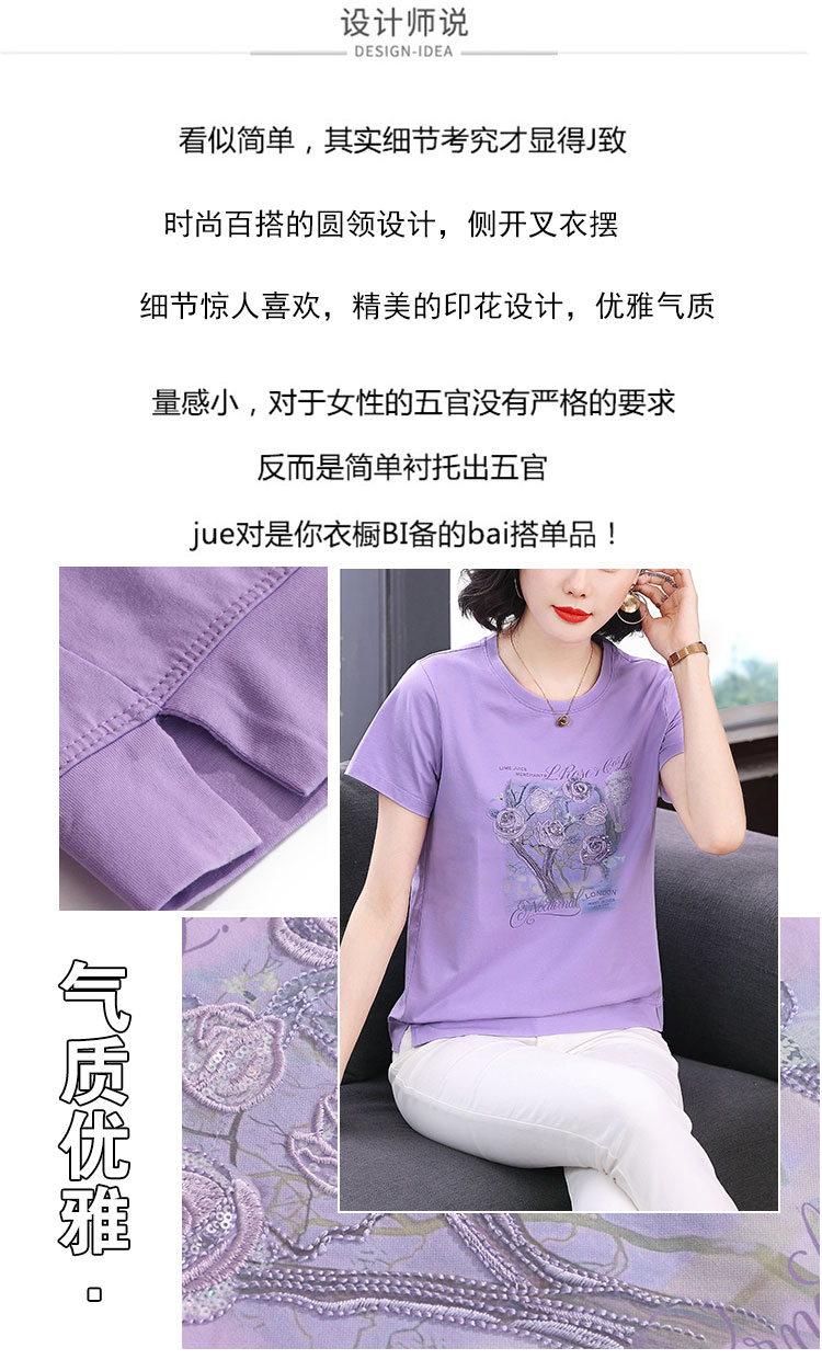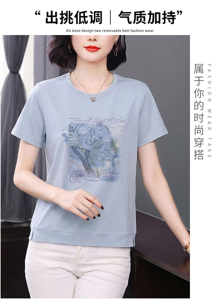 RY1835# 精致工艺刺绣花短袖T恤女2026新款夏季精品大码女装纯棉显瘦上衣