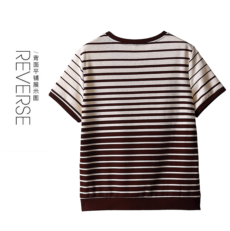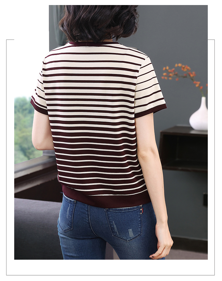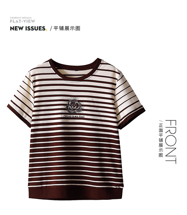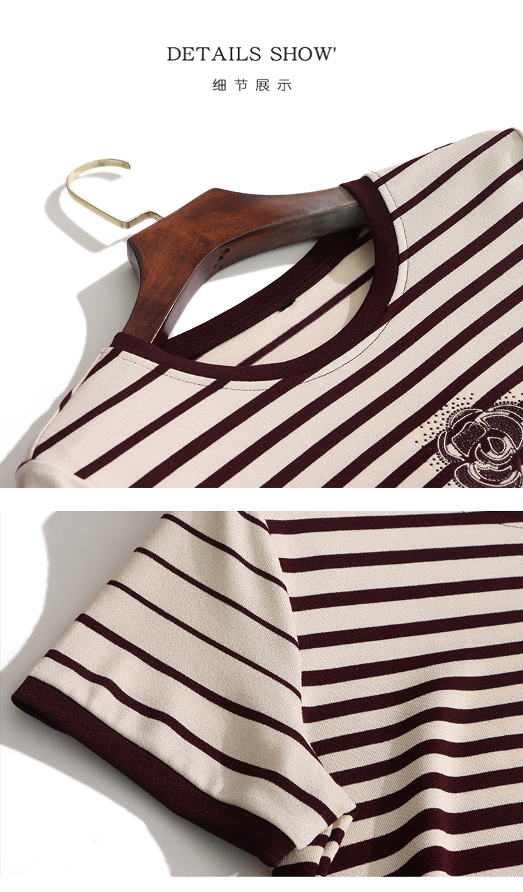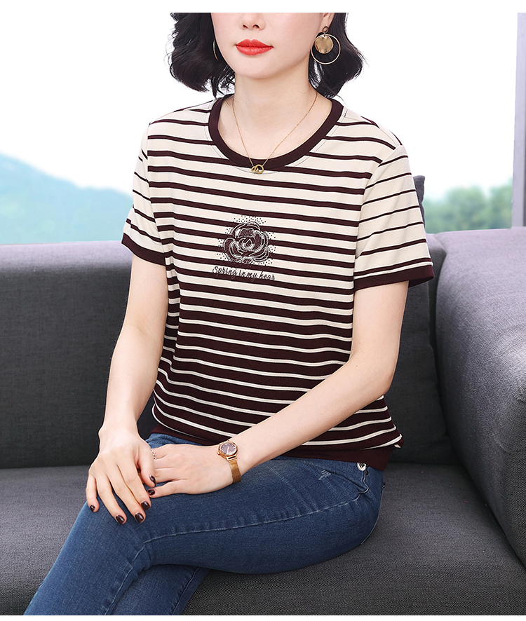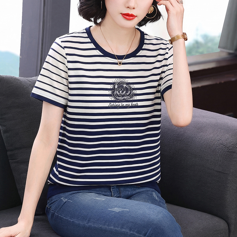 RY1836# 条纹短袖T恤女夏装2025新款洋气中年妈妈上衣宽松藏肉大码体恤衫