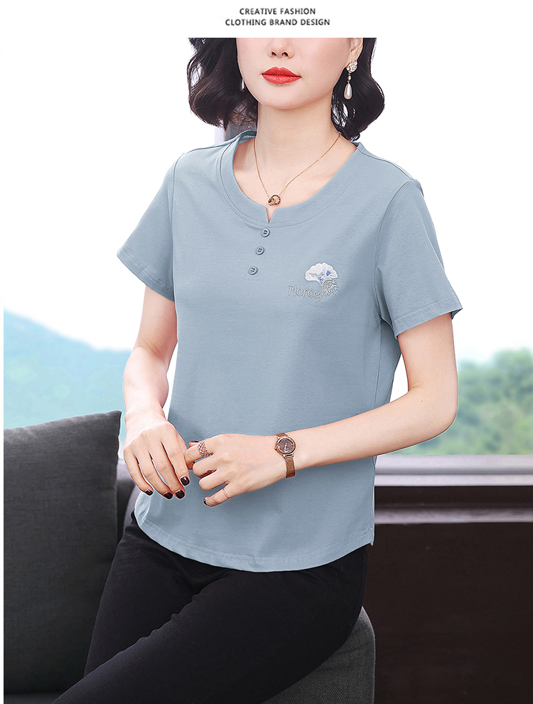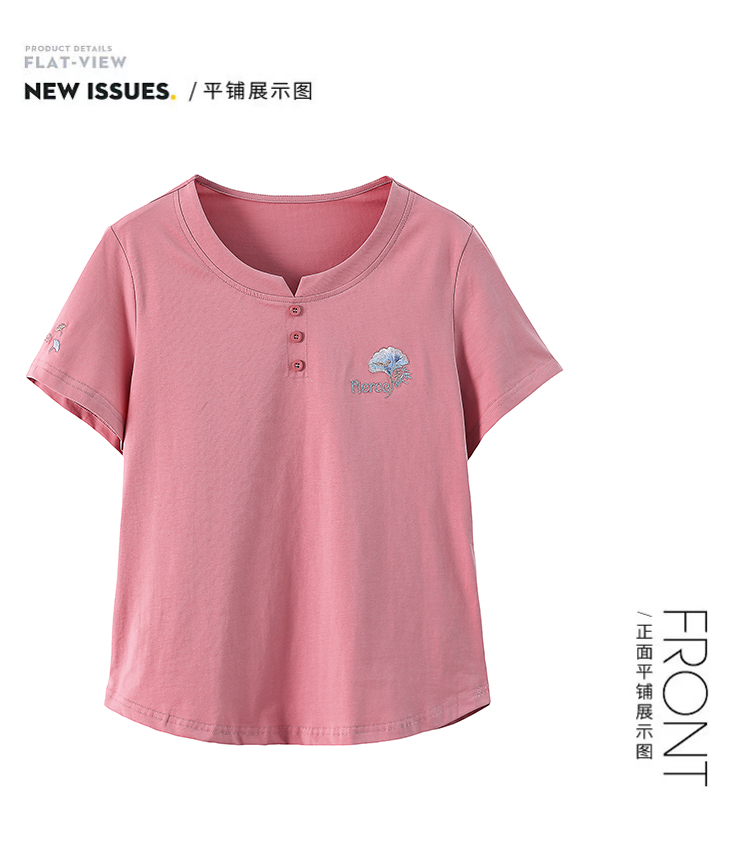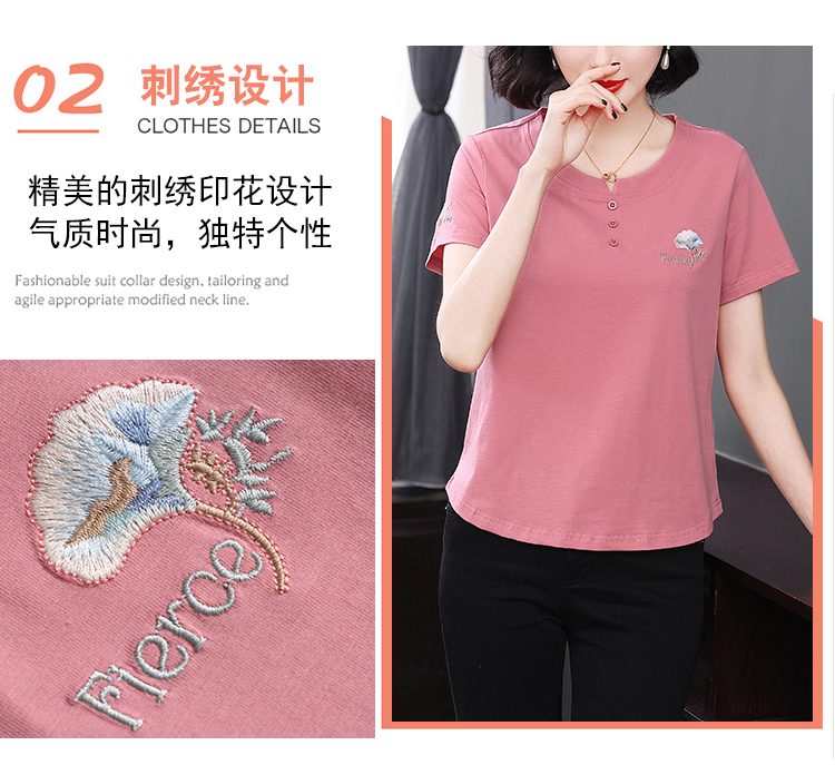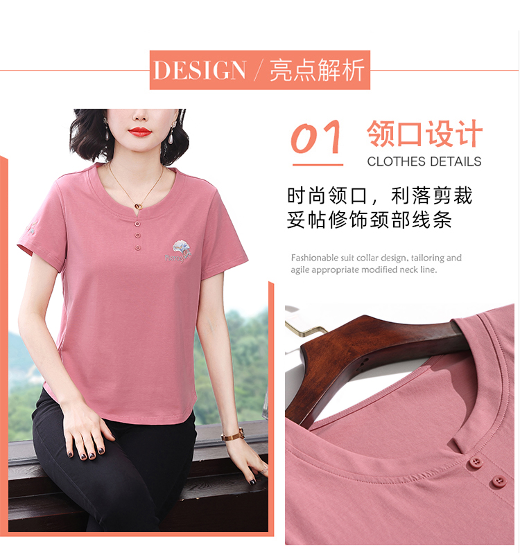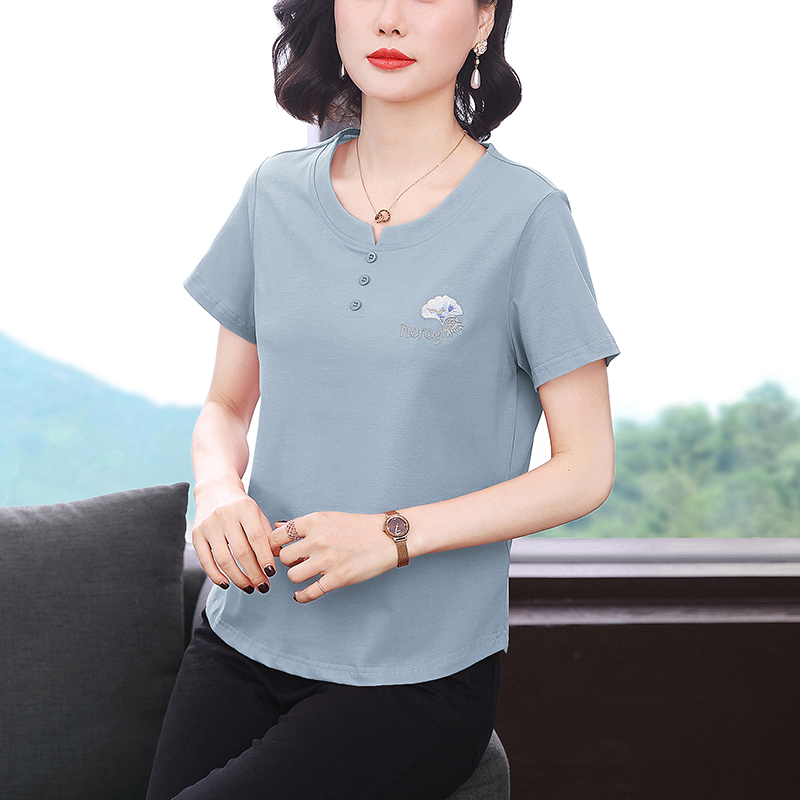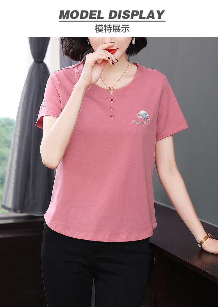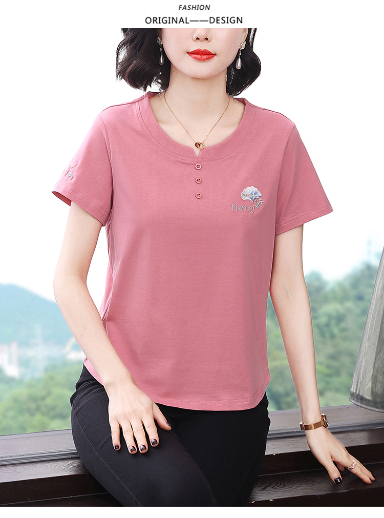 RY1839# 短袖T恤女纯棉刺绣宽松上衣2026新款中年妈妈装洋气大码体恤