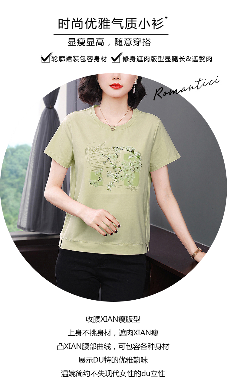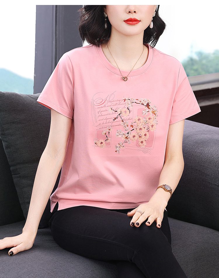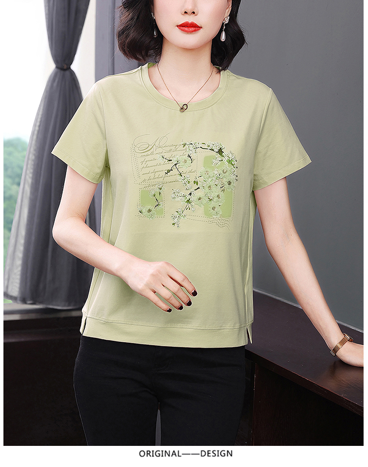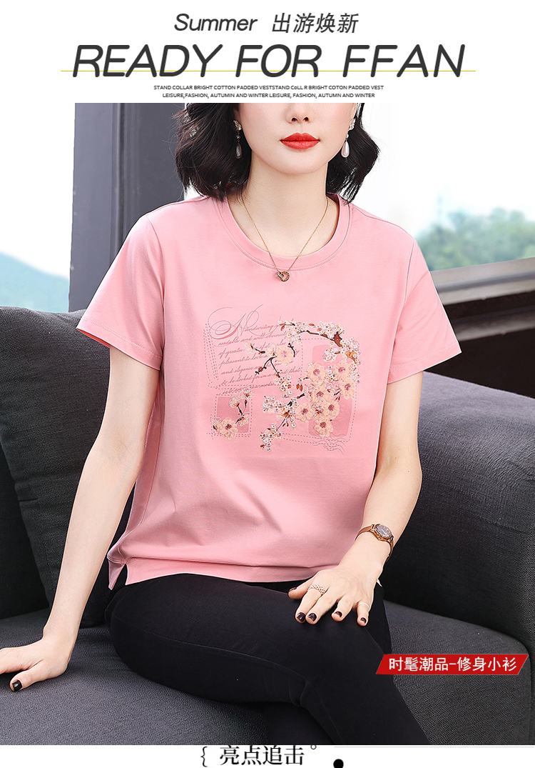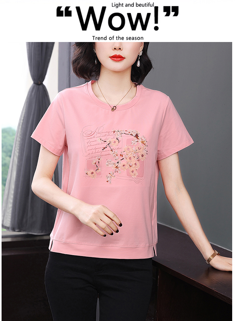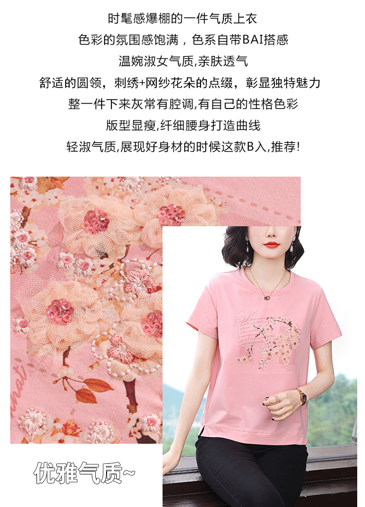 RY1840# 立体绣花T恤女夏装超仙纯棉减龄短袖上衣显瘦体恤衫