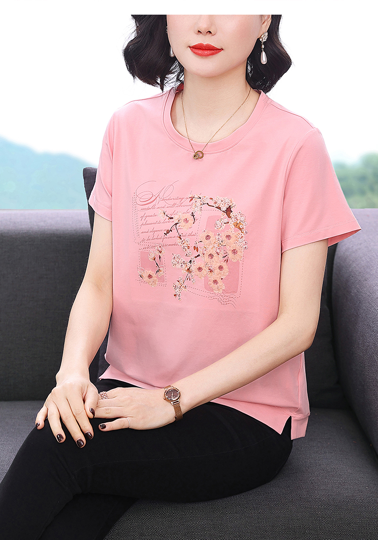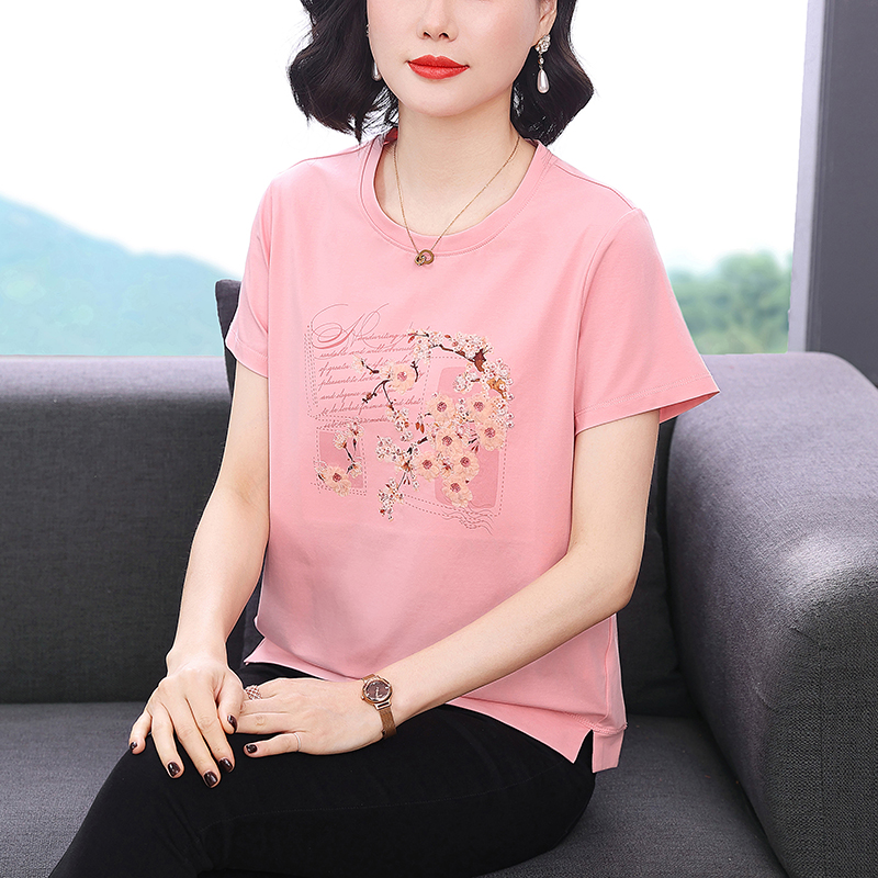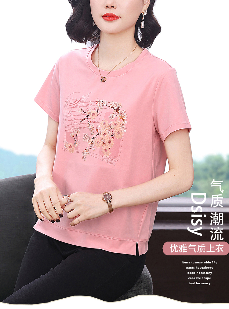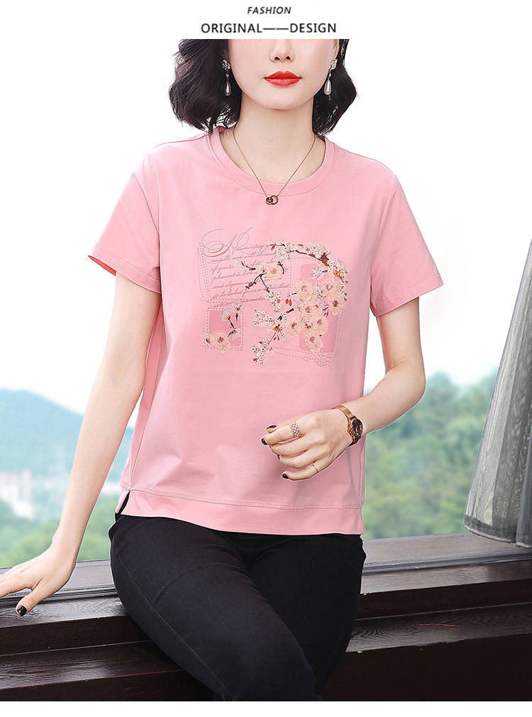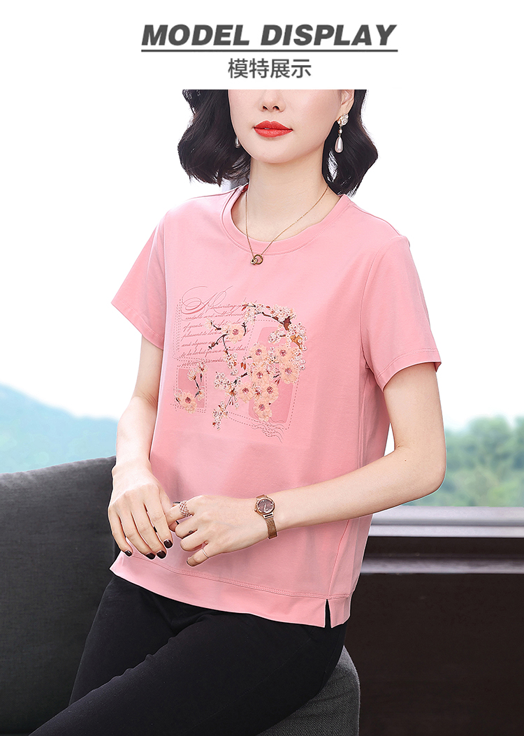 RY1840# 立体绣花T恤女夏装超仙纯棉减龄短袖上衣显瘦体恤衫