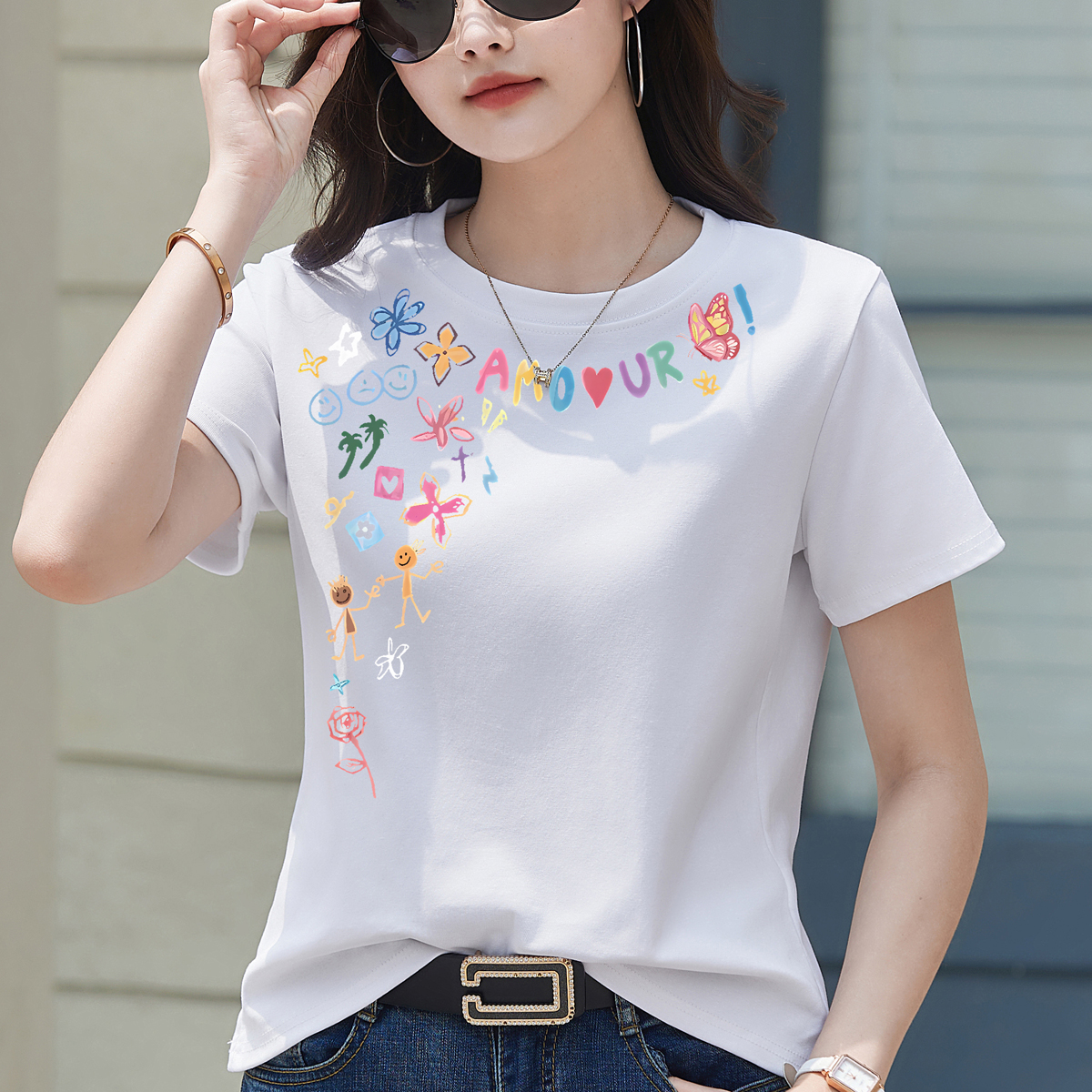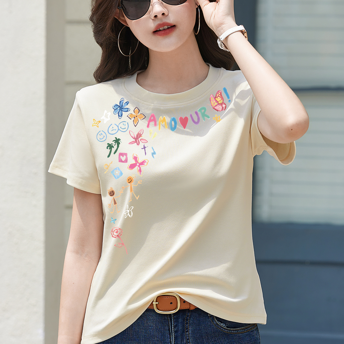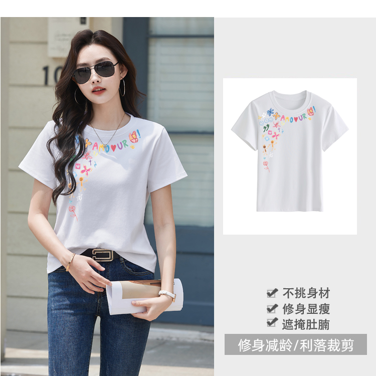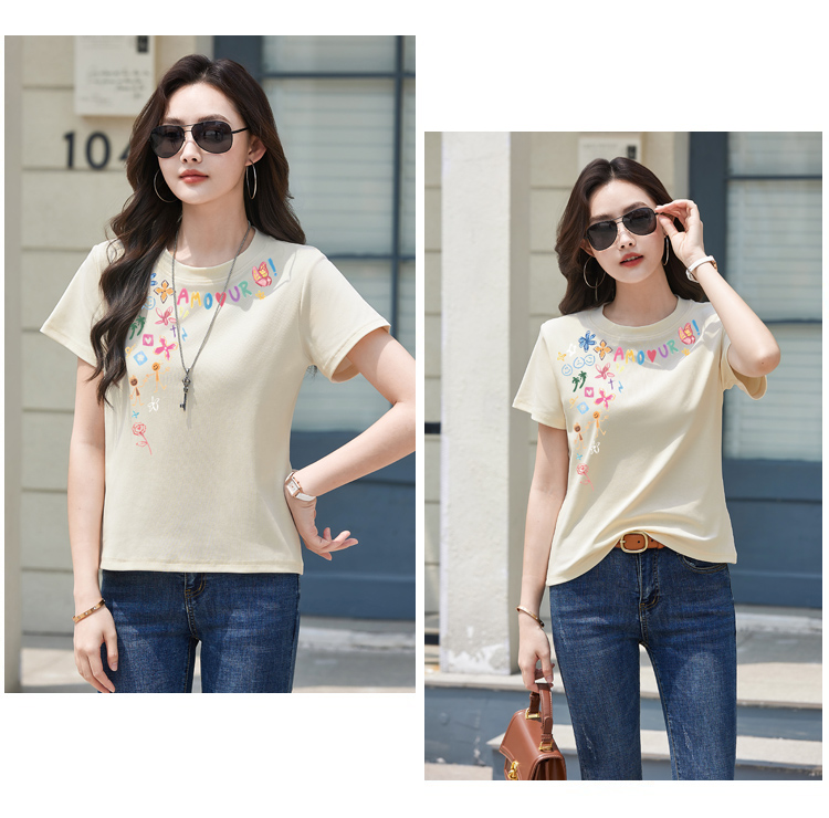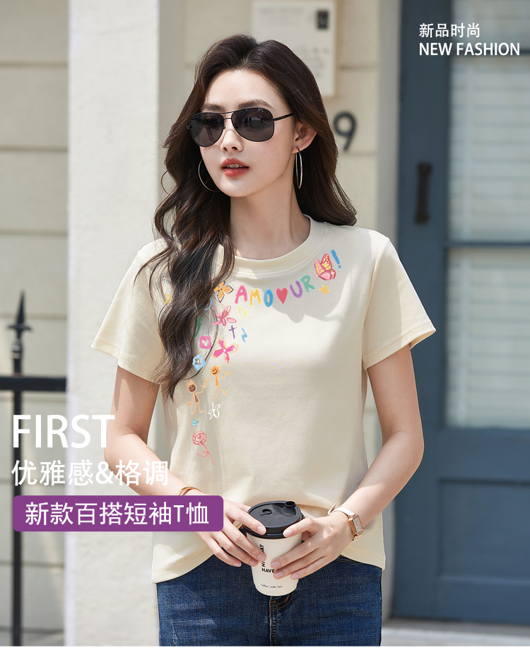 RY1858# 正肩圆领短袖T恤女夏季内搭打底衫宽松显瘦简约百搭体恤大码上衣