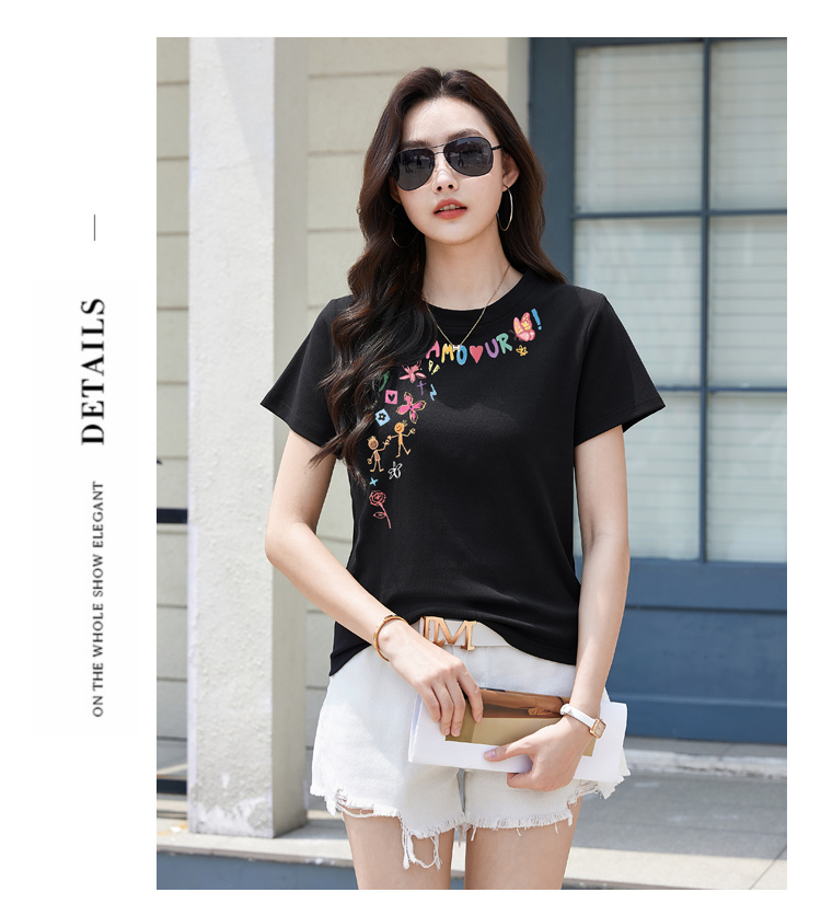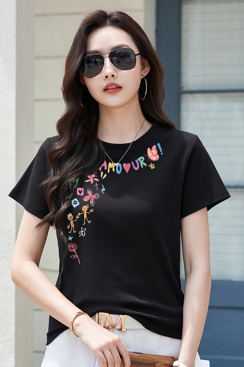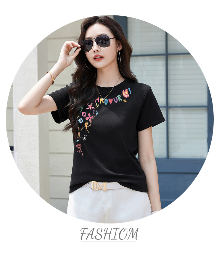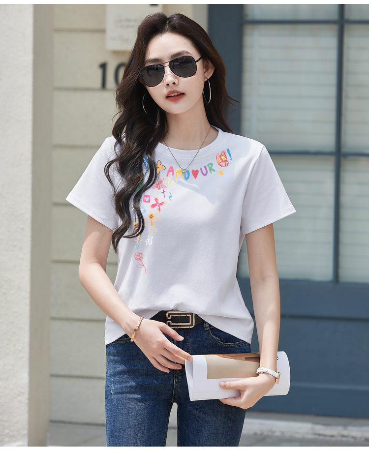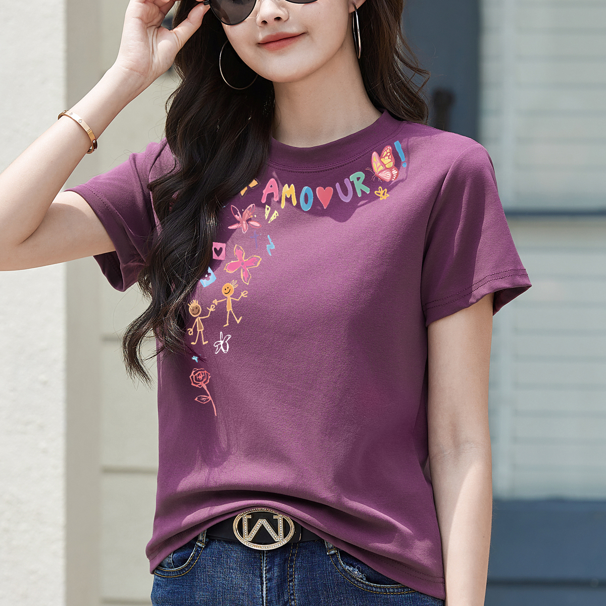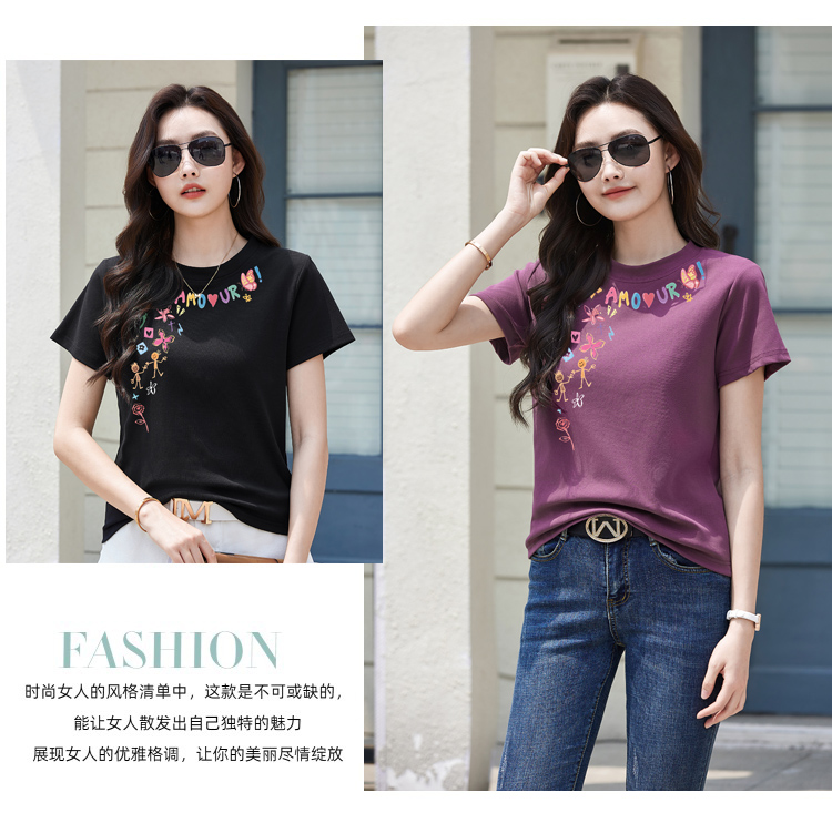 RY1858# 正肩圆领短袖T恤女夏季内搭打底衫宽松显瘦简约百搭体恤大码上衣