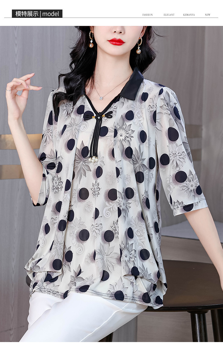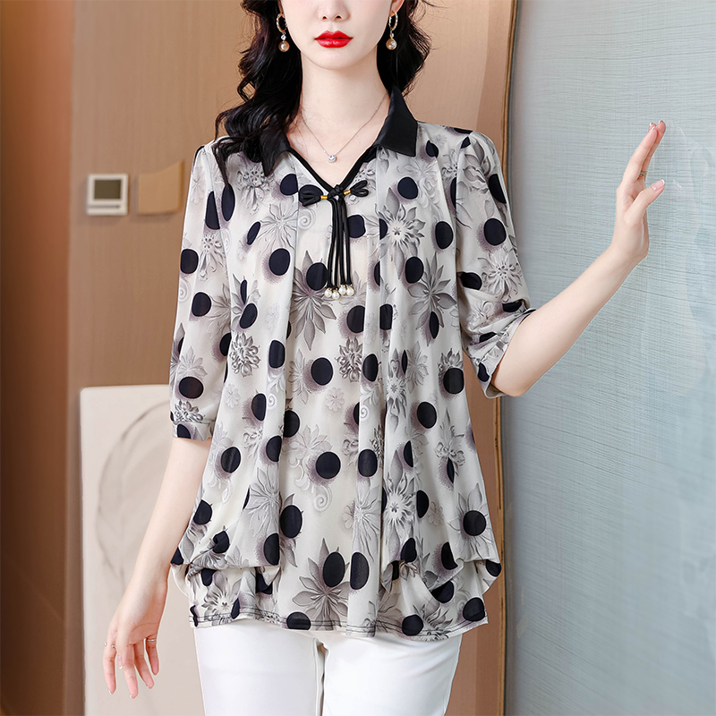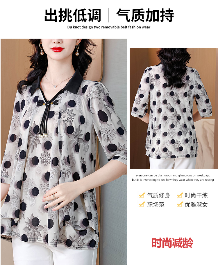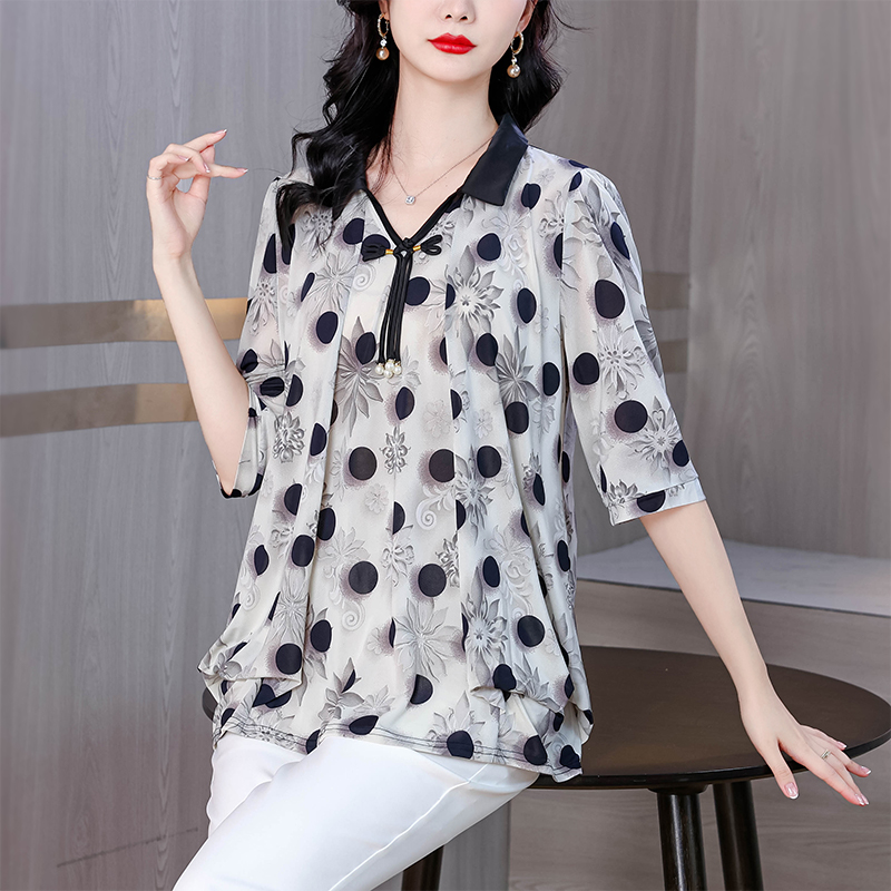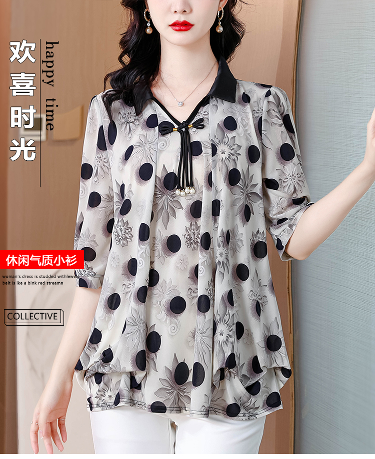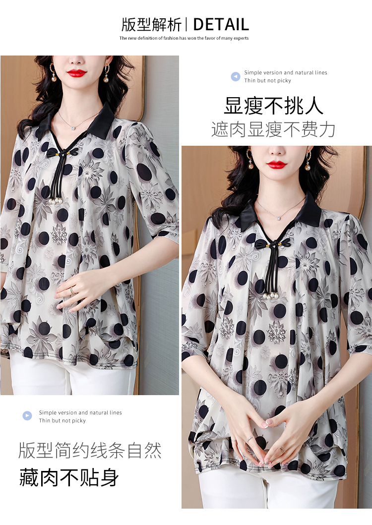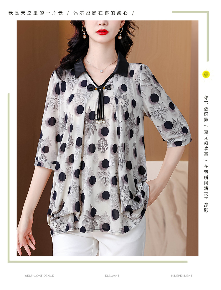 RY1864#夏季新款翻领小衫休闲百搭妈妈装宽松显瘦遮肚子上衣