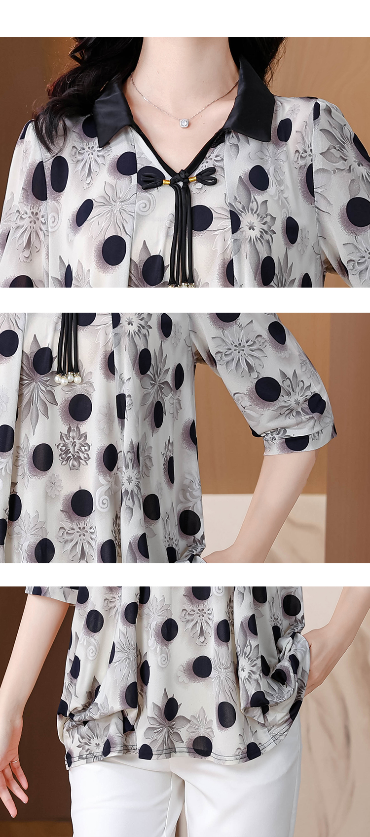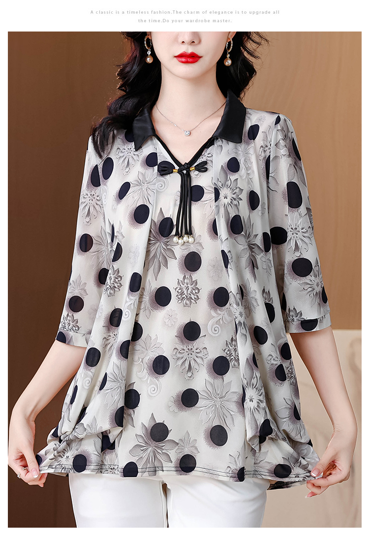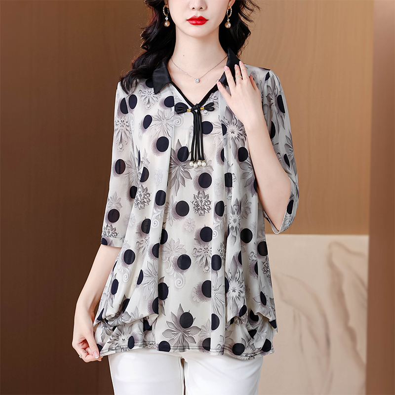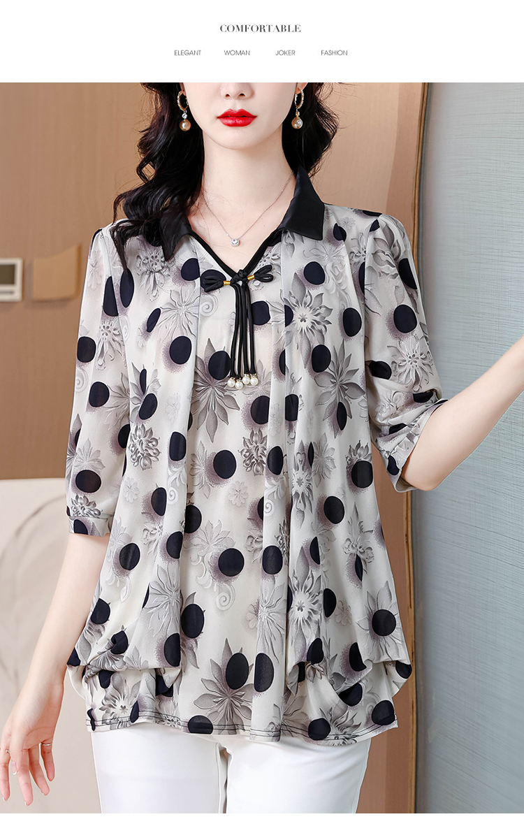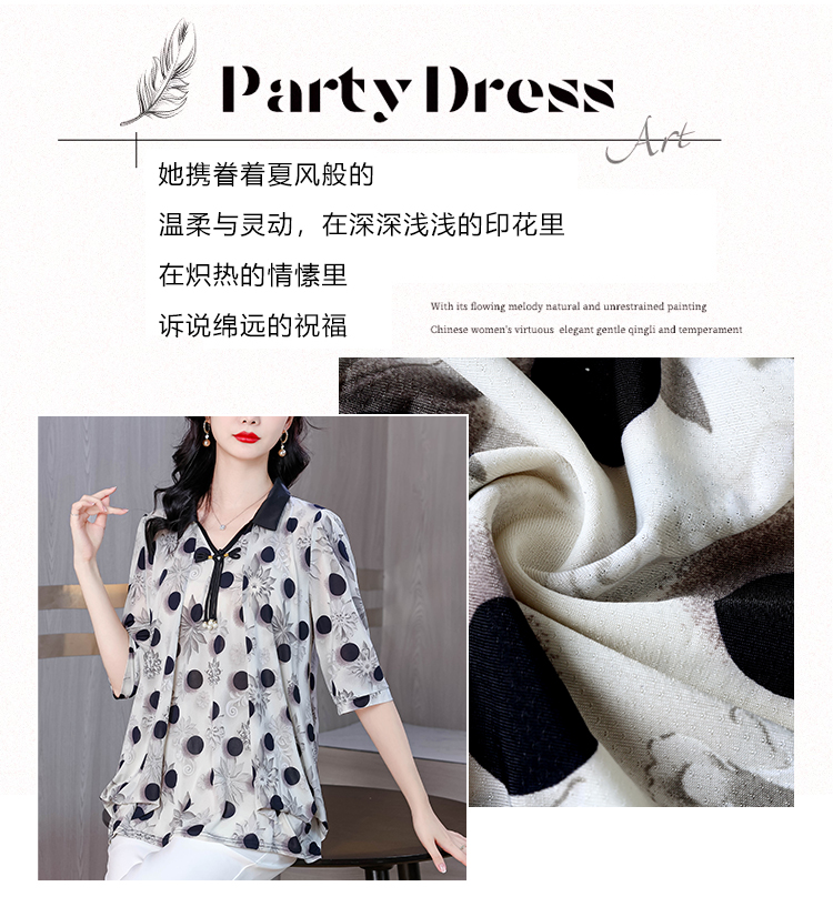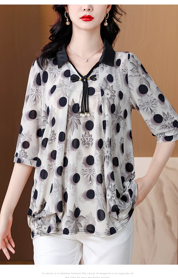 RY1864#夏季新款翻领小衫休闲百搭妈妈装宽松显瘦遮肚子上衣