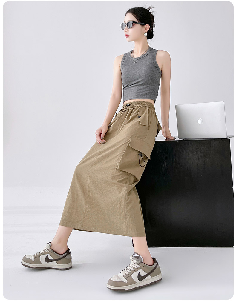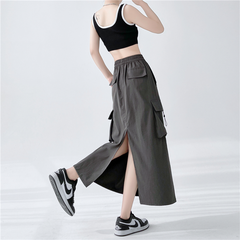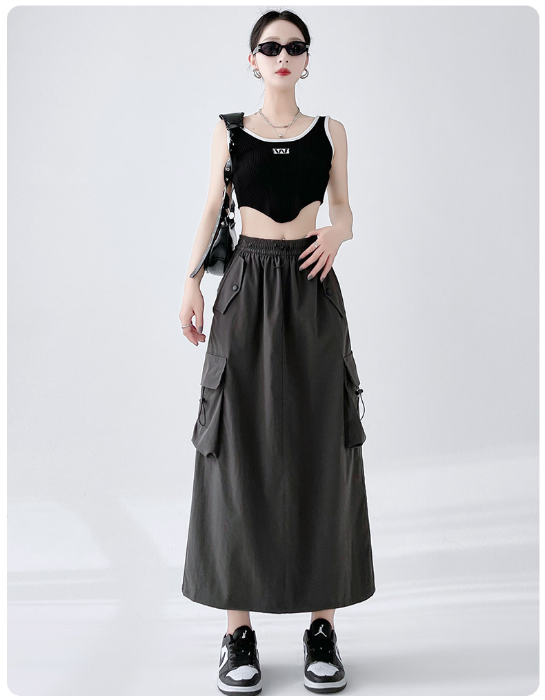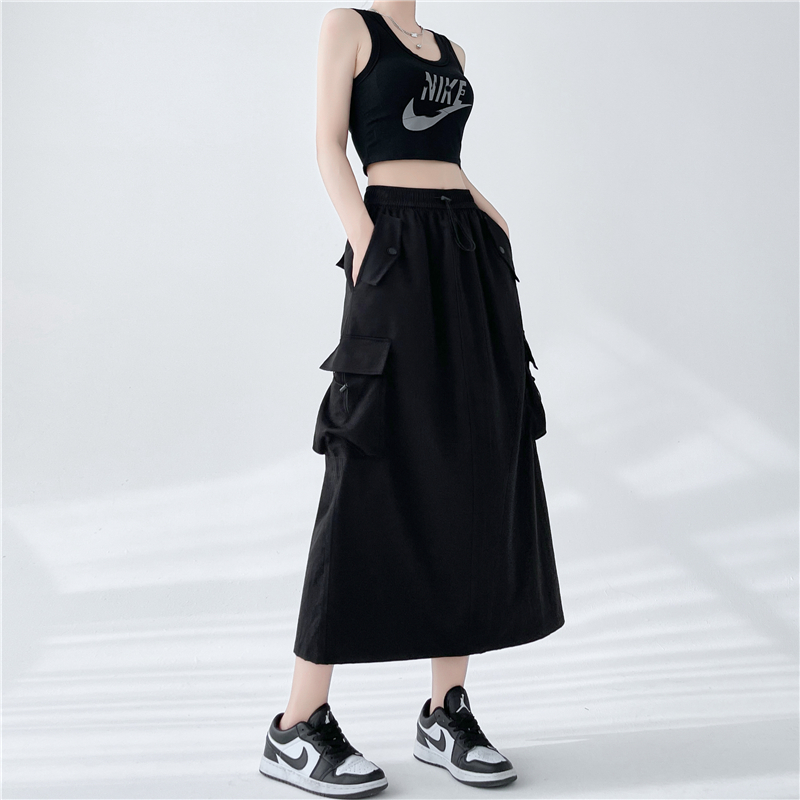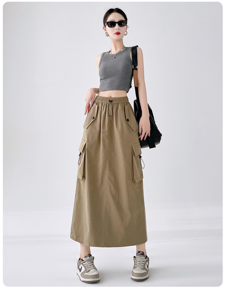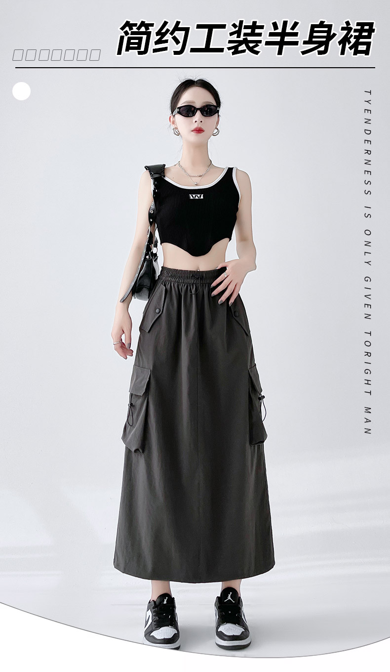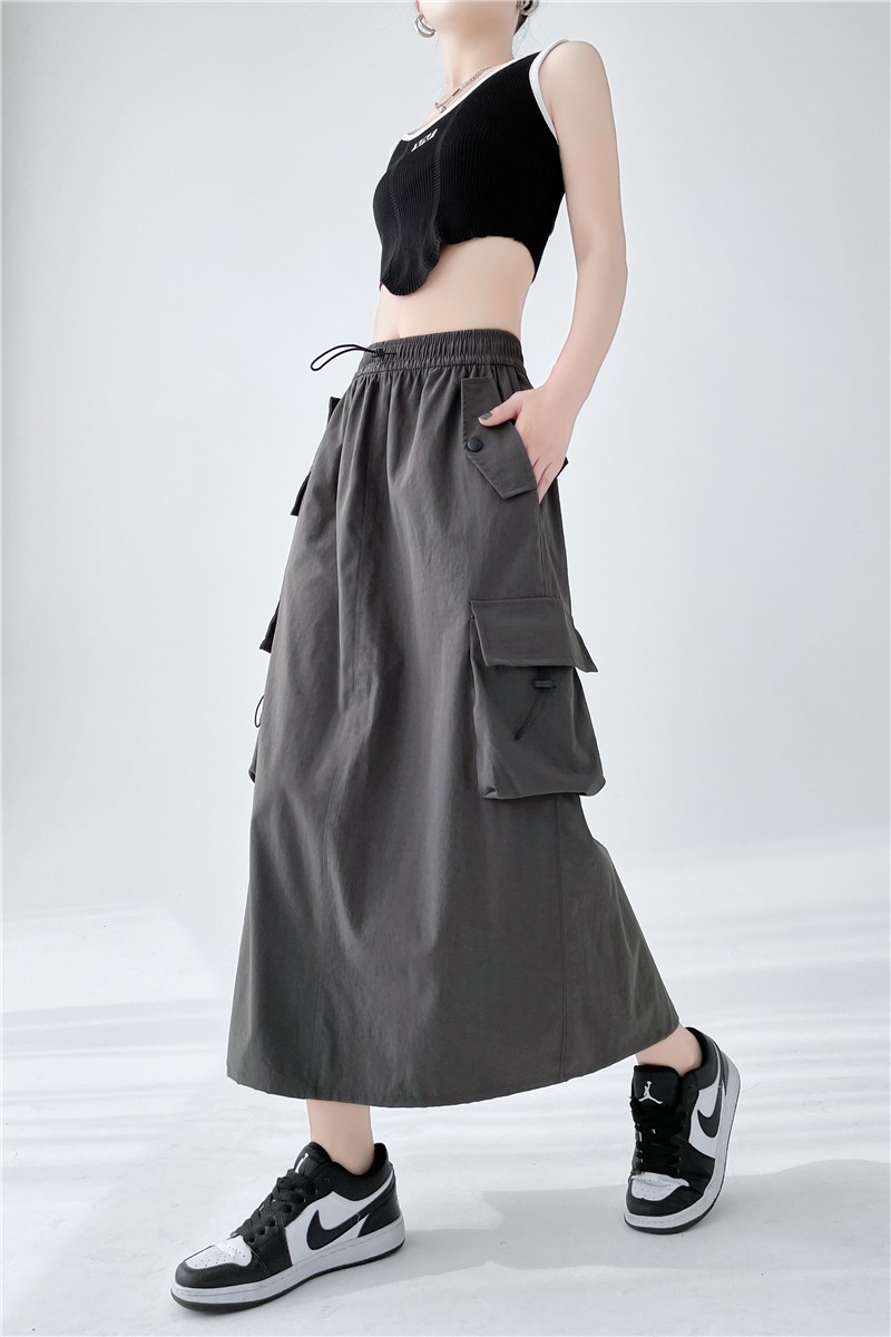RY1910# 实拍美式半身工装裙女2026新款高腰a字显瘦灰色抽绳长款夏季薄款