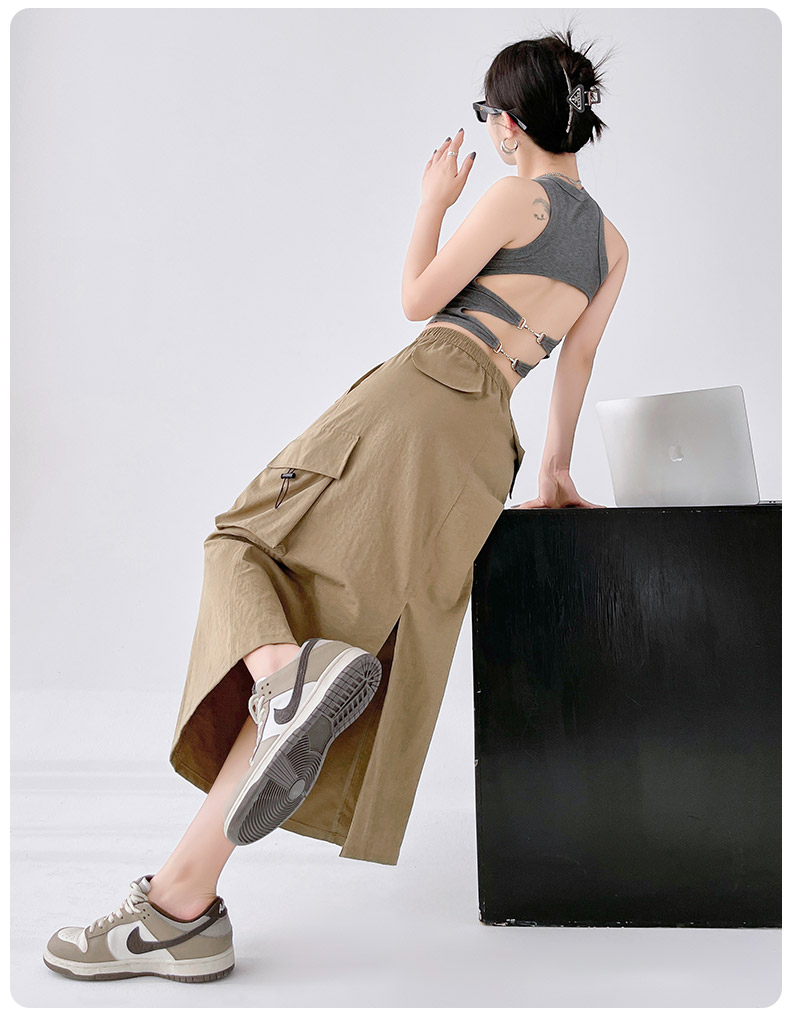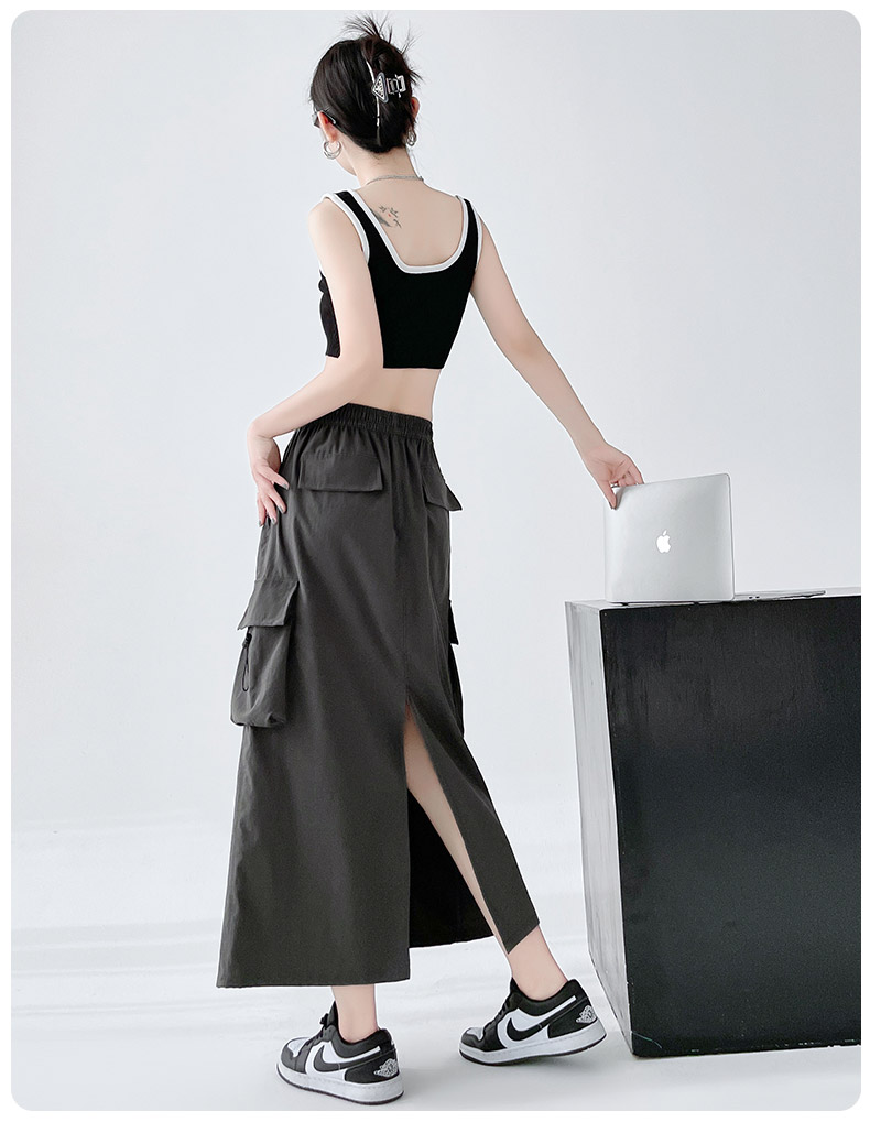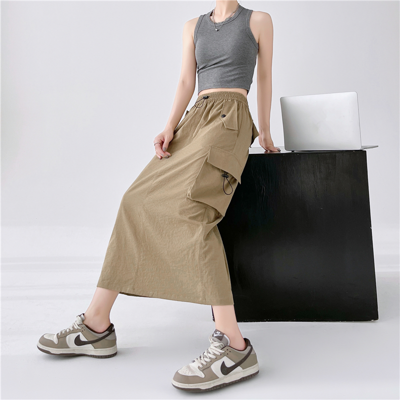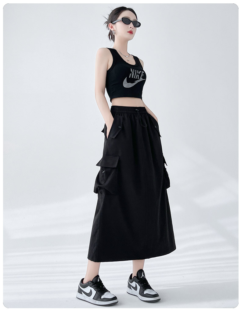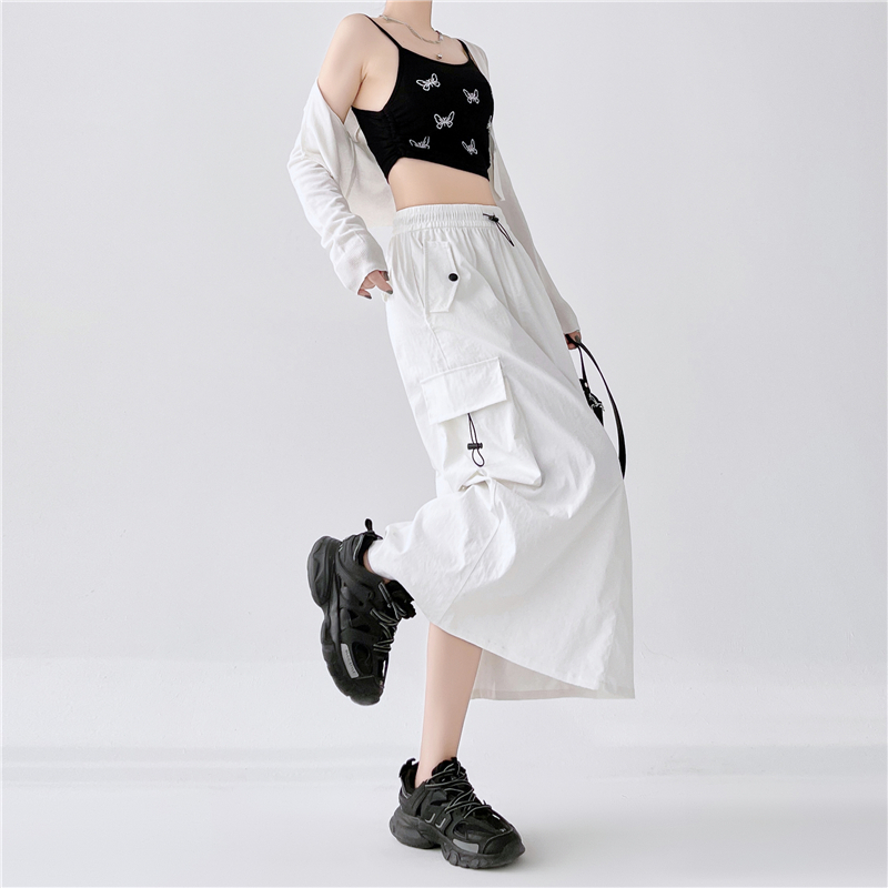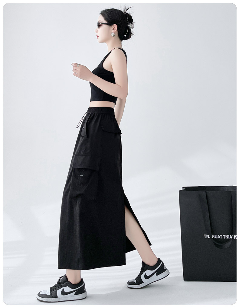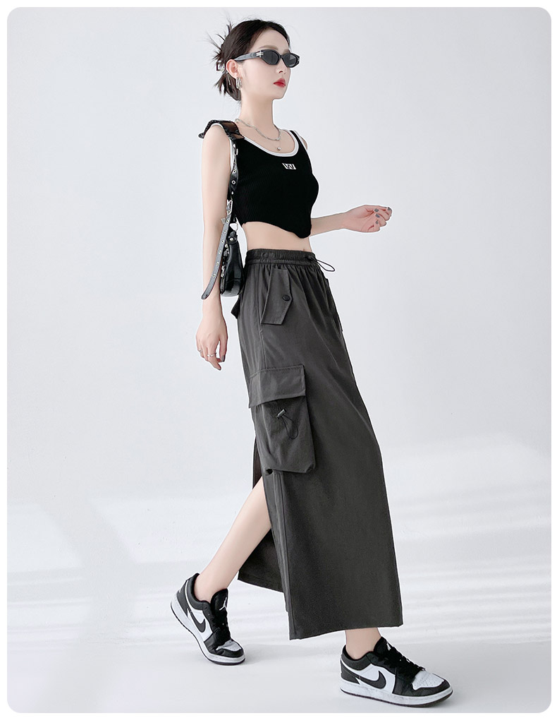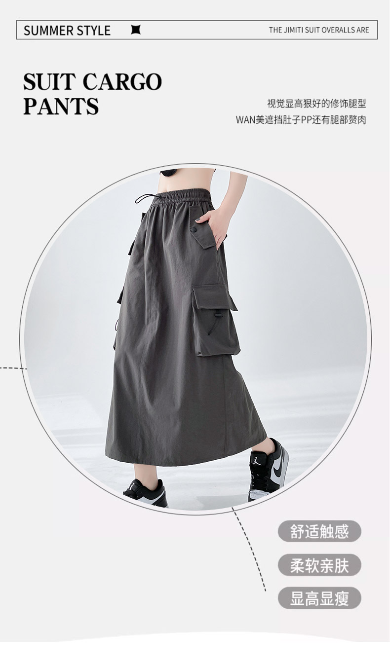 RY1910# 实拍美式半身工装裙女2026新款高腰a字显瘦灰色抽绳长款夏季薄款