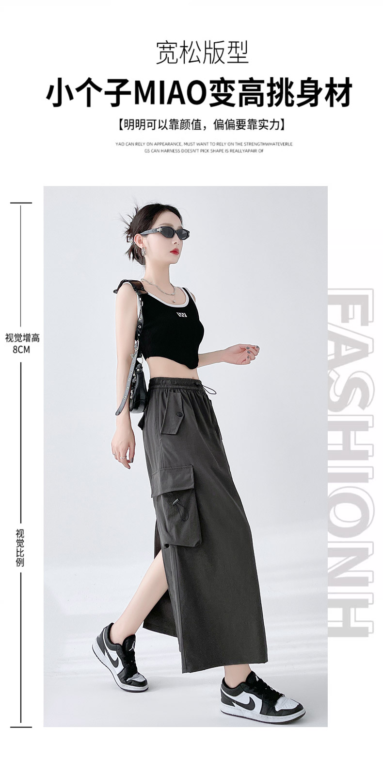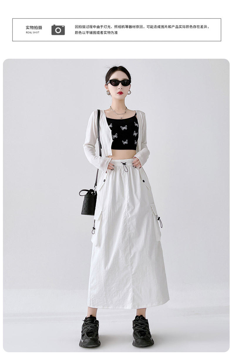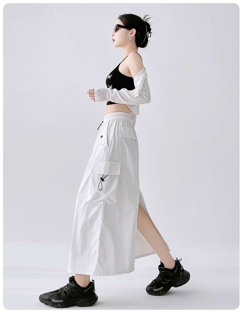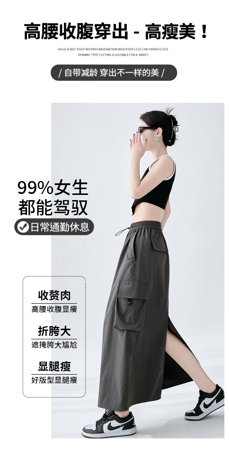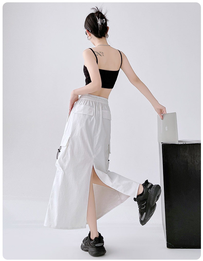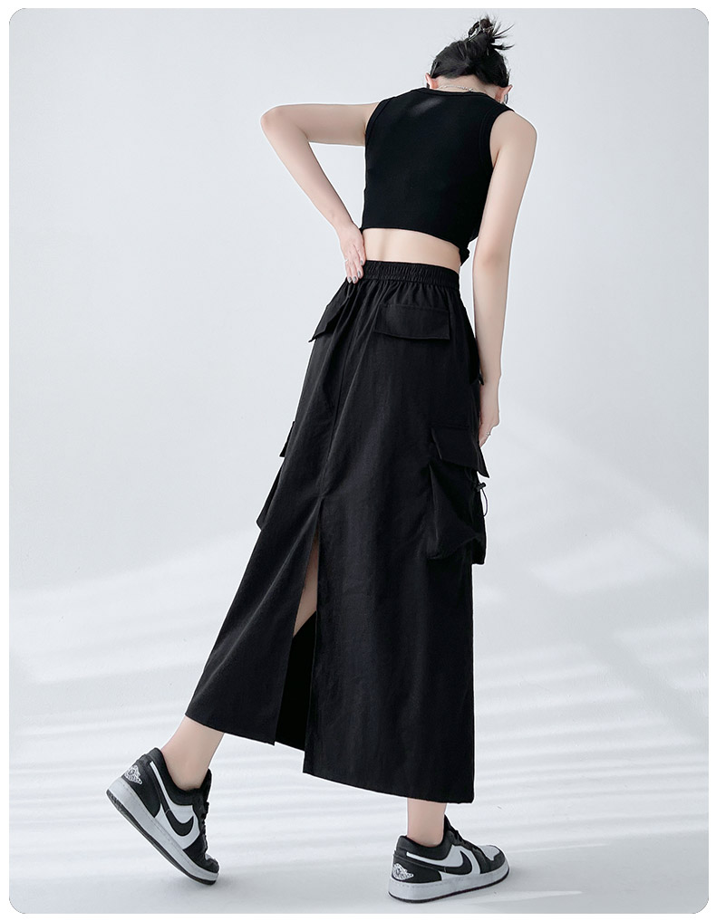 RY1910# 实拍美式半身工装裙女2026新款高腰a字显瘦灰色抽绳长款夏季薄款
