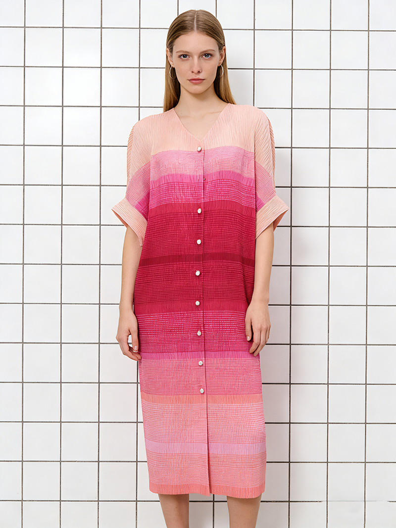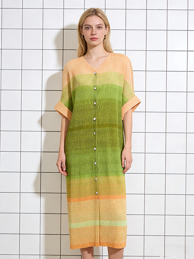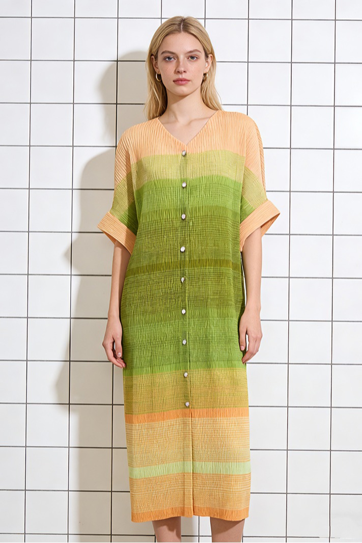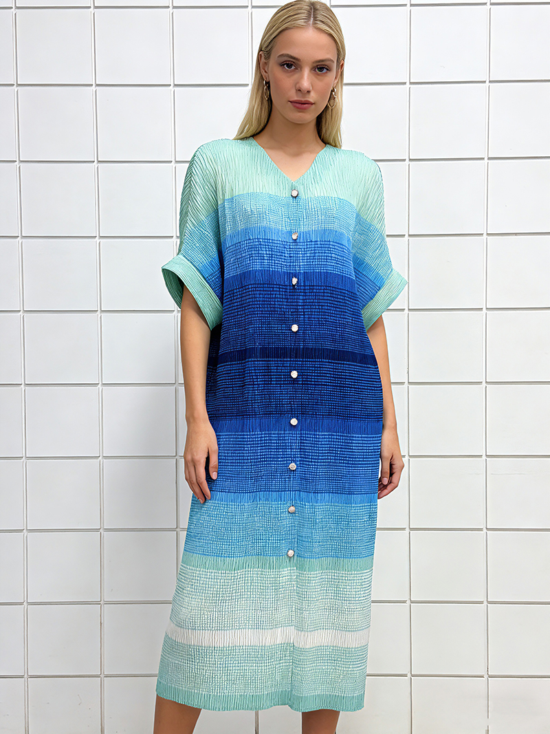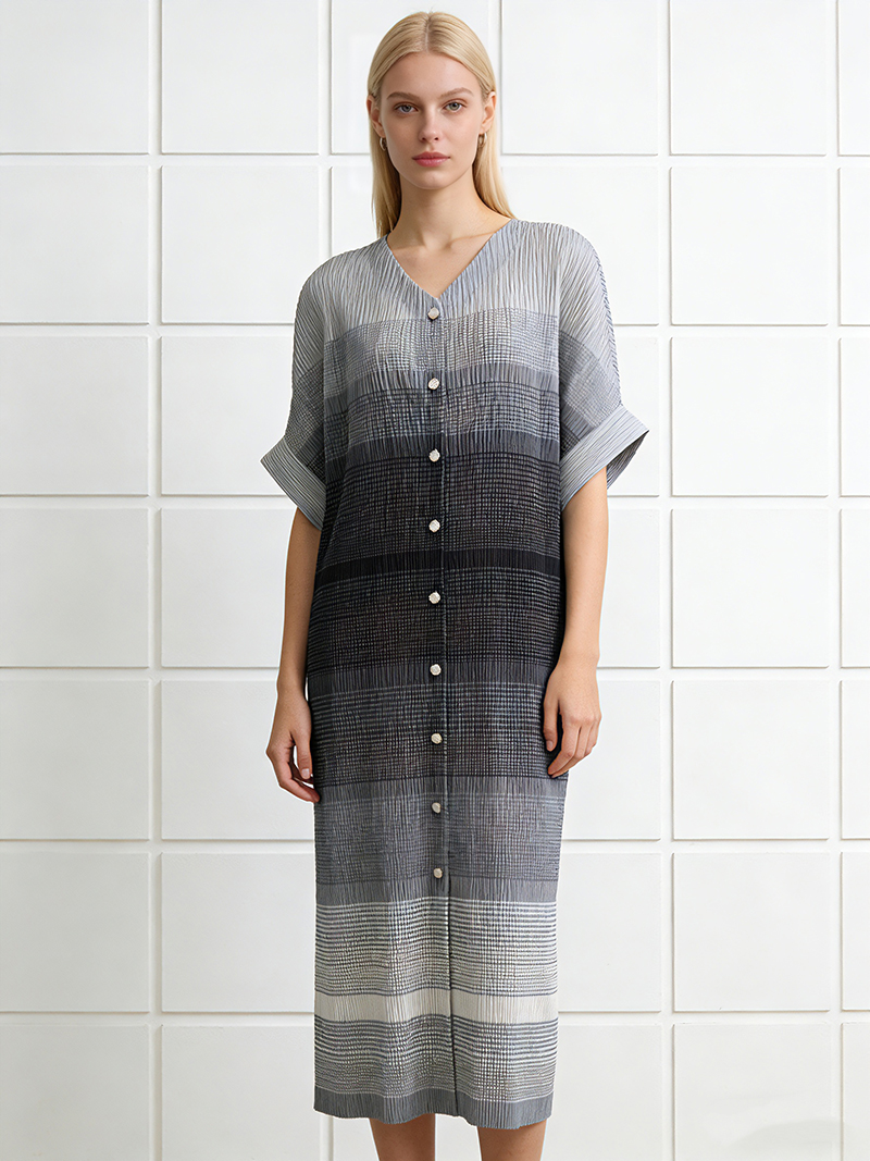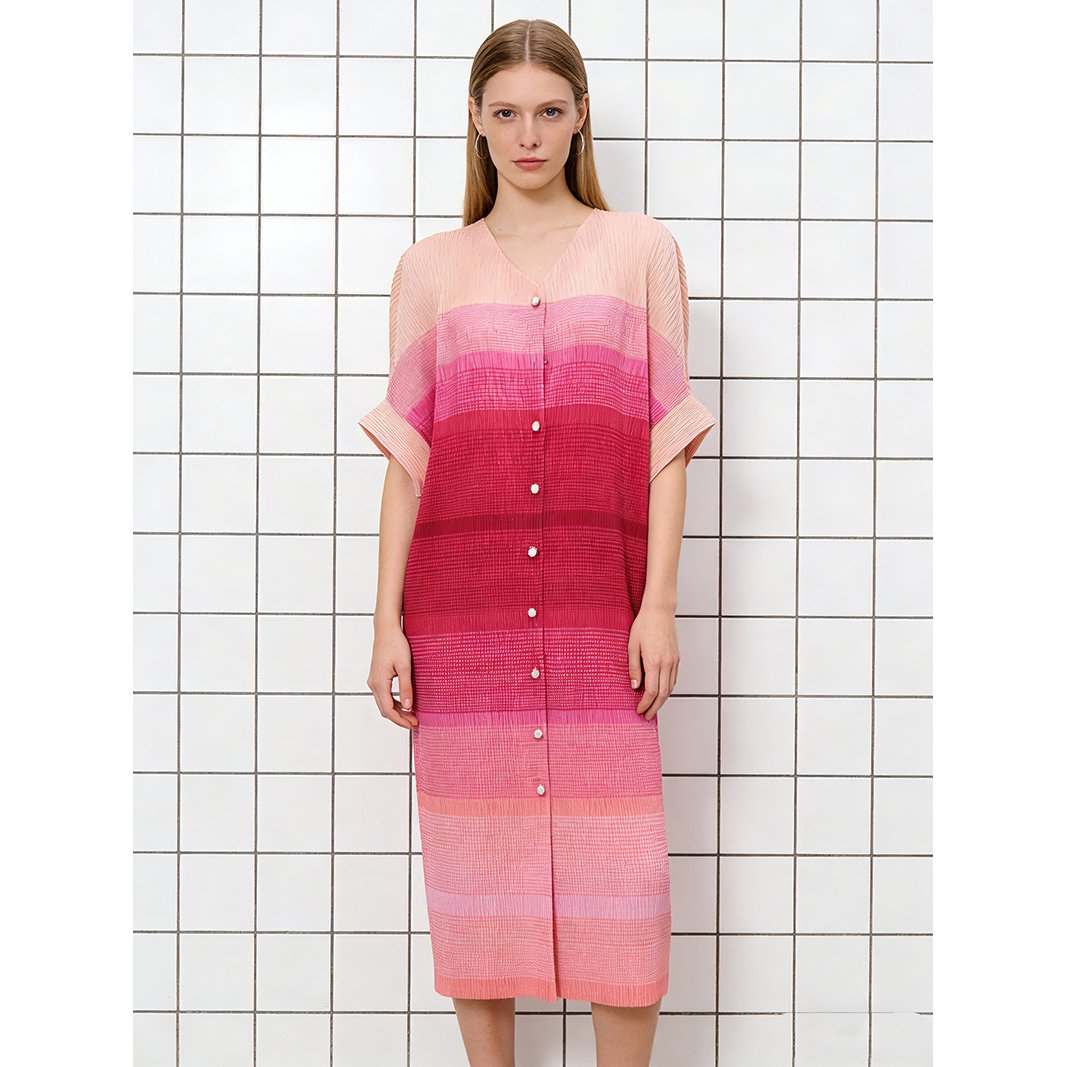 RY1925# 三宅外贸蝙蝠袖宽松褶皱连衣裙印花大码女装mm装优雅显瘦女开衫裙
