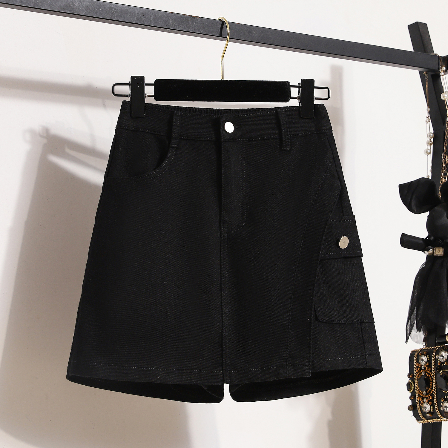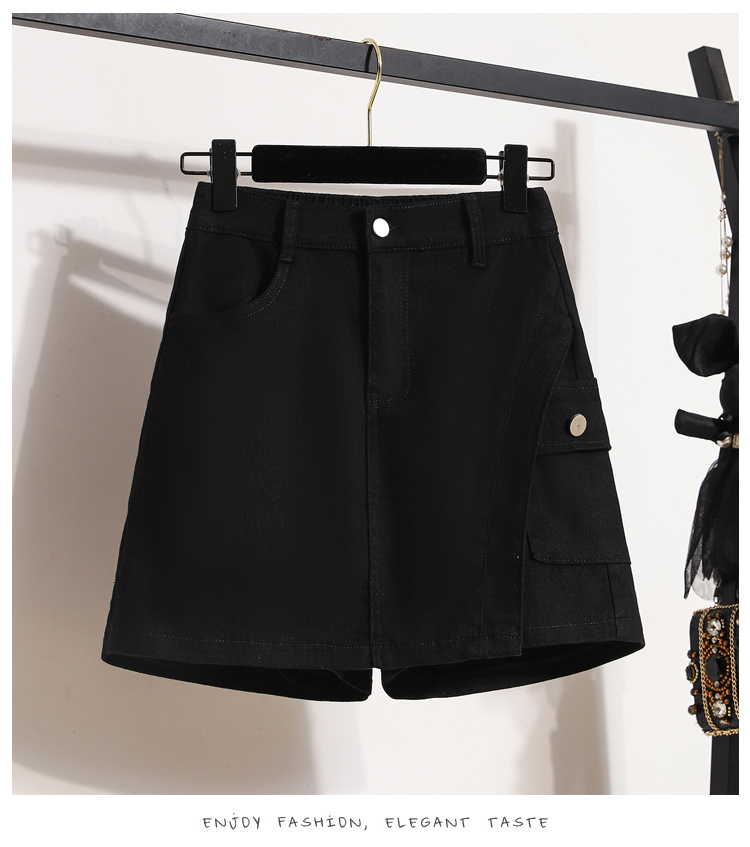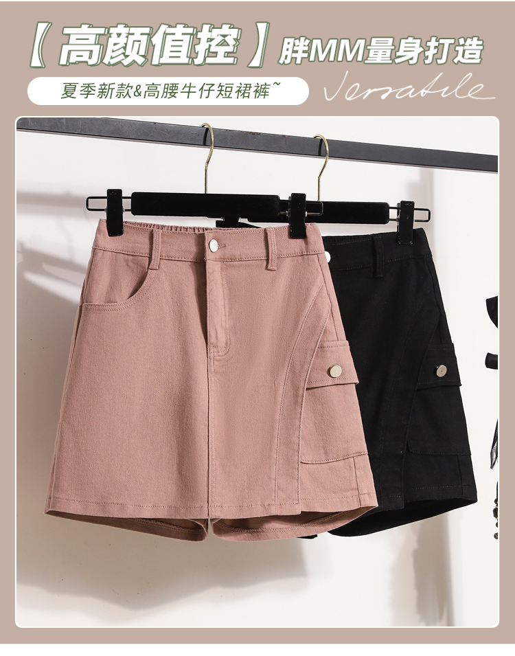 RY1961# 实拍夏款大码松紧腰牛仔短裙裤胖MM洋气防走光短裙时尚半身裙短裤