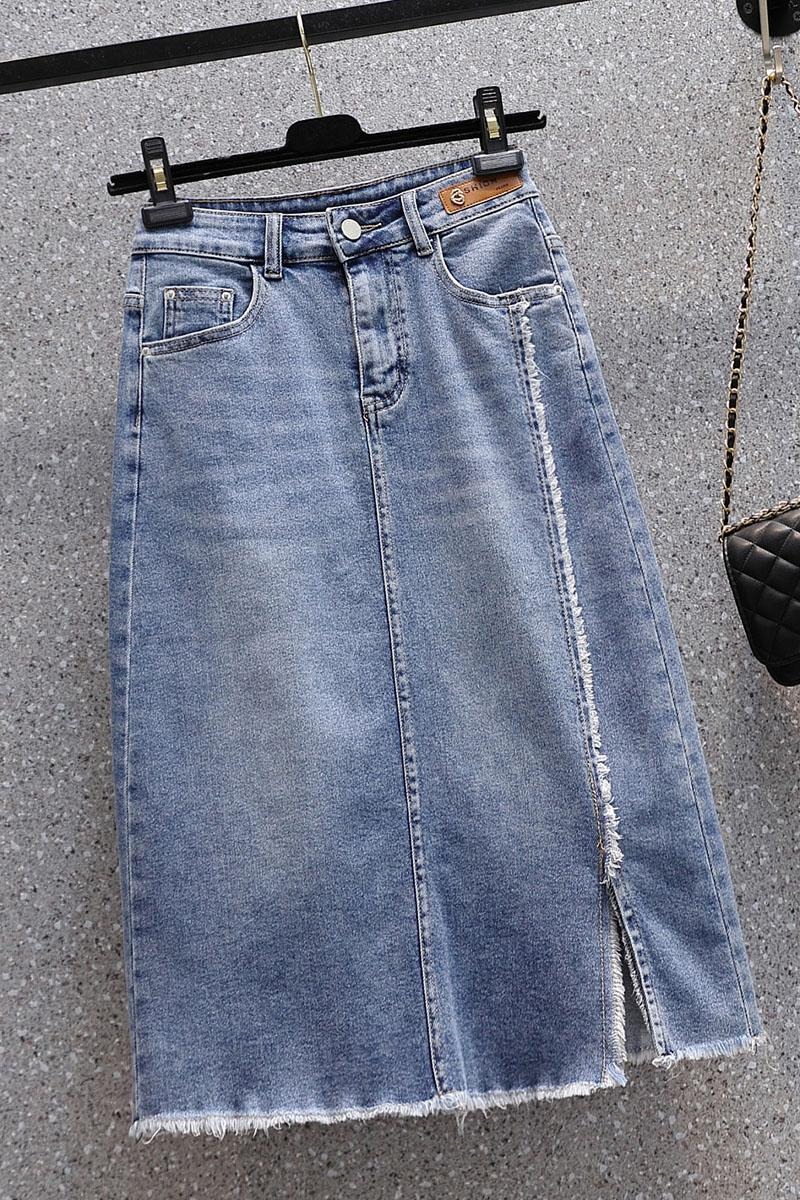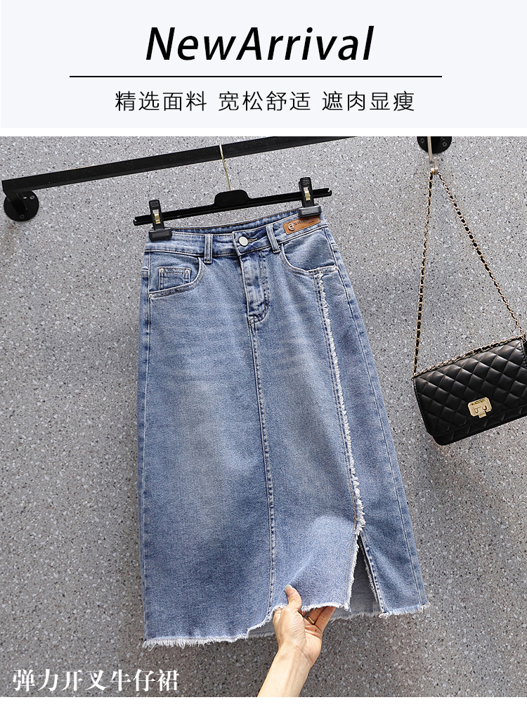 RY1969# 实拍夏款大码高腰弹力宽松牛仔A字裙胖MM中长款休闲高腰裙