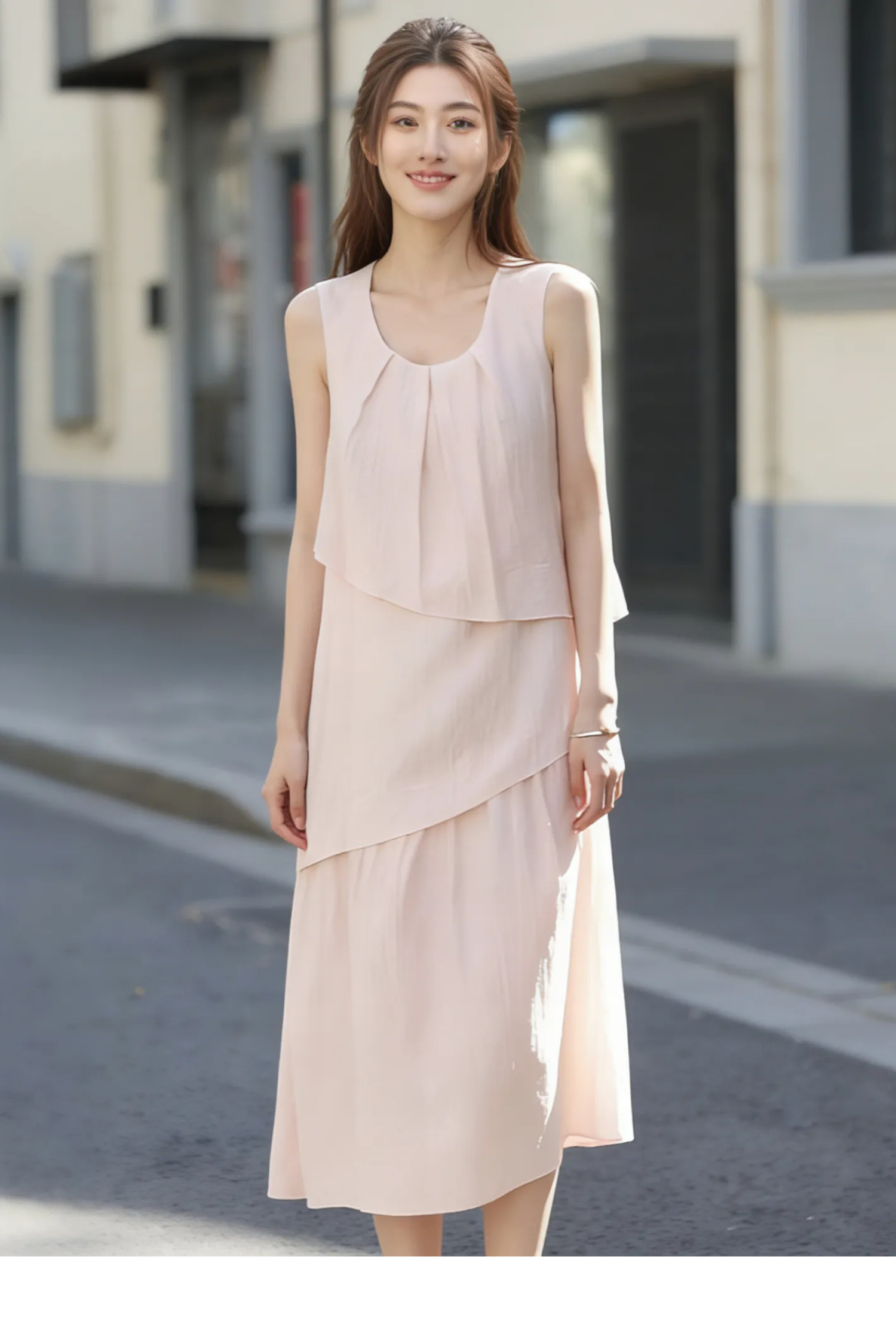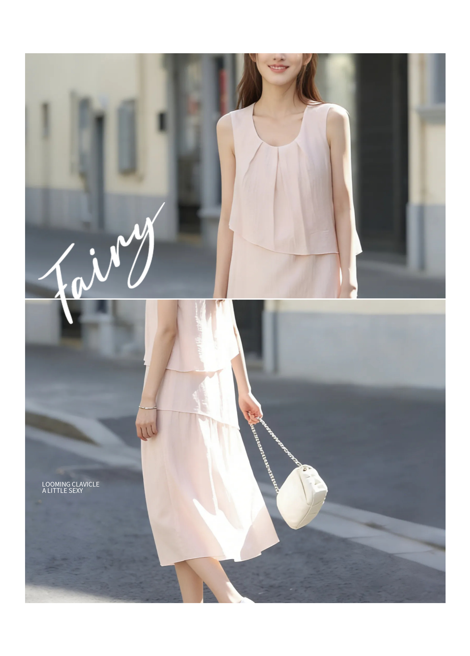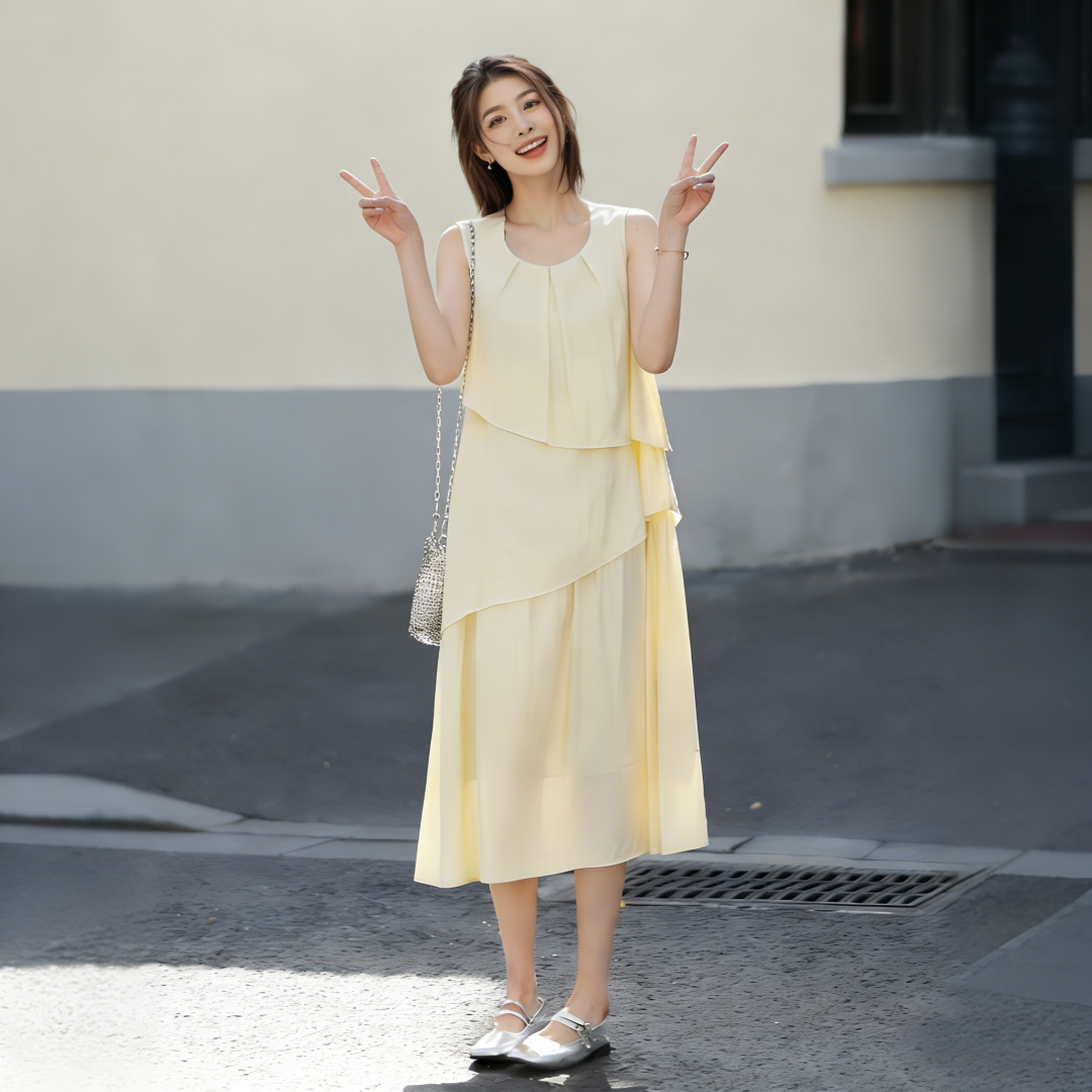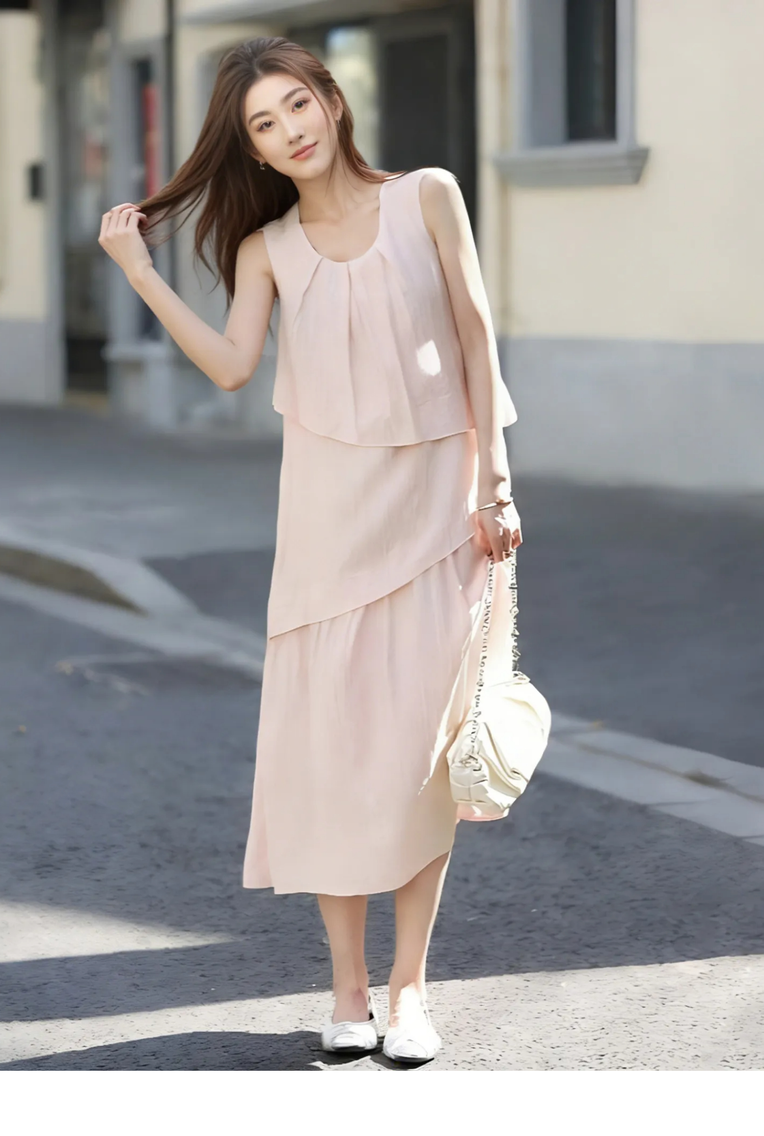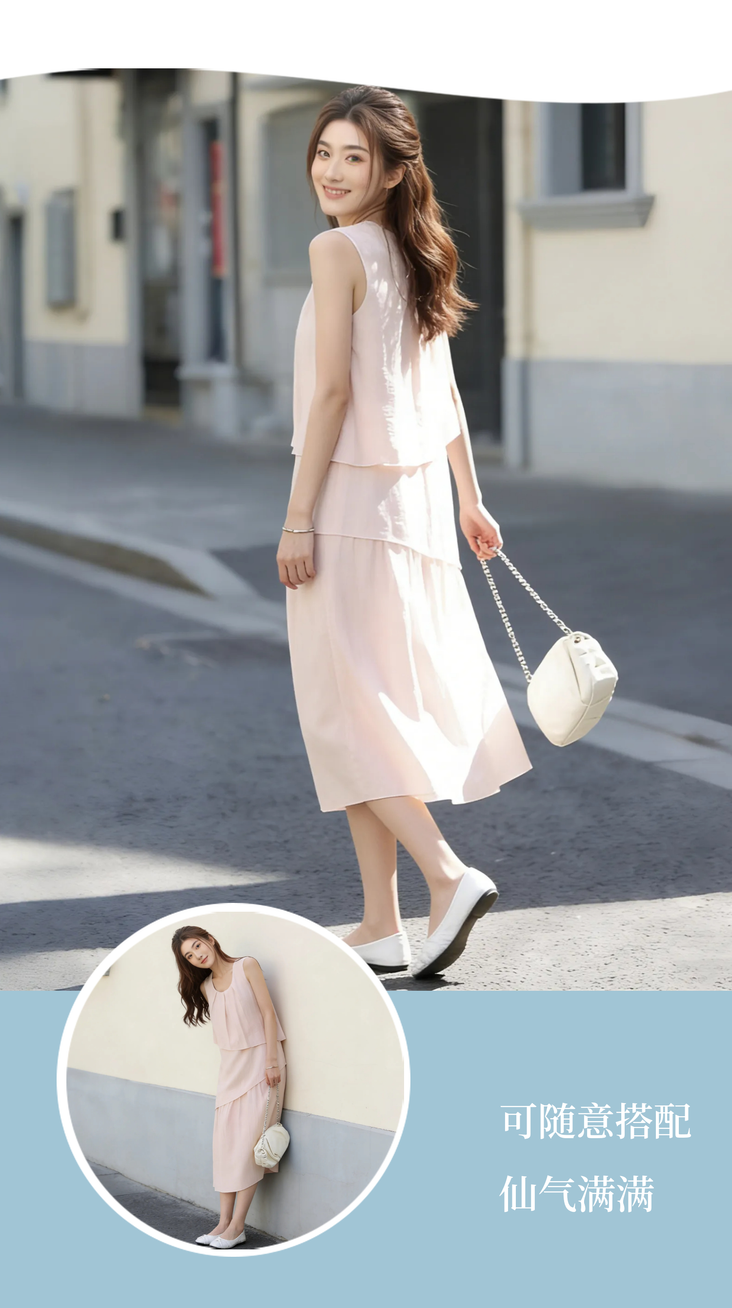 RY2060# 2026夏季新款气质名媛拼接U型领背心裙无袖A字连衣裙女不规则长款