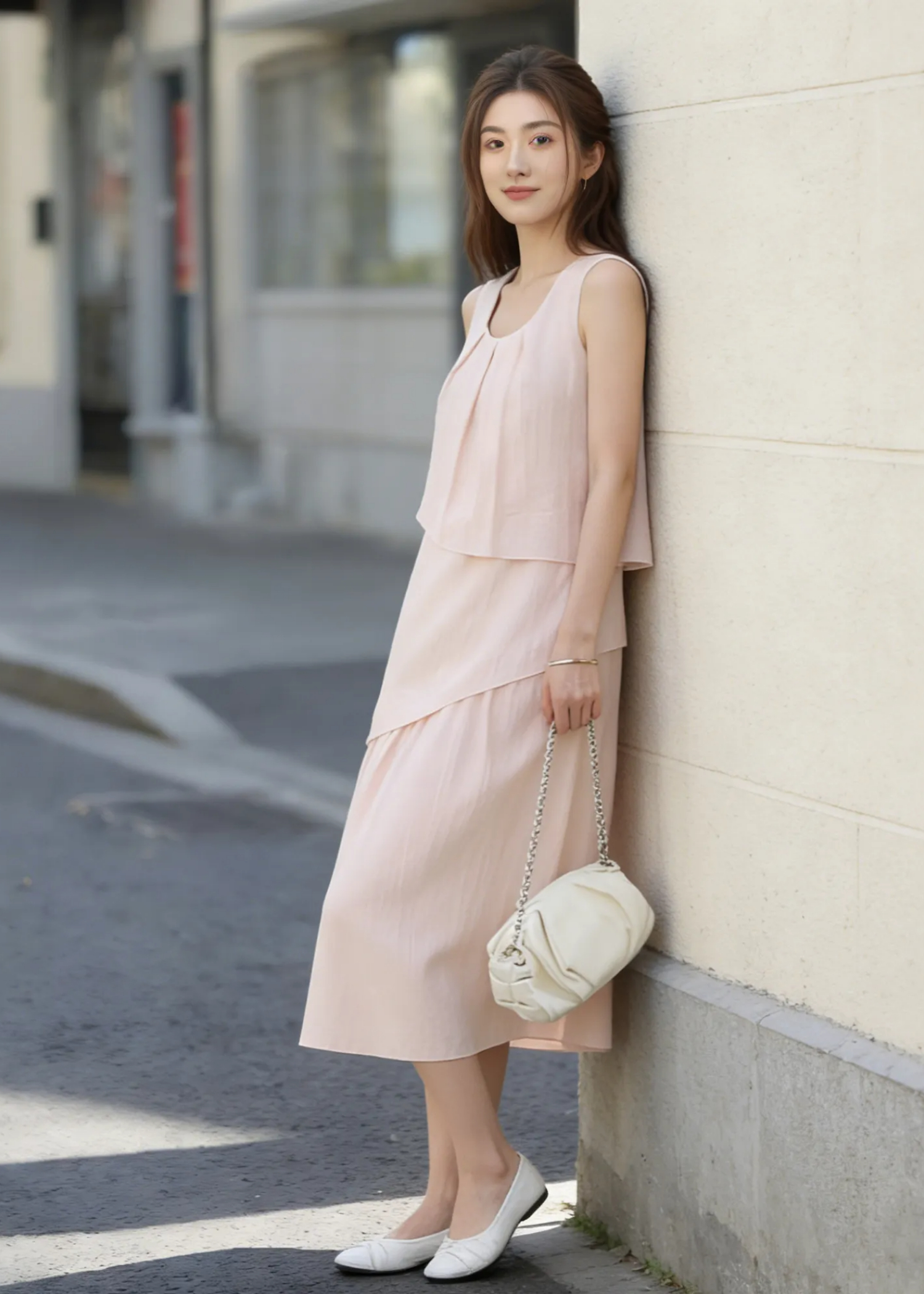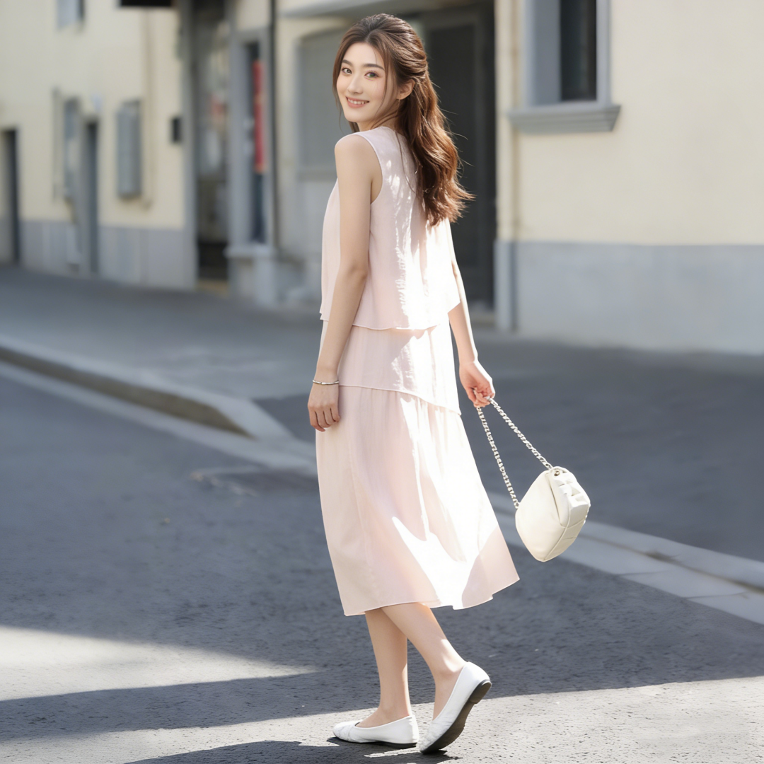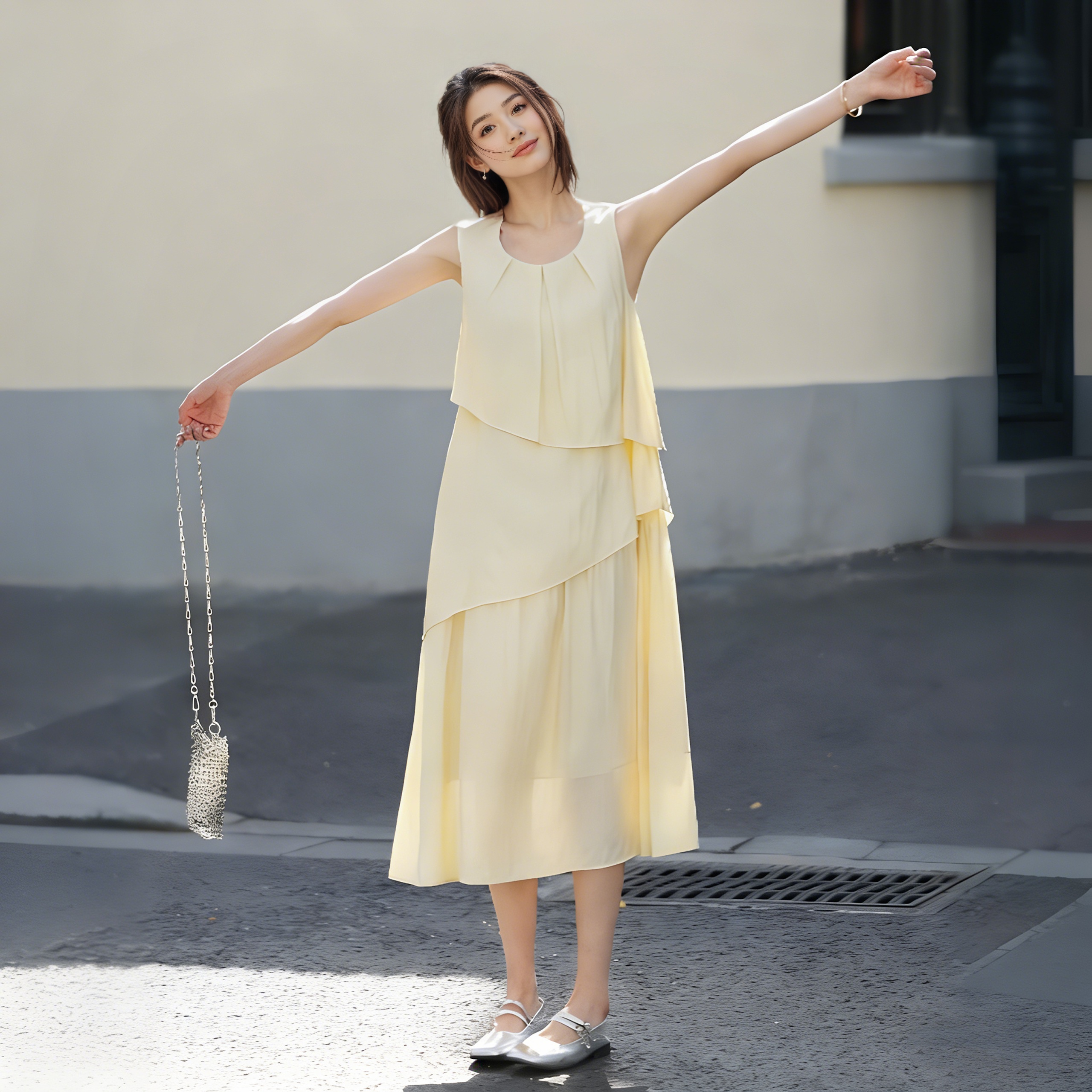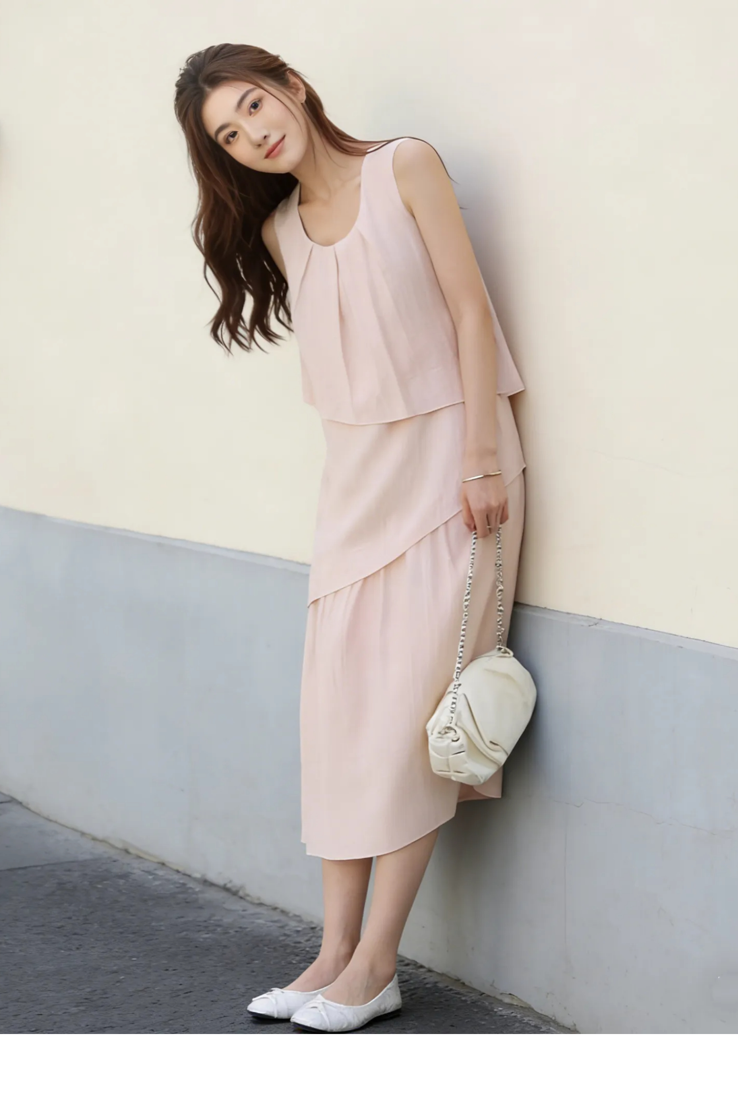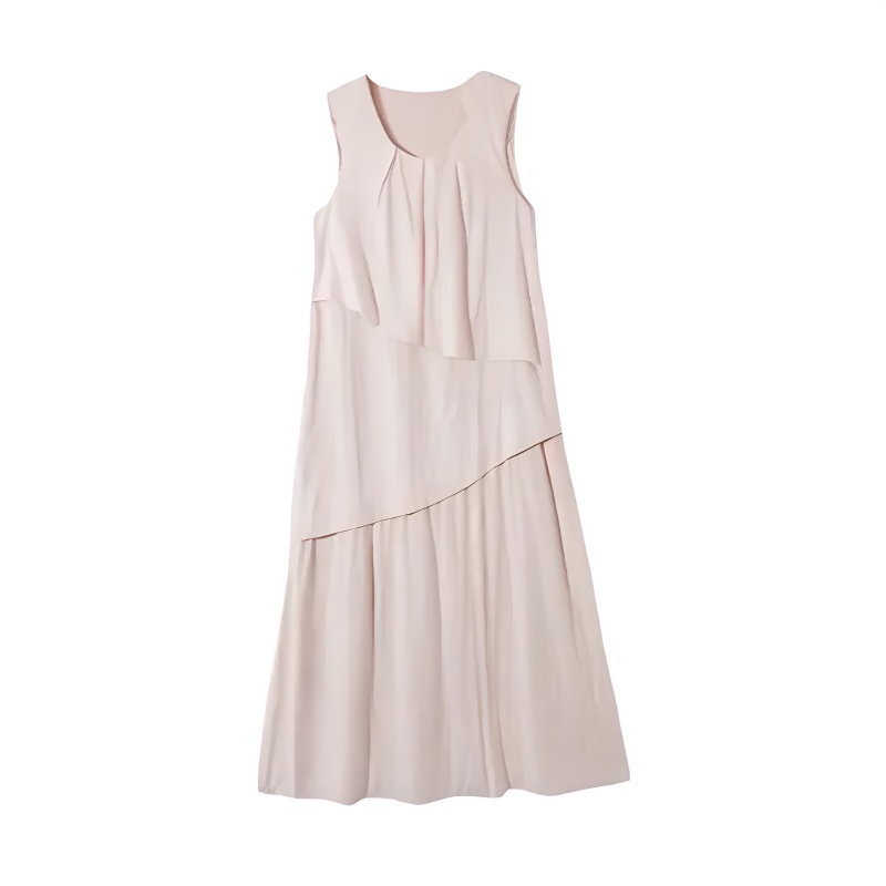RY2060# 2026夏季新款气质名媛拼接U型领背心裙无袖A字连衣裙女不规则长款
