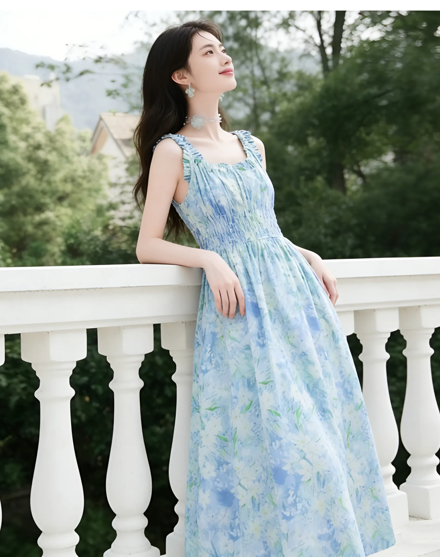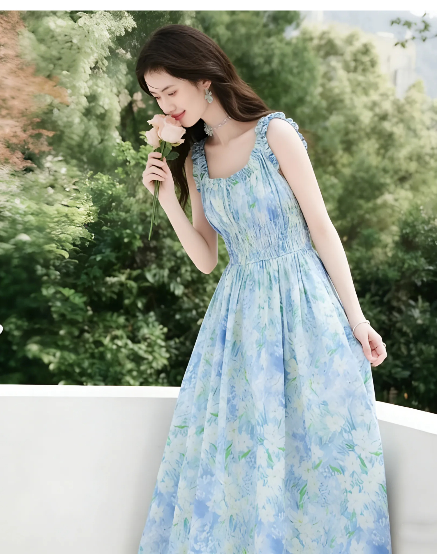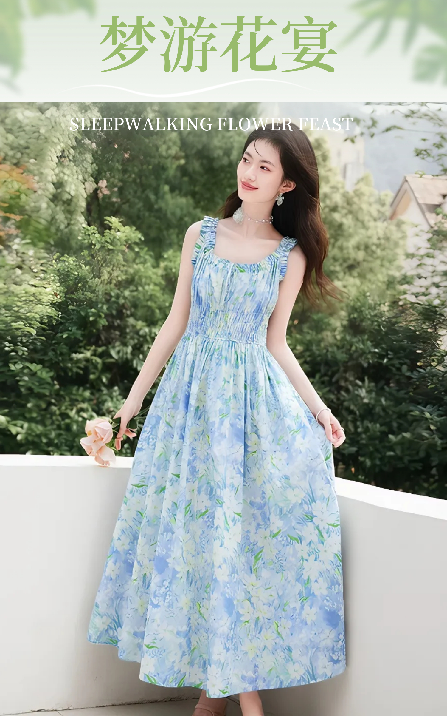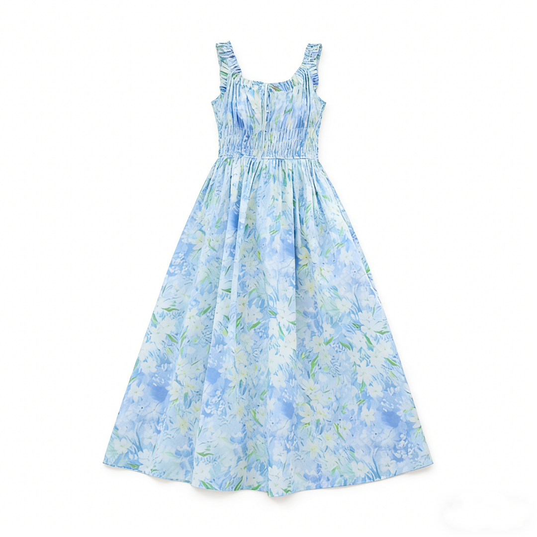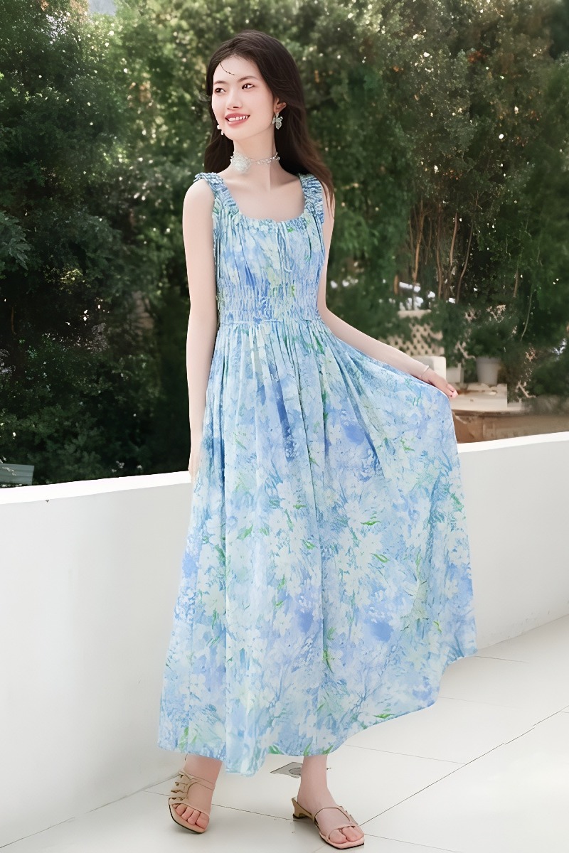 RY2061# 法式浪漫风气质印花长款连衣裙女2026夏季新款绝美漂亮收腰A字裙
