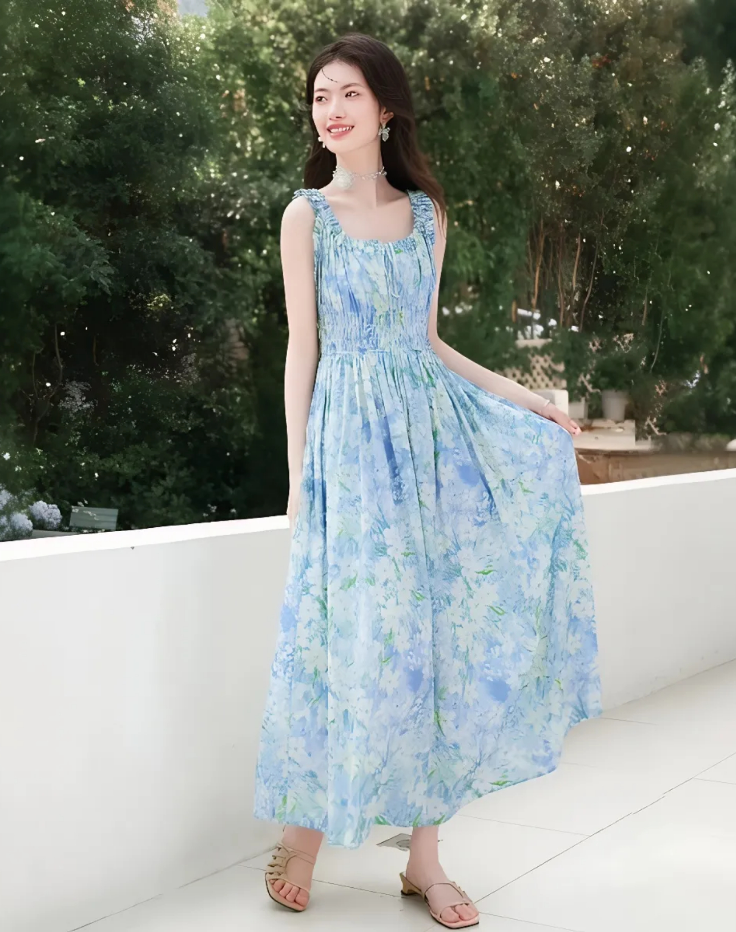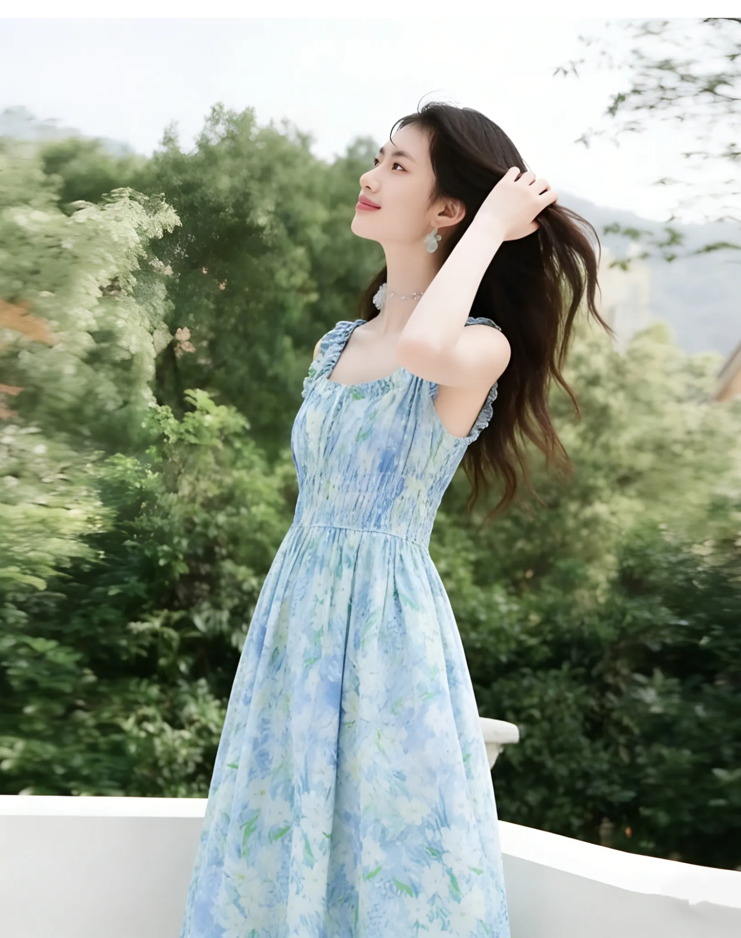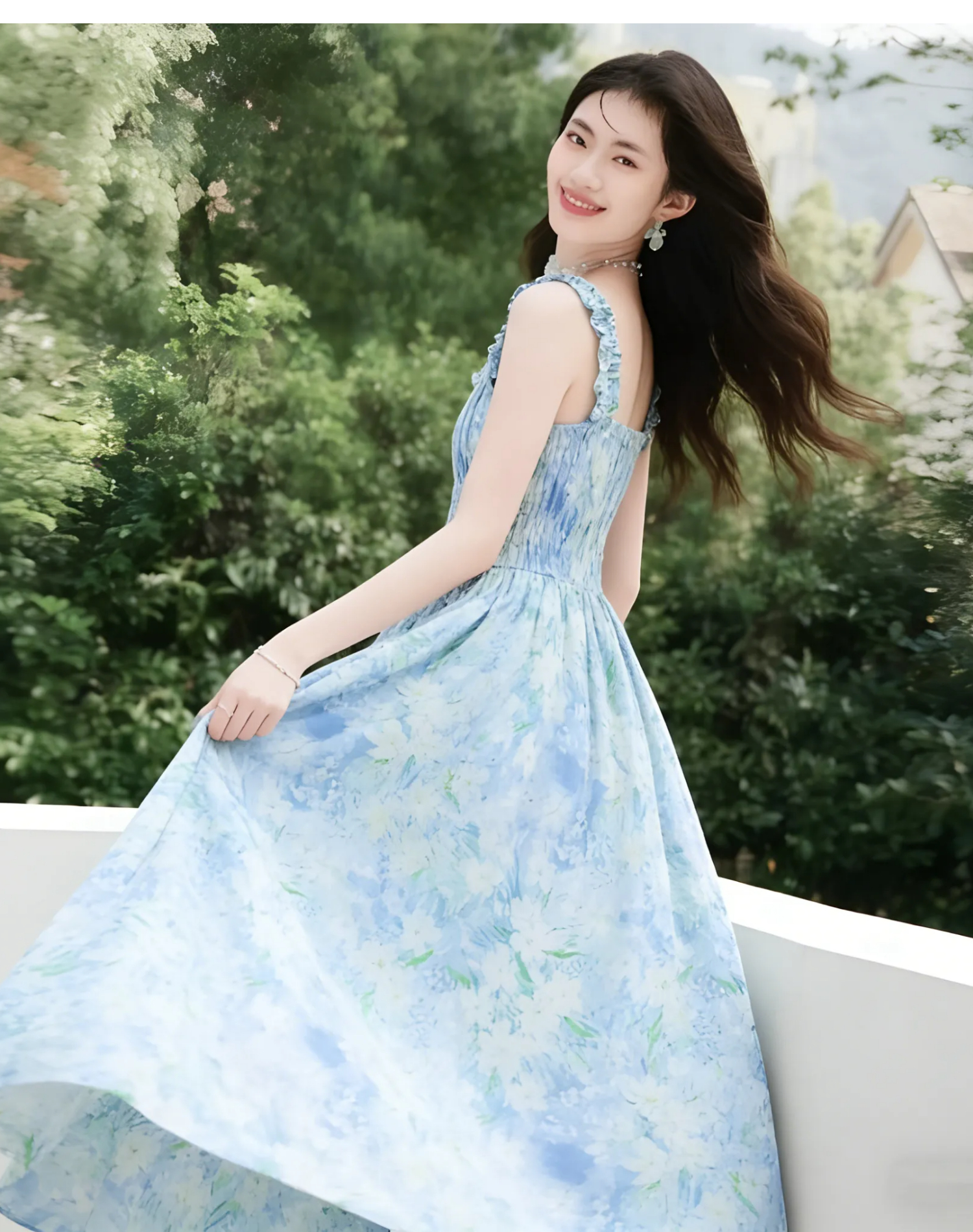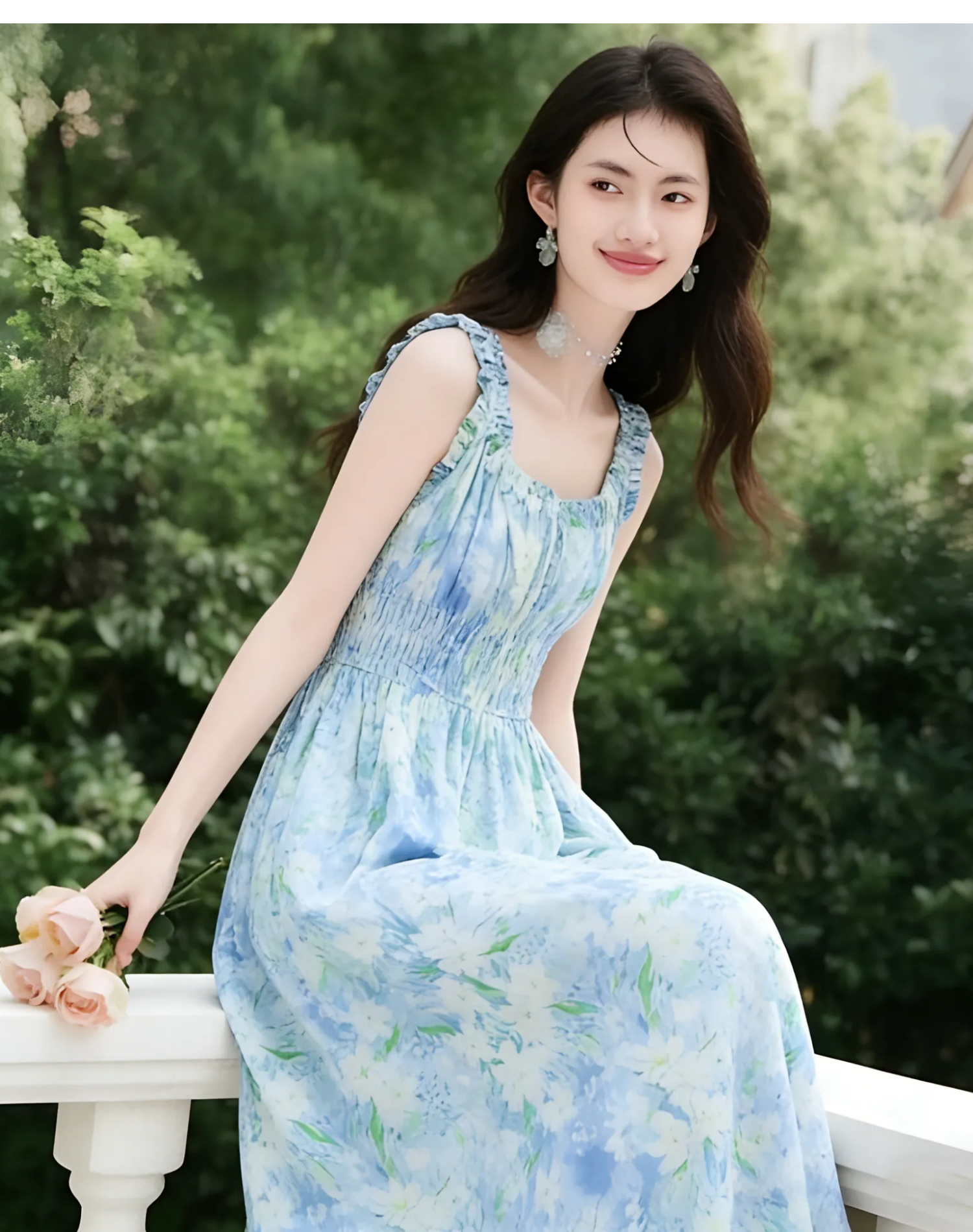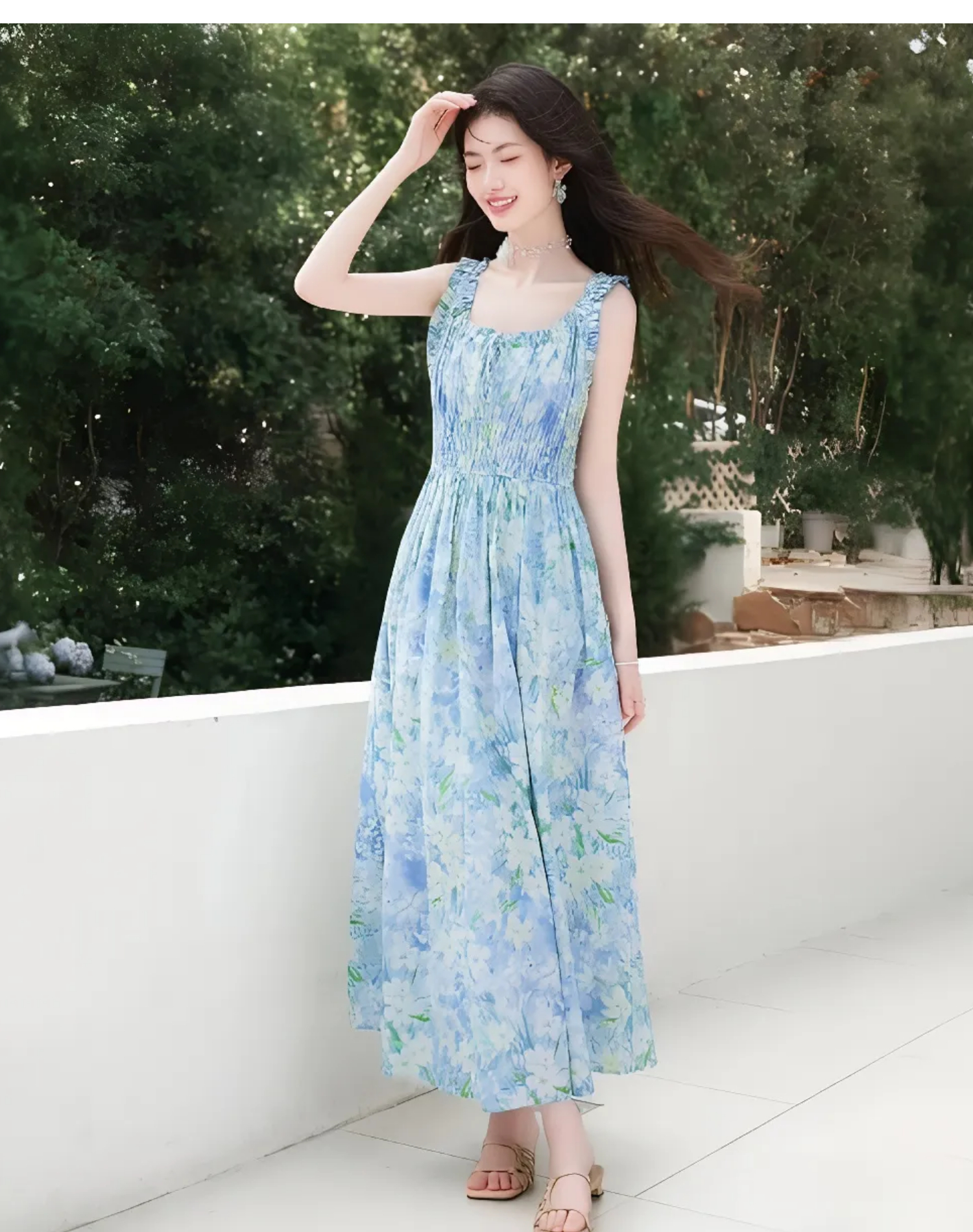 RY2061# 法式浪漫风气质印花长款连衣裙女2026夏季新款绝美漂亮收腰A字裙