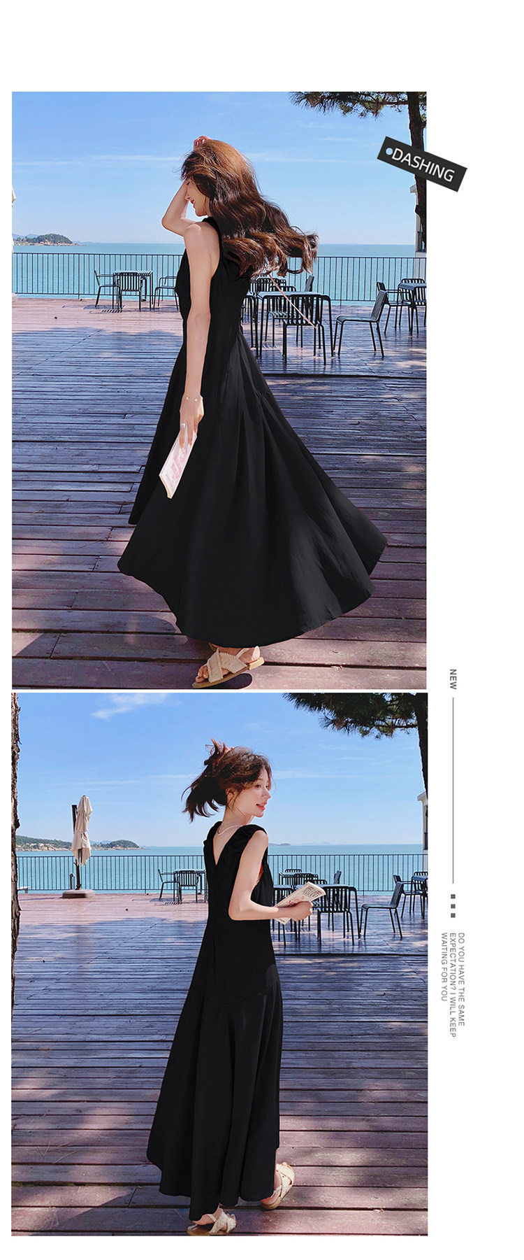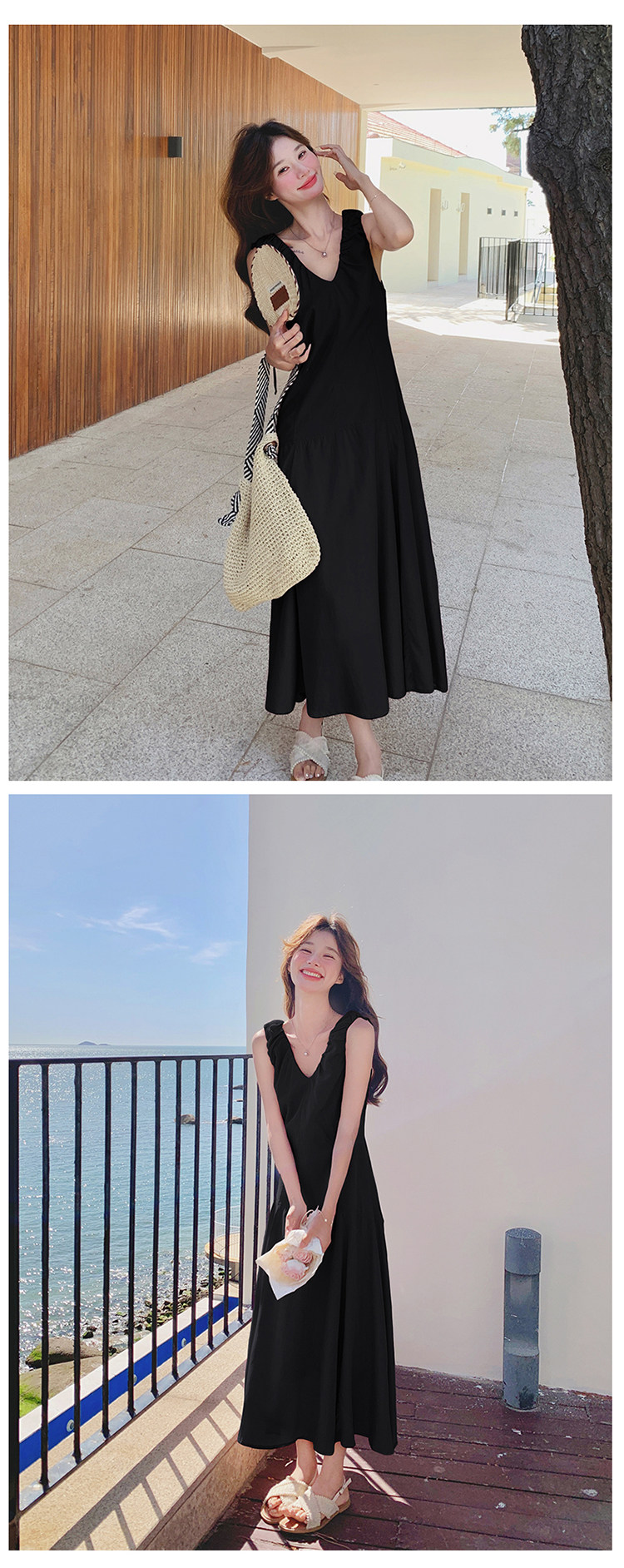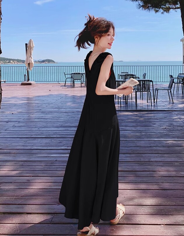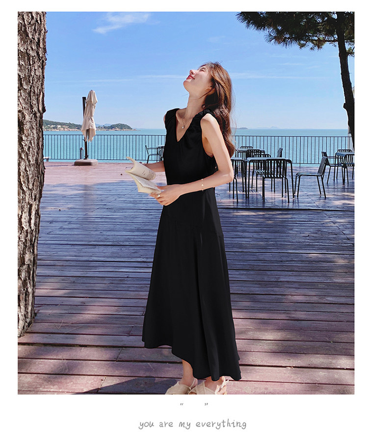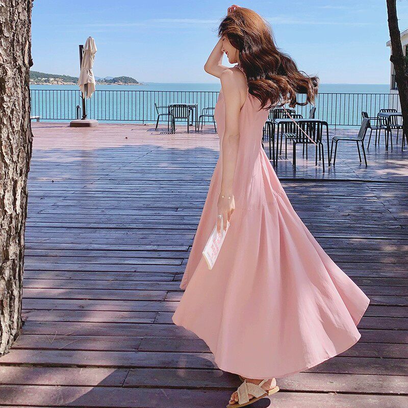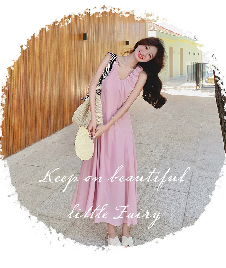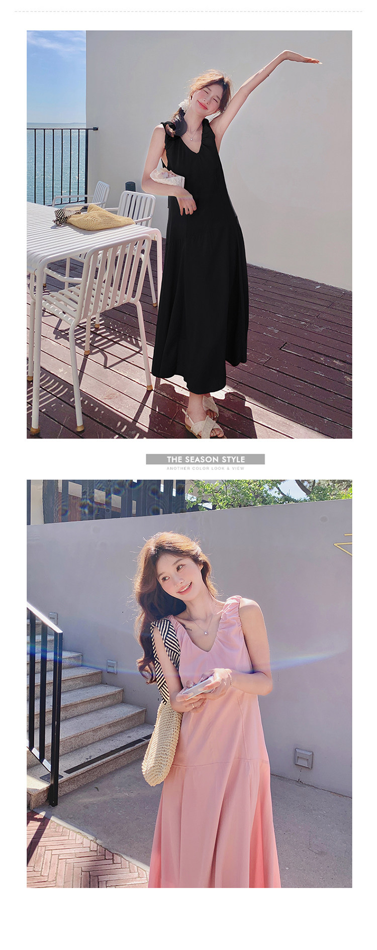 RY2063# 气质温柔粉色无袖v领连衣裙女夏2026新款简单大方高级感背心长裙