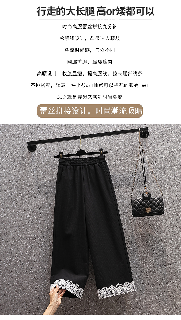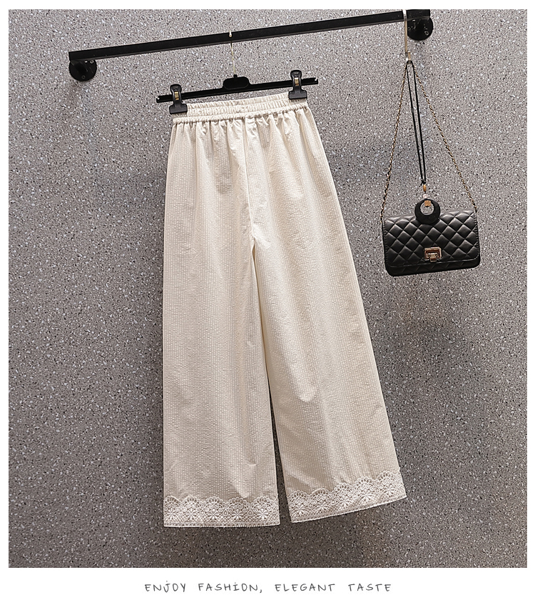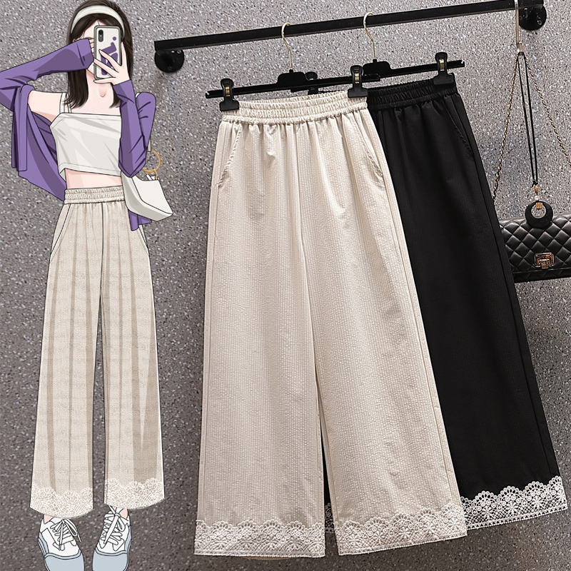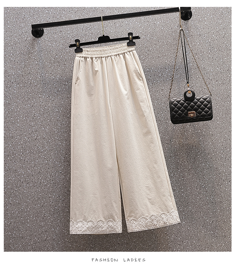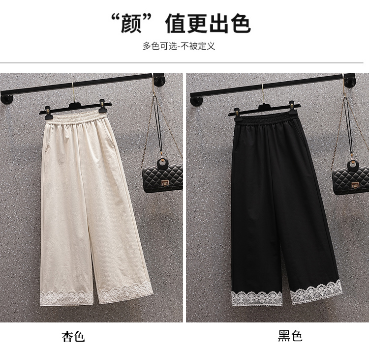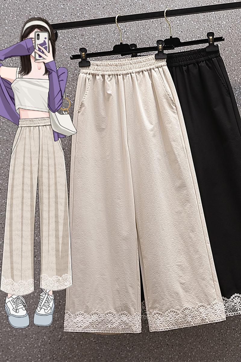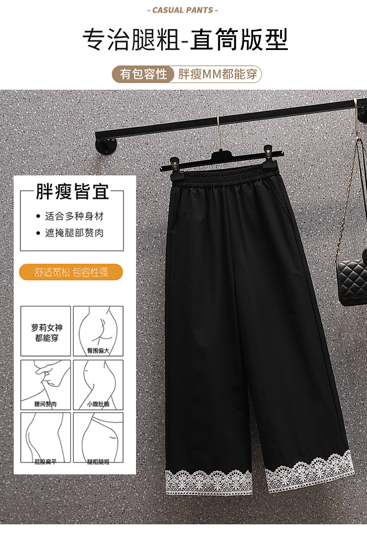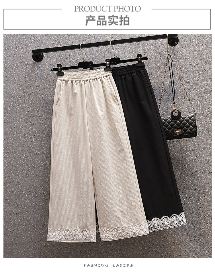 RY2089# 实拍夏新款大码宽松阔腿薄款九分蕾丝女裤胖MM松紧腰显瘦直筒裤