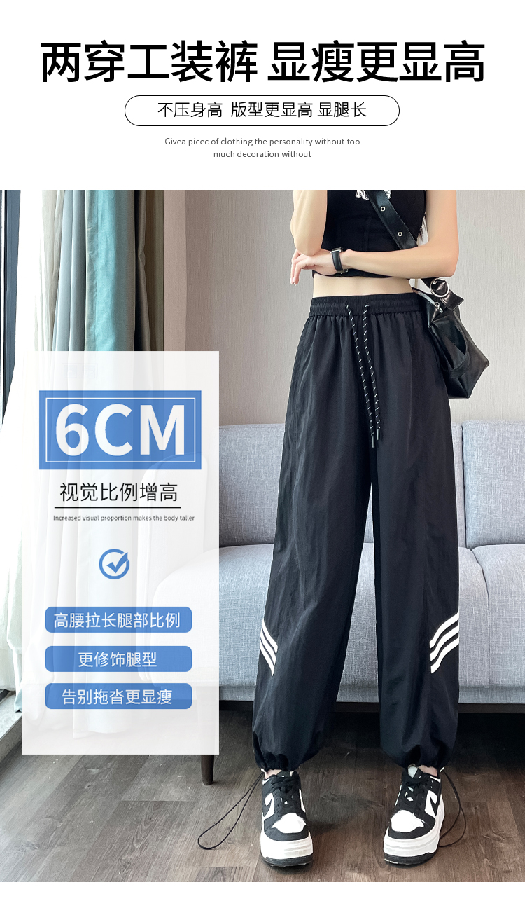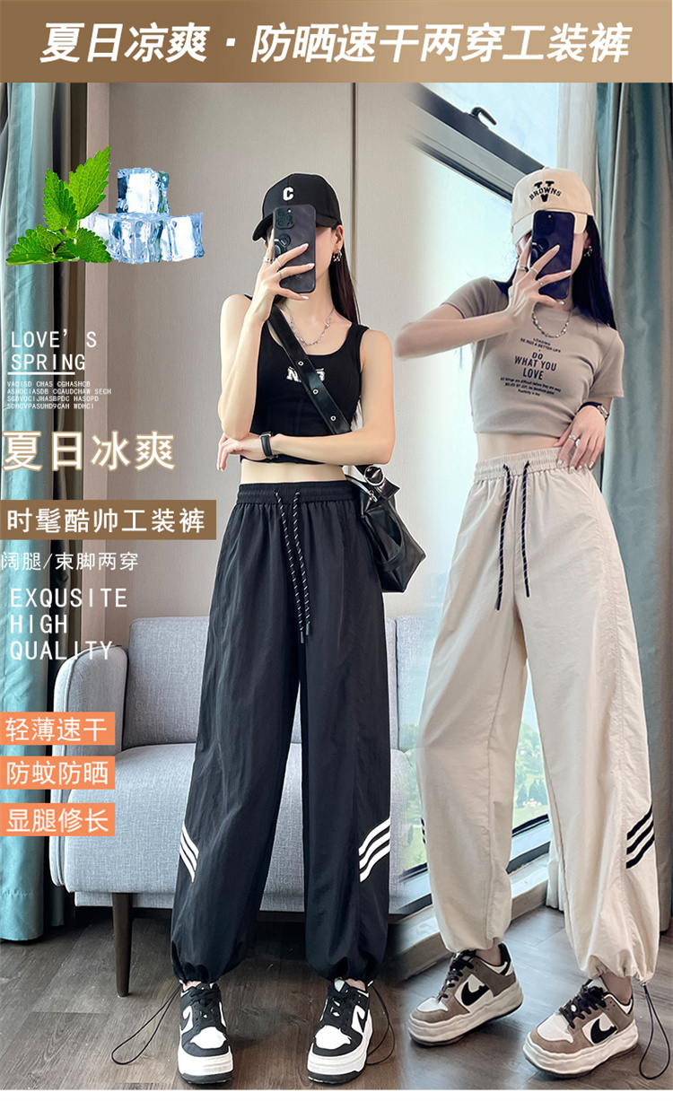 RY2110# 实拍2026夏季新款速干工装裤女薄款高腰速干裤两穿哈伦运动裤