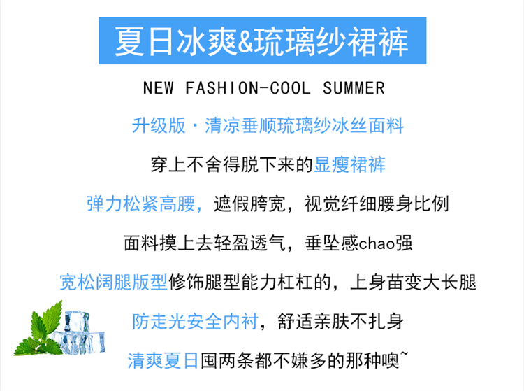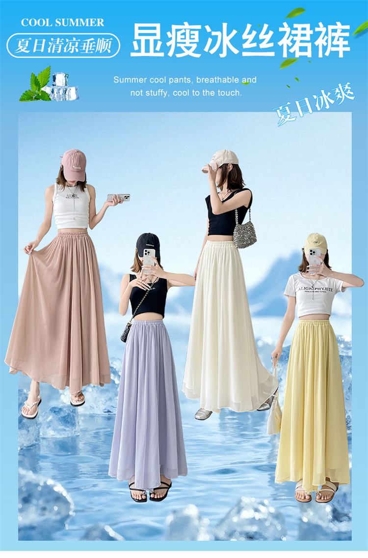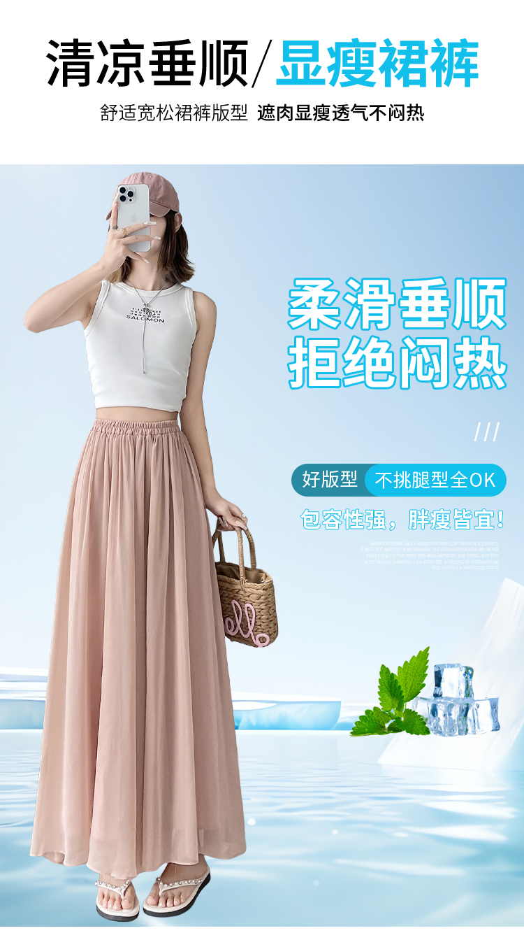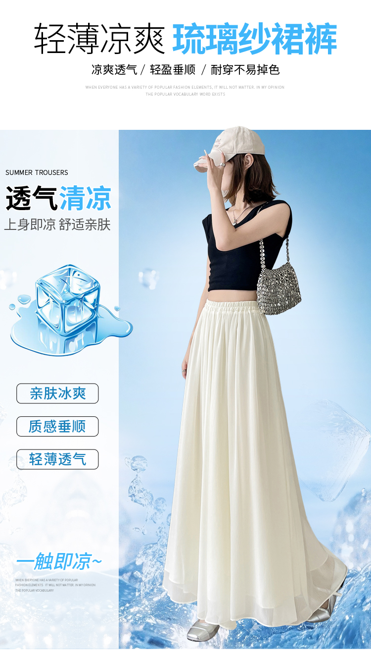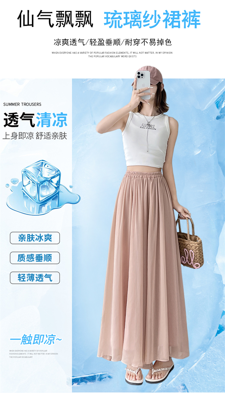 RY2111# 实拍2026夏季新款薄款琉璃纱冰丝裙裤女高腰仙气飘飘防晒裤裙