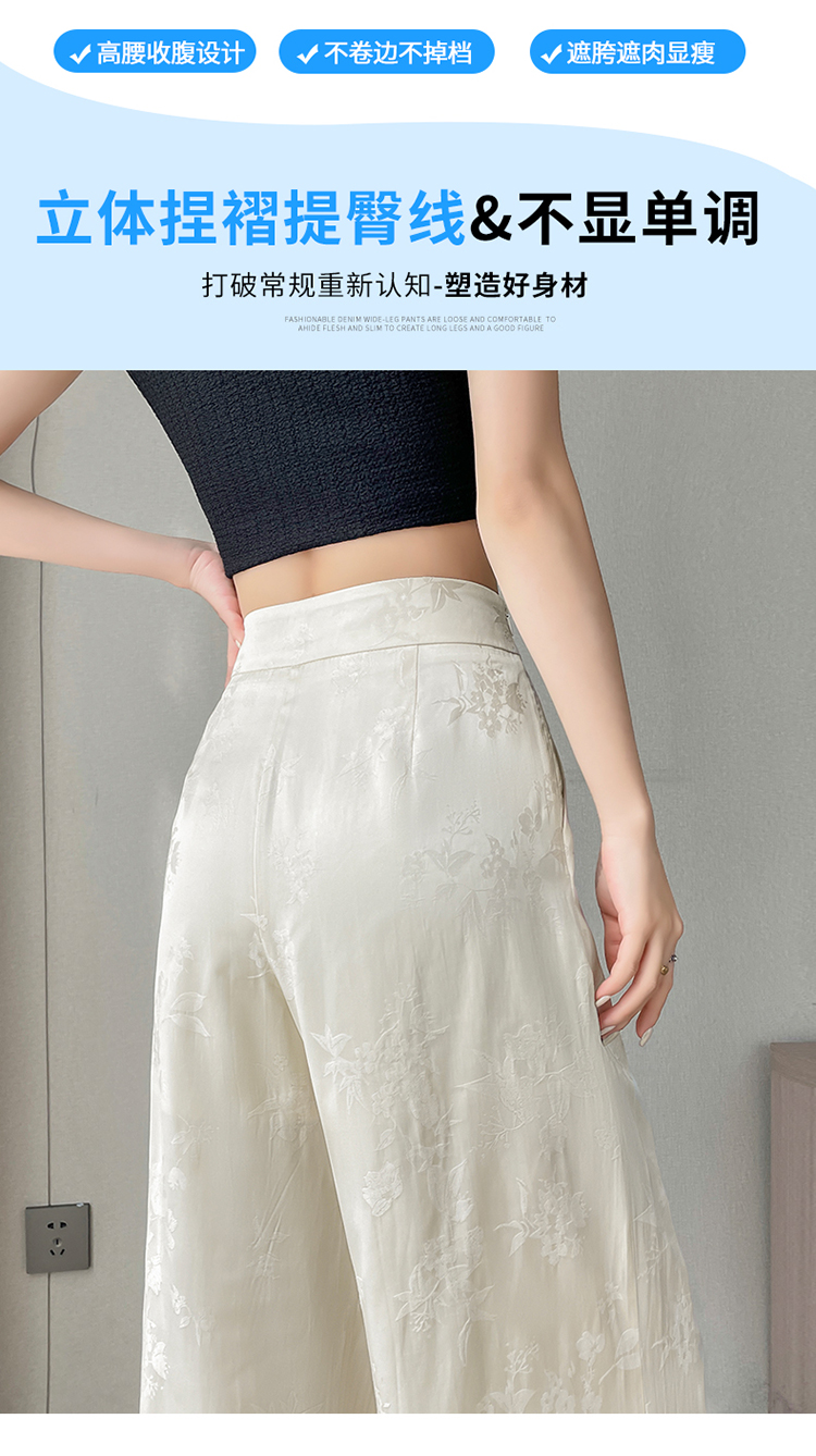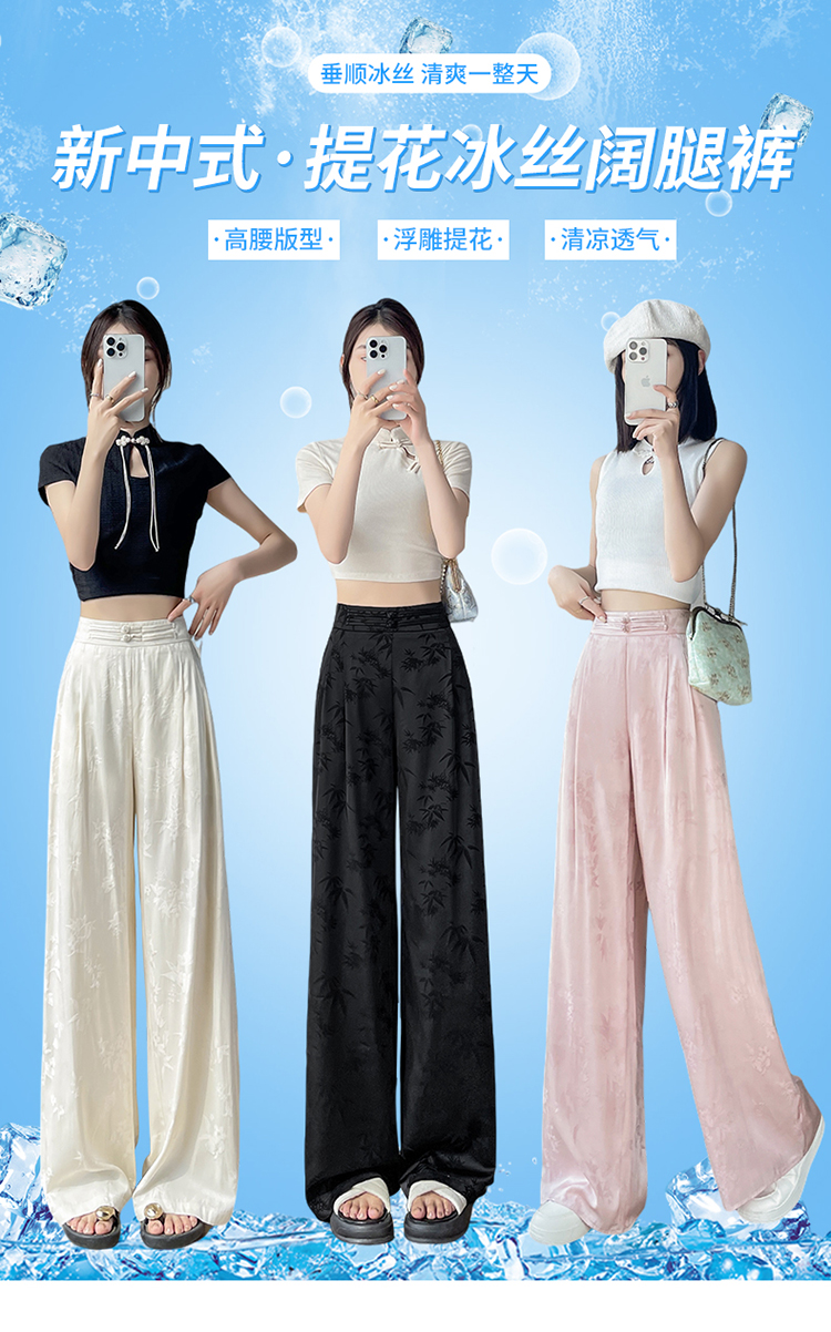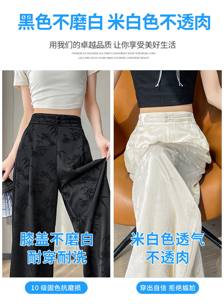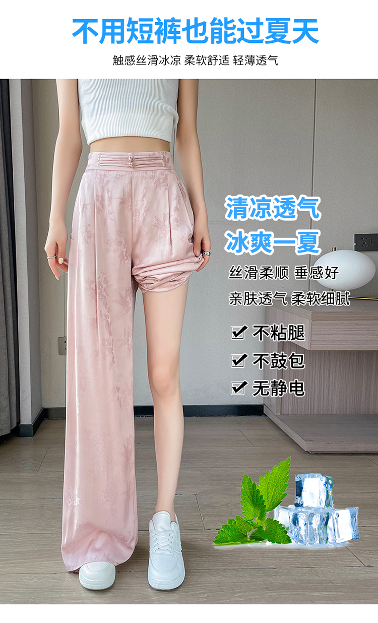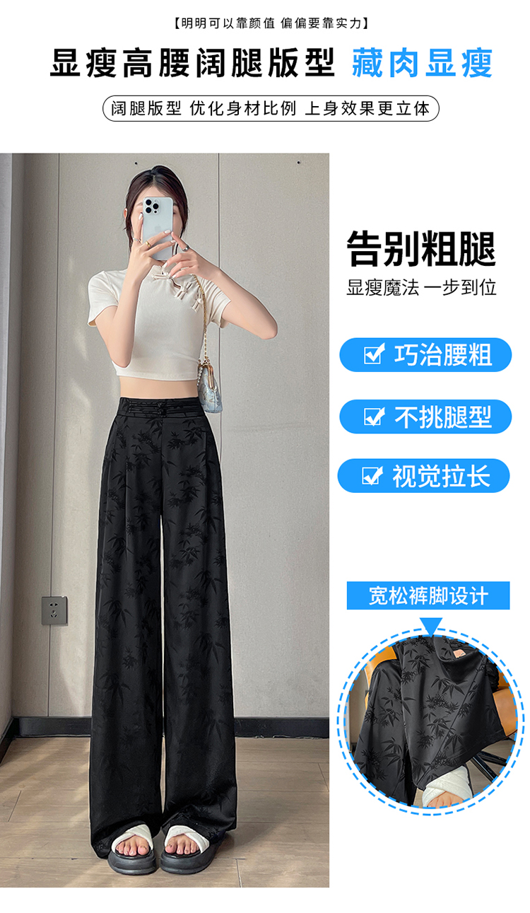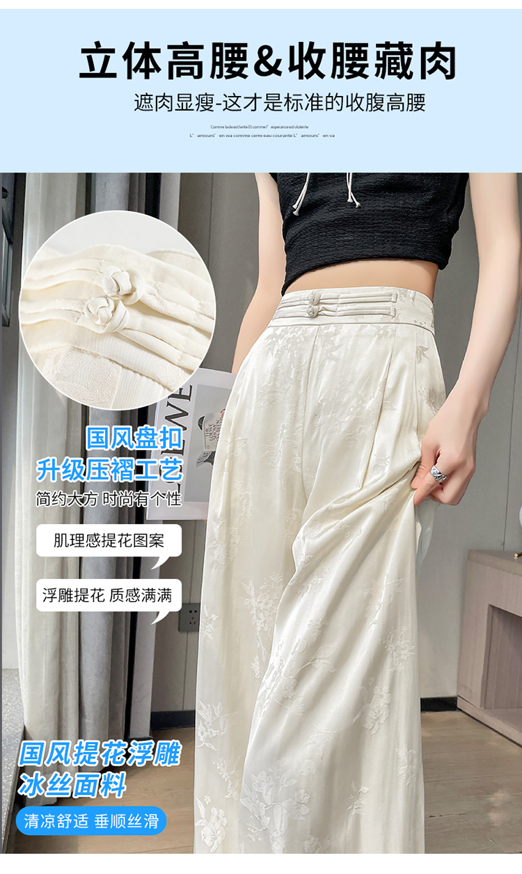 RY2112# 实拍2026夏季新款新中式缎面提花冰丝裤女国风直筒窄版阔腿裤