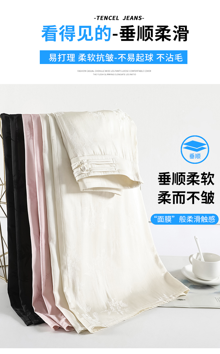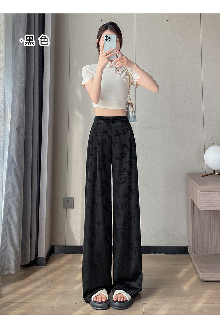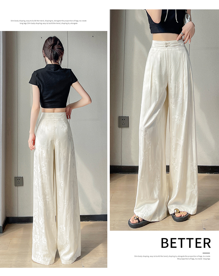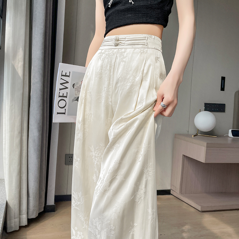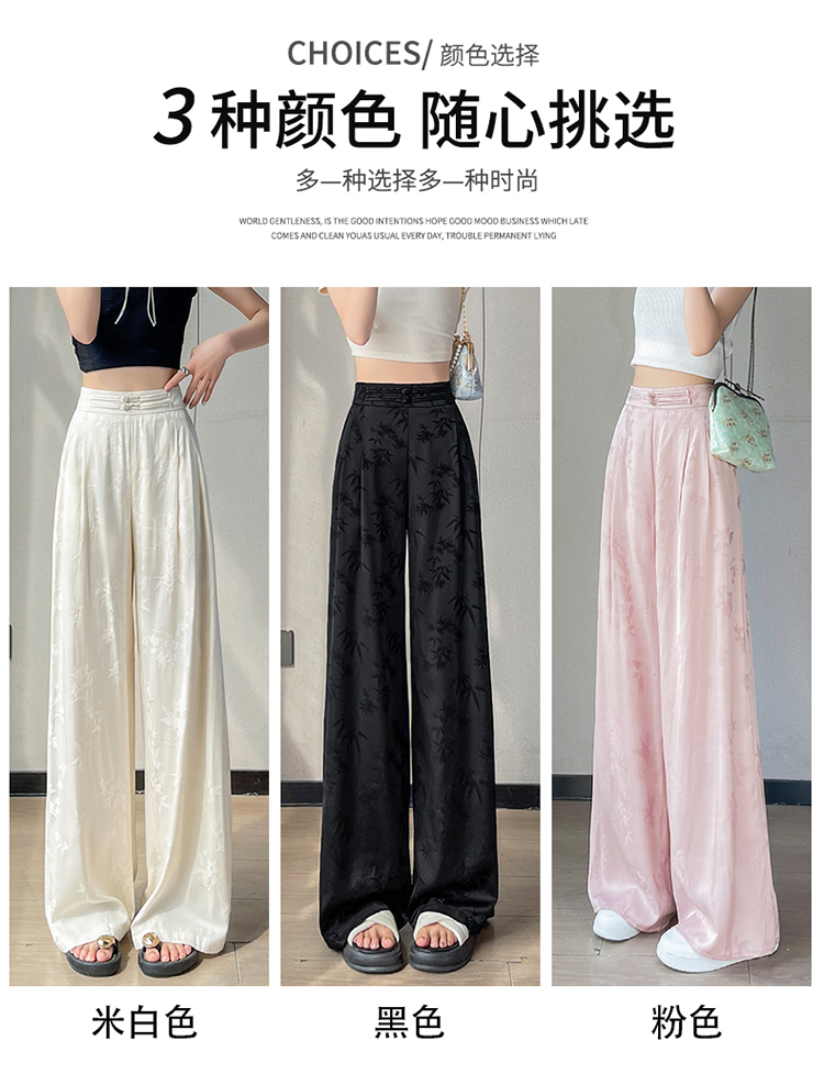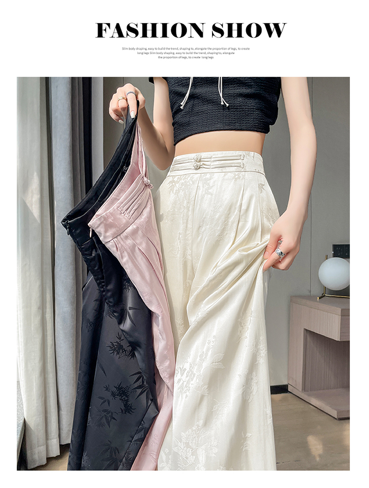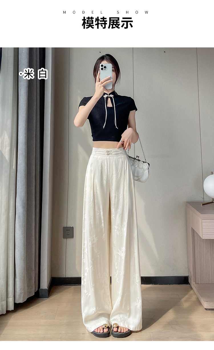 RY2112# 实拍2026夏季新款新中式缎面提花冰丝裤女国风直筒窄版阔腿裤