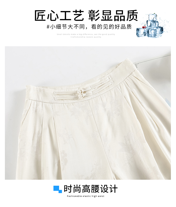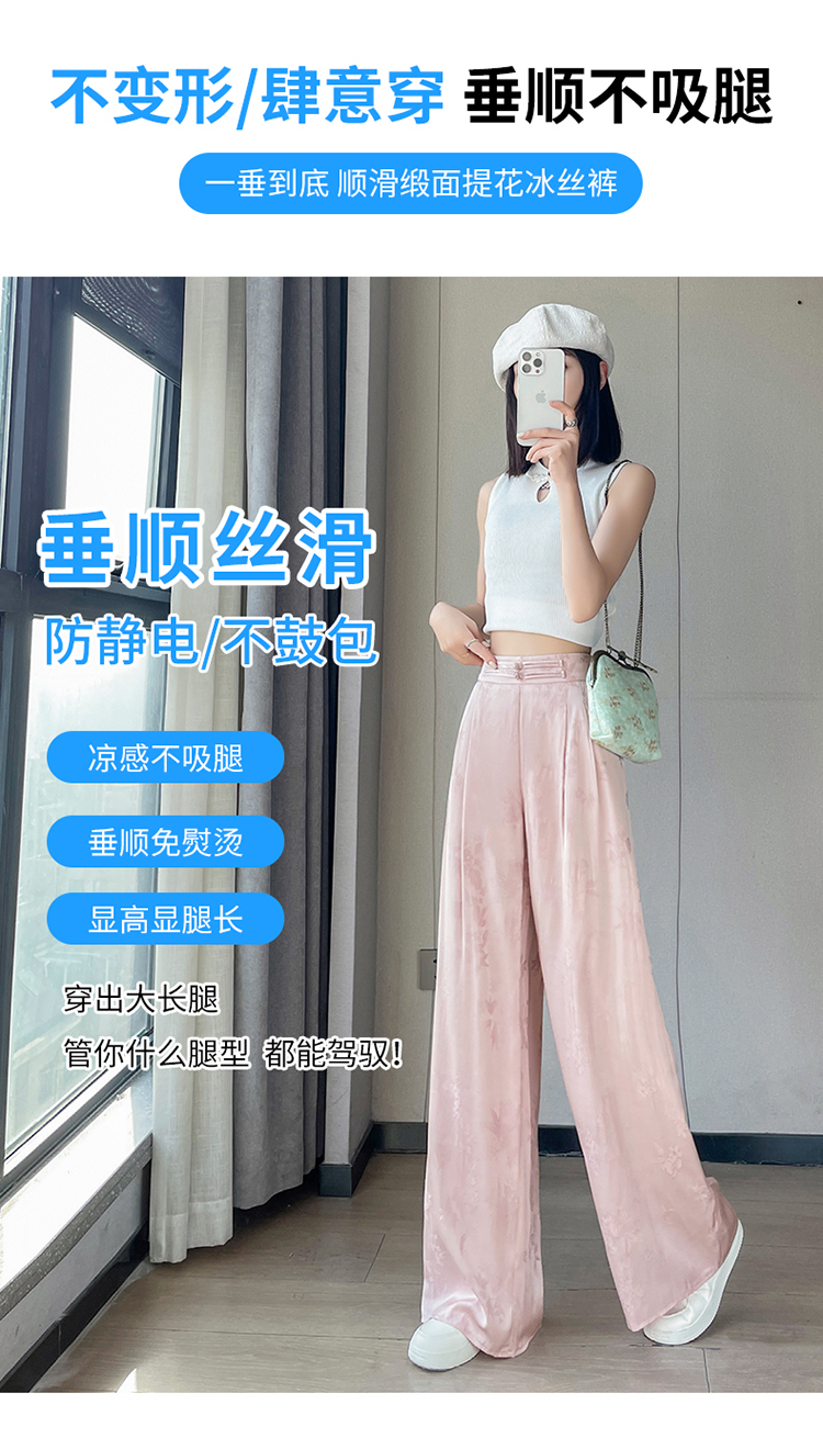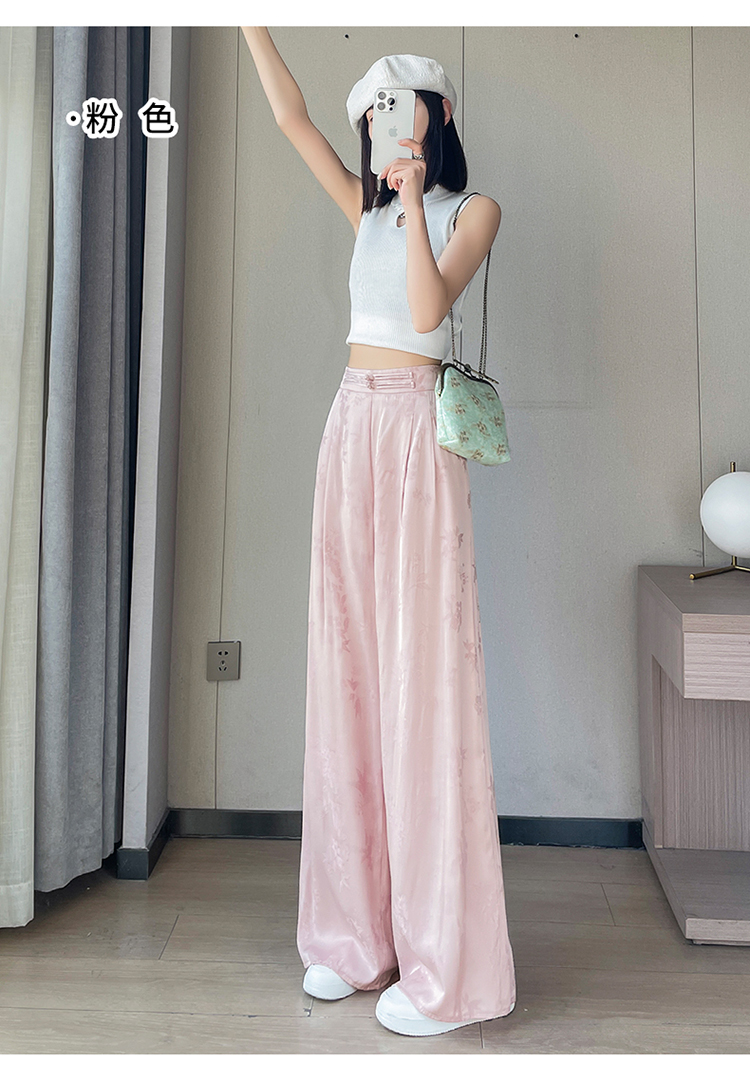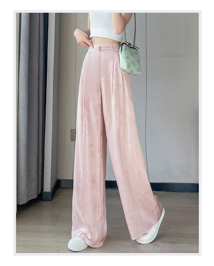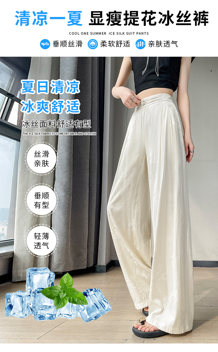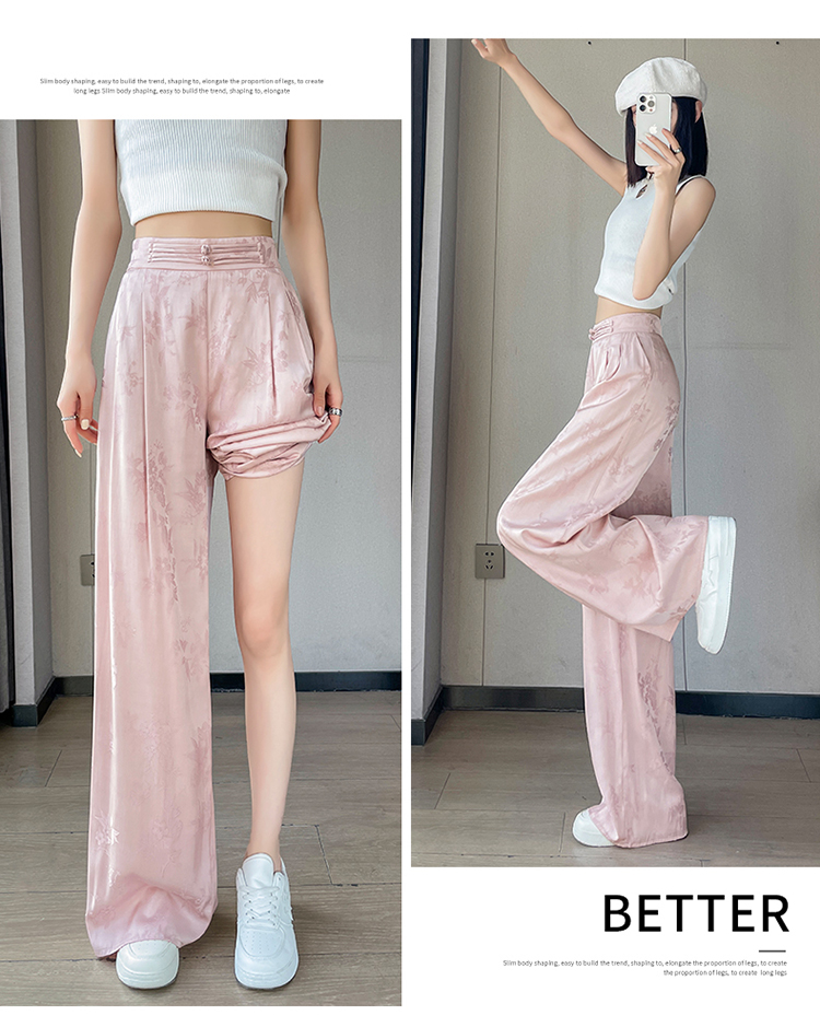 RY2112# 实拍2026夏季新款新中式缎面提花冰丝裤女国风直筒窄版阔腿裤
